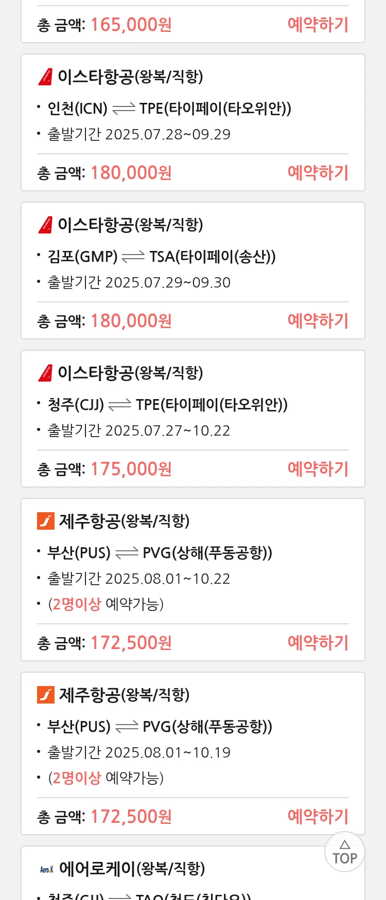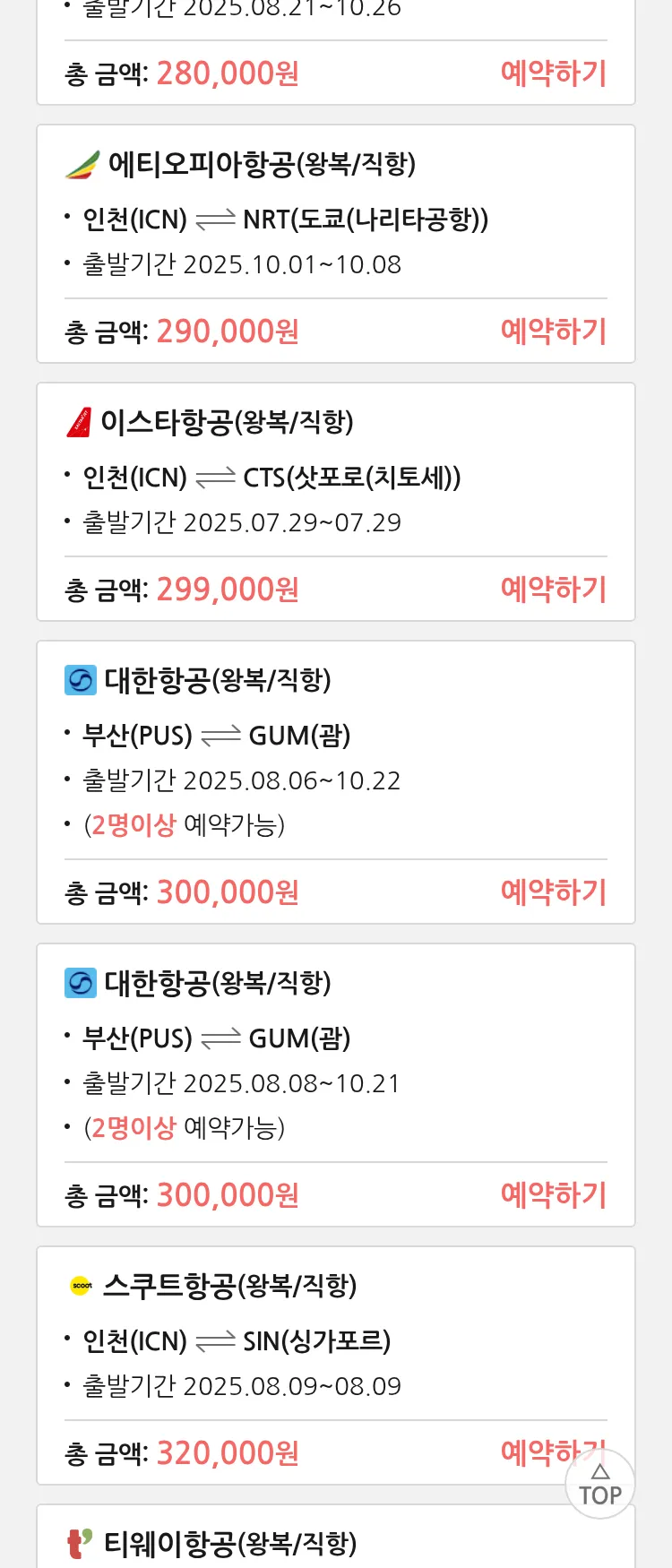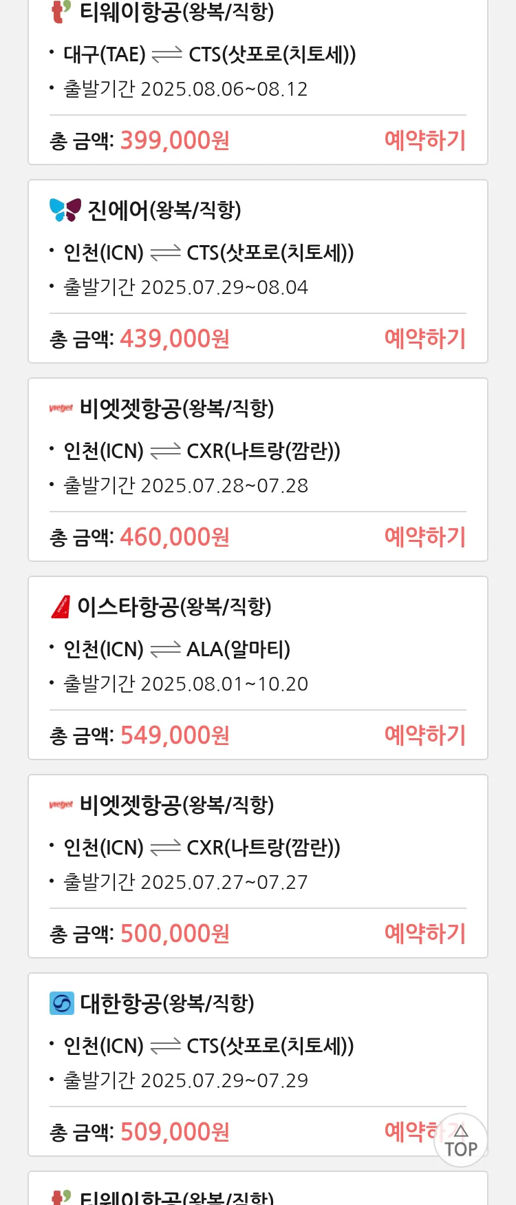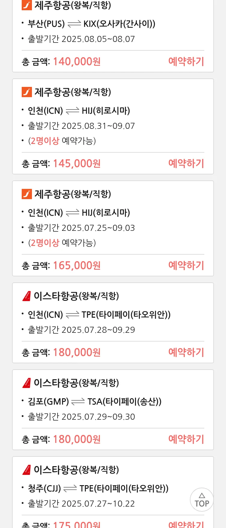 (7월 22일(화)) 땡처리 특가 항공권