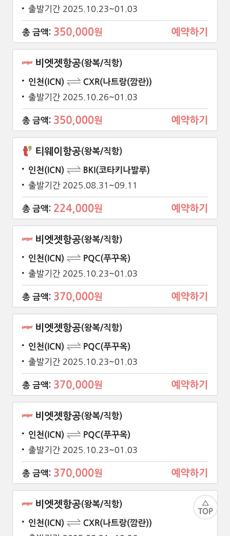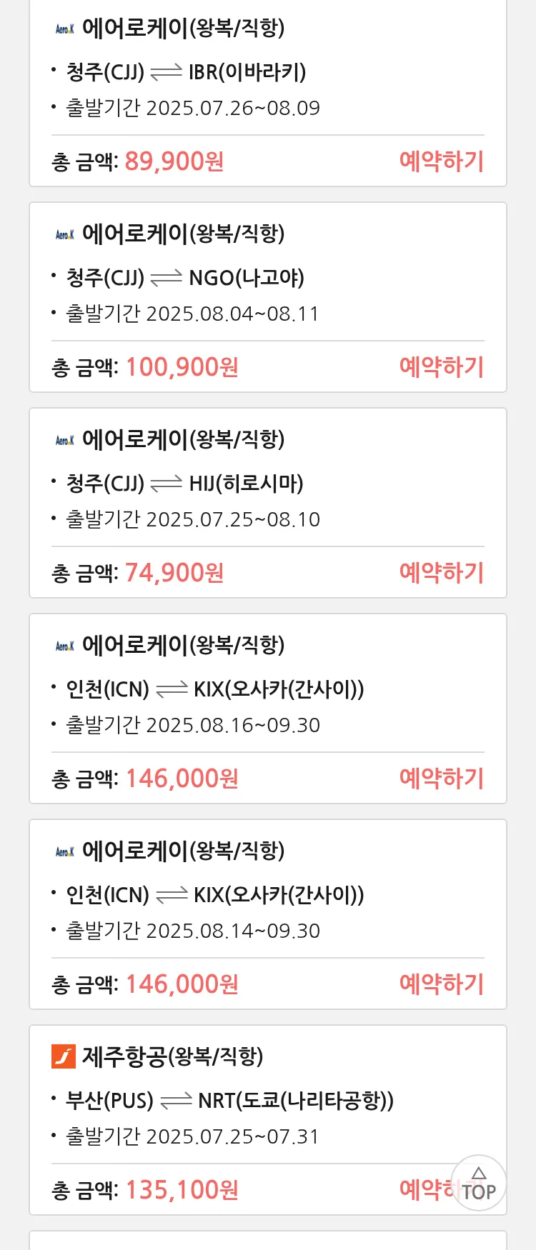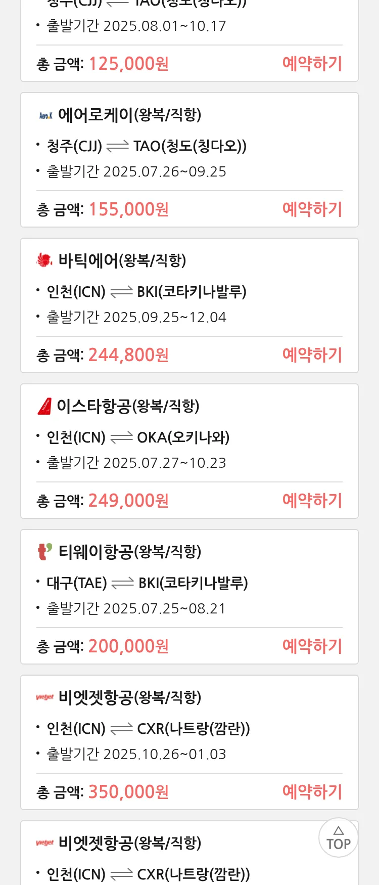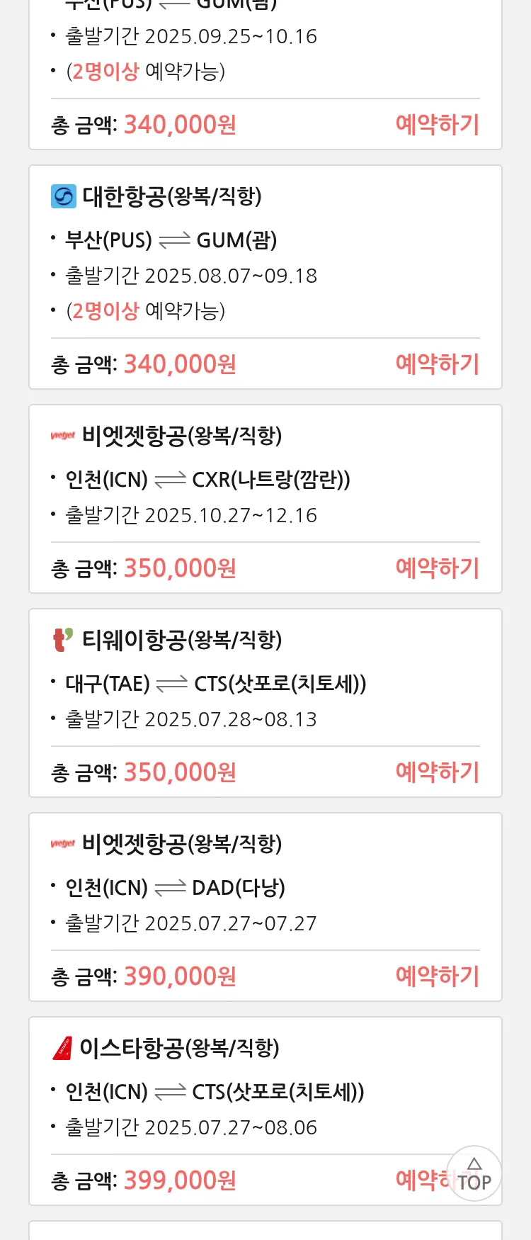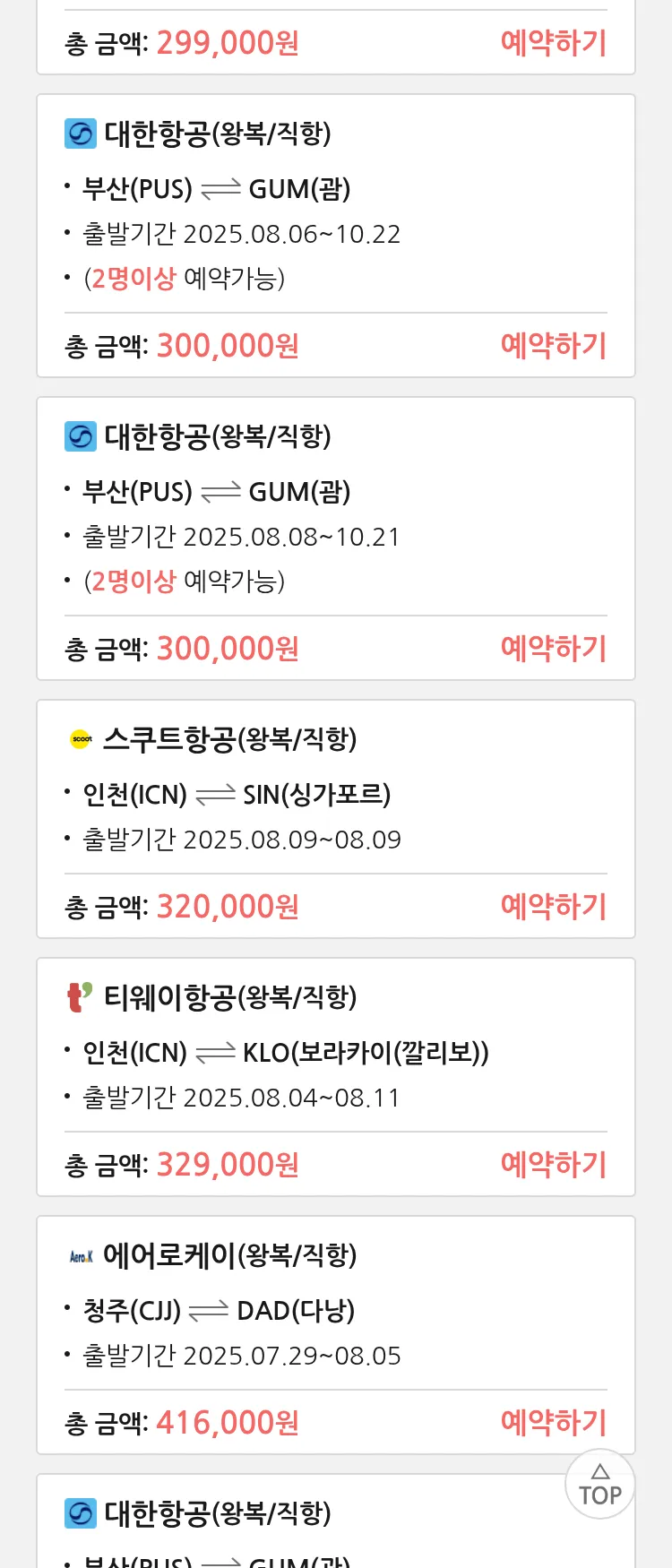 (7월 22일(화)) 땡처리 특가 항공권
