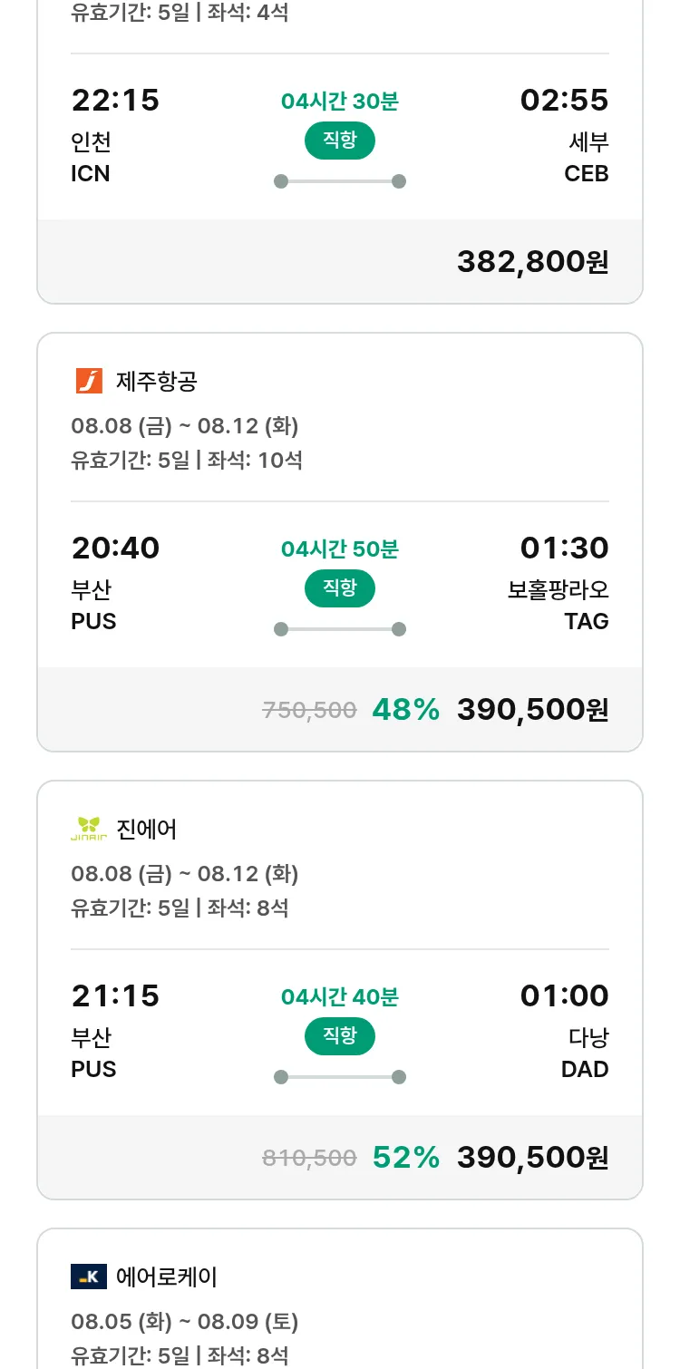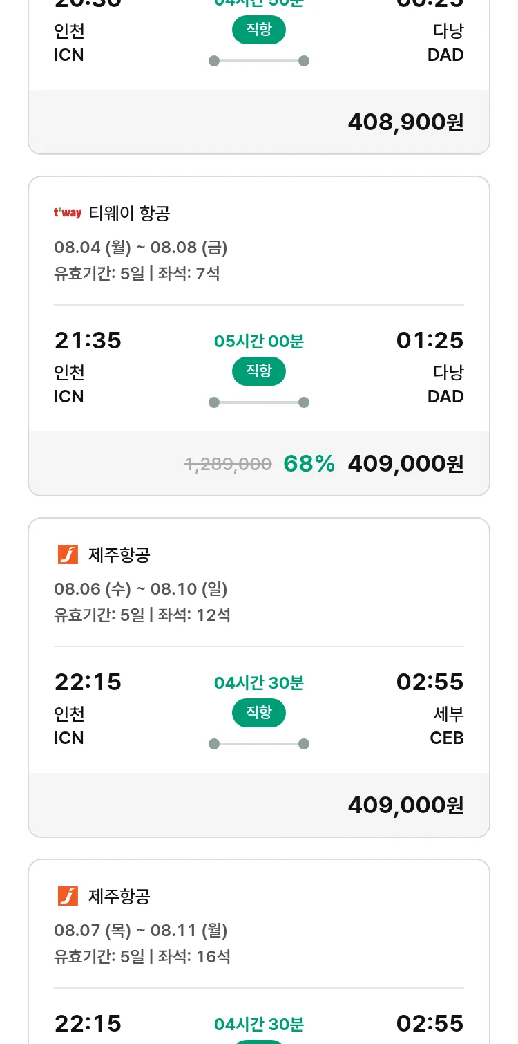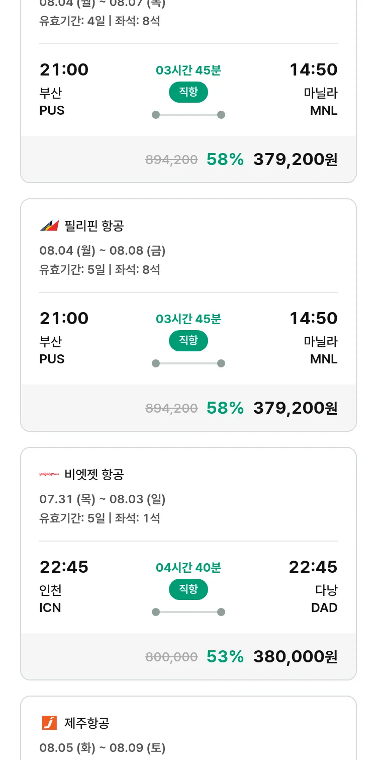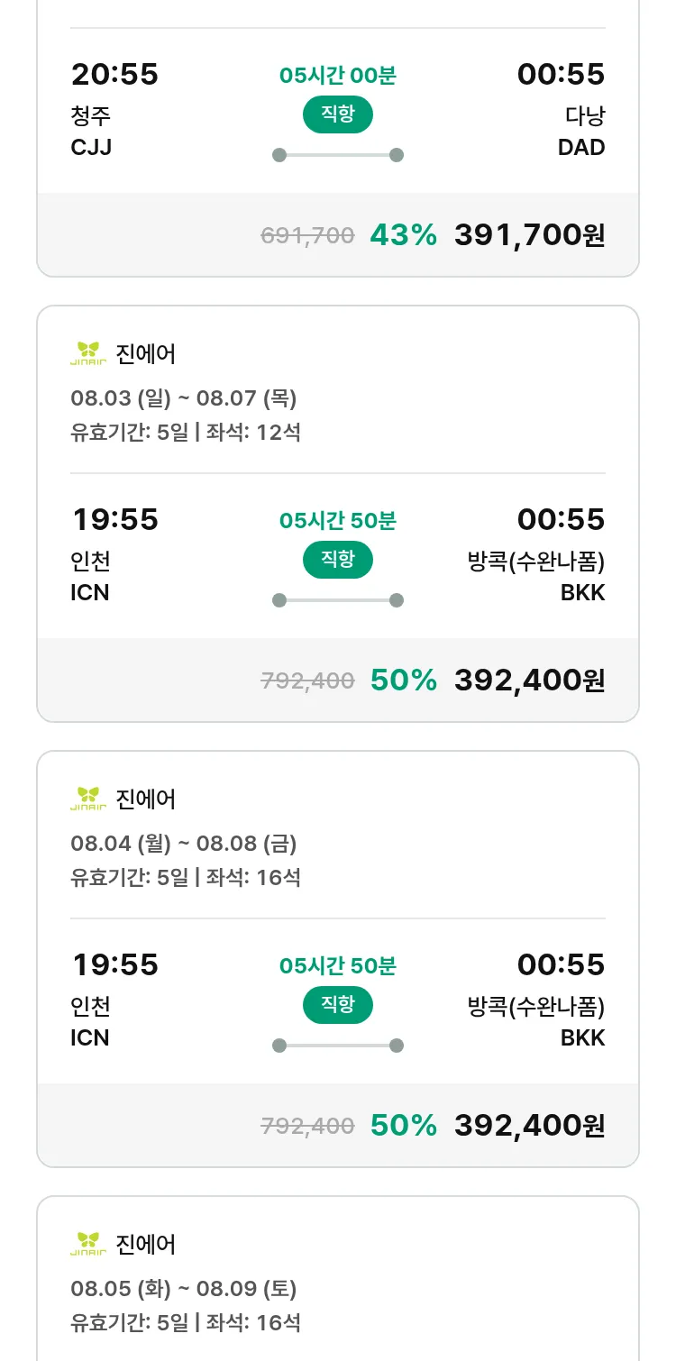(7월 24일(목)) 모두투어 동남아 특가 항공권