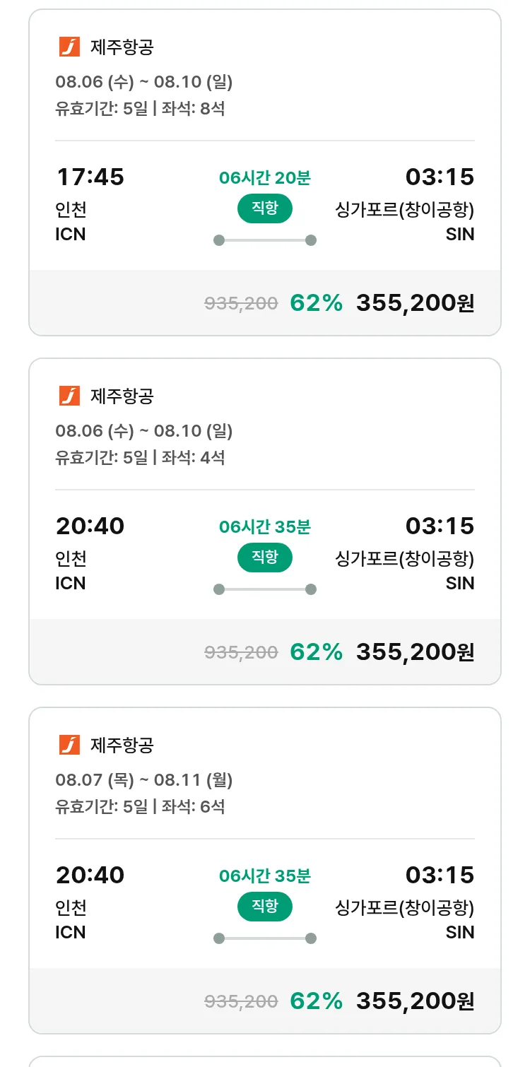 (7월 22일(화)) 모두투어 동남아 특가 항공권