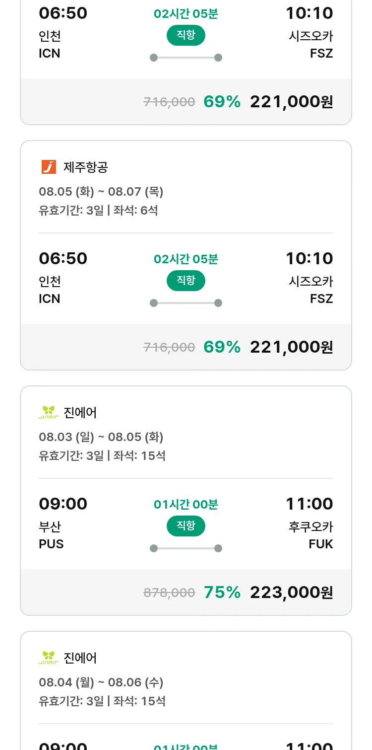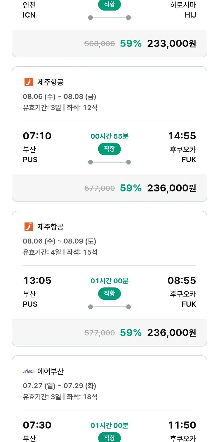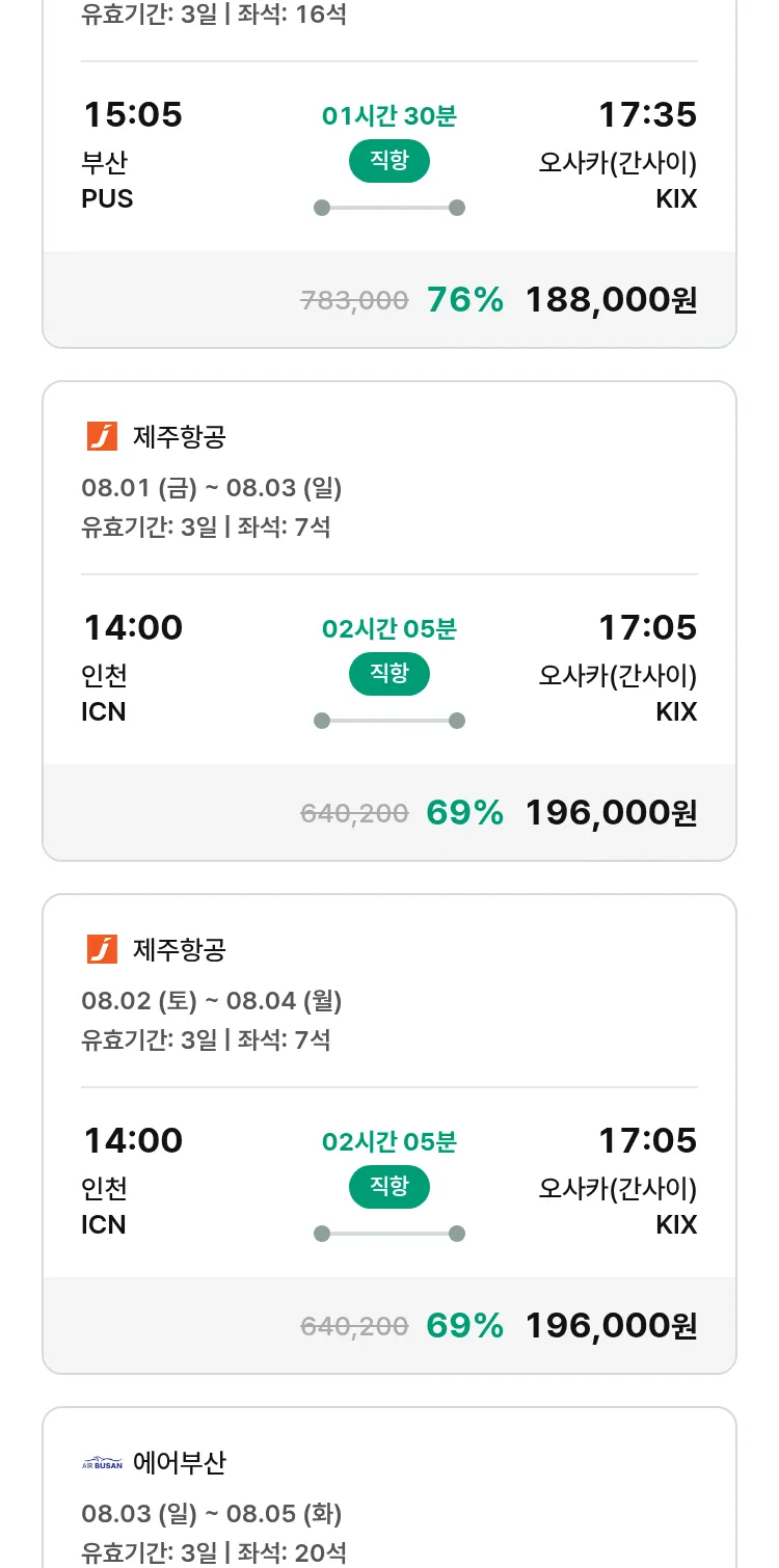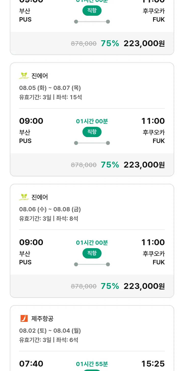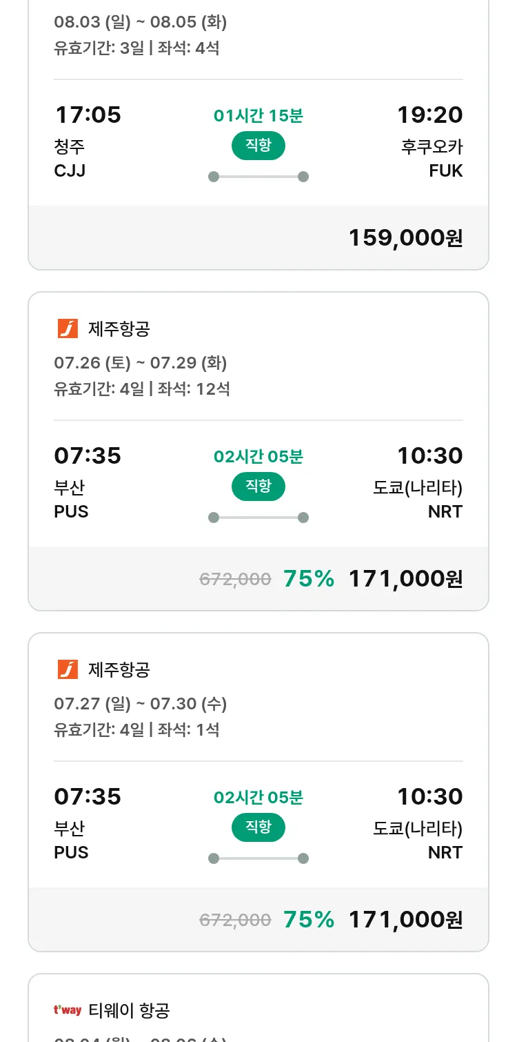 (7월 22일(화)) 땡처리 특가 항공권