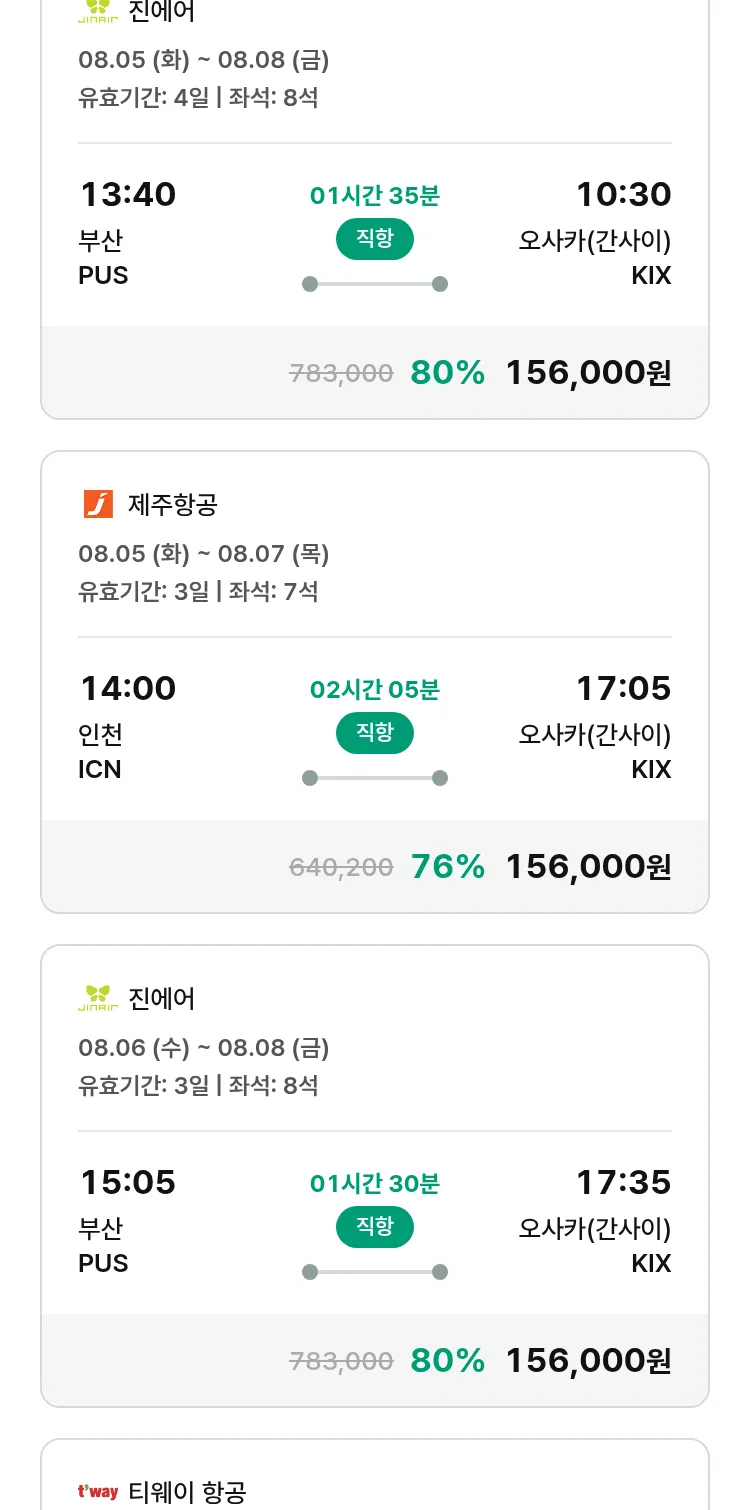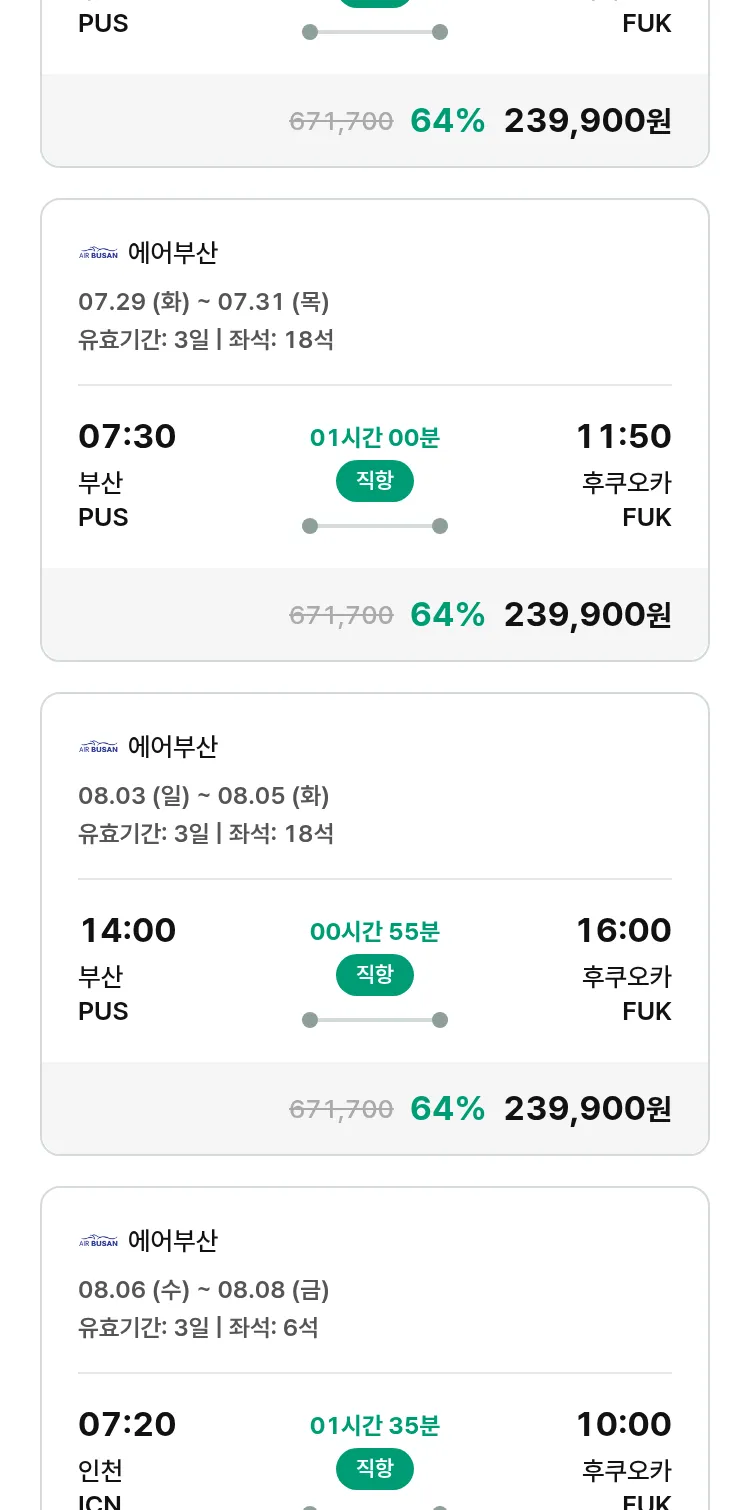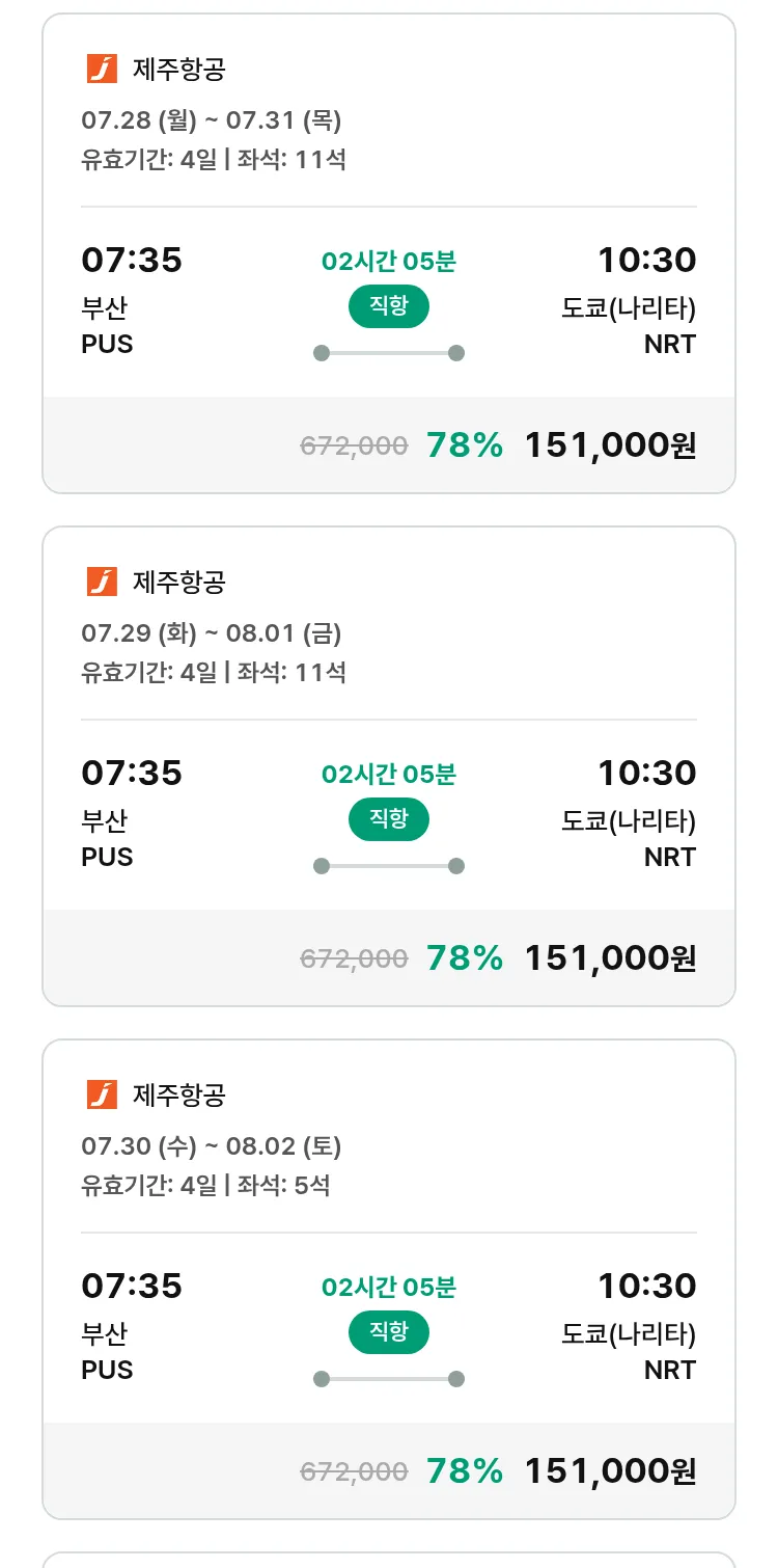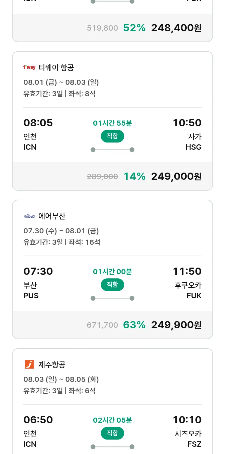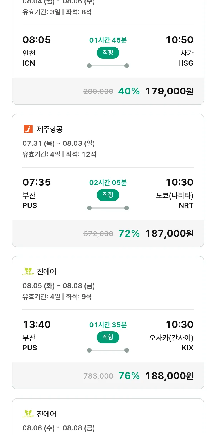 (7월 22일(화)) 땡처리 특가 항공권