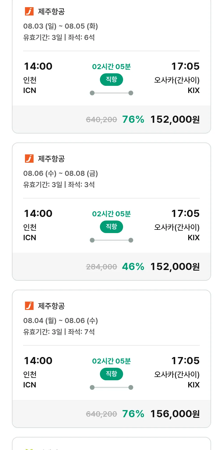(7월 23일(수)) 땡처리 특가 항공권