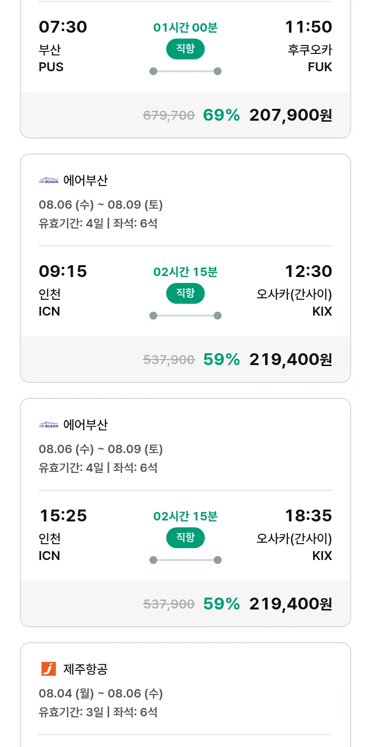 (7월 24일(목)) 모두투어 일본 특가 항공권