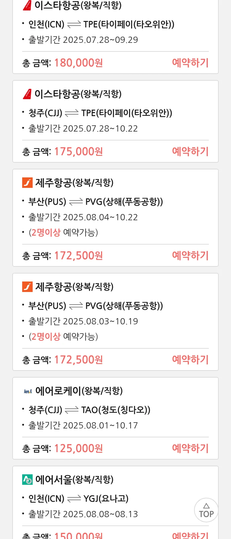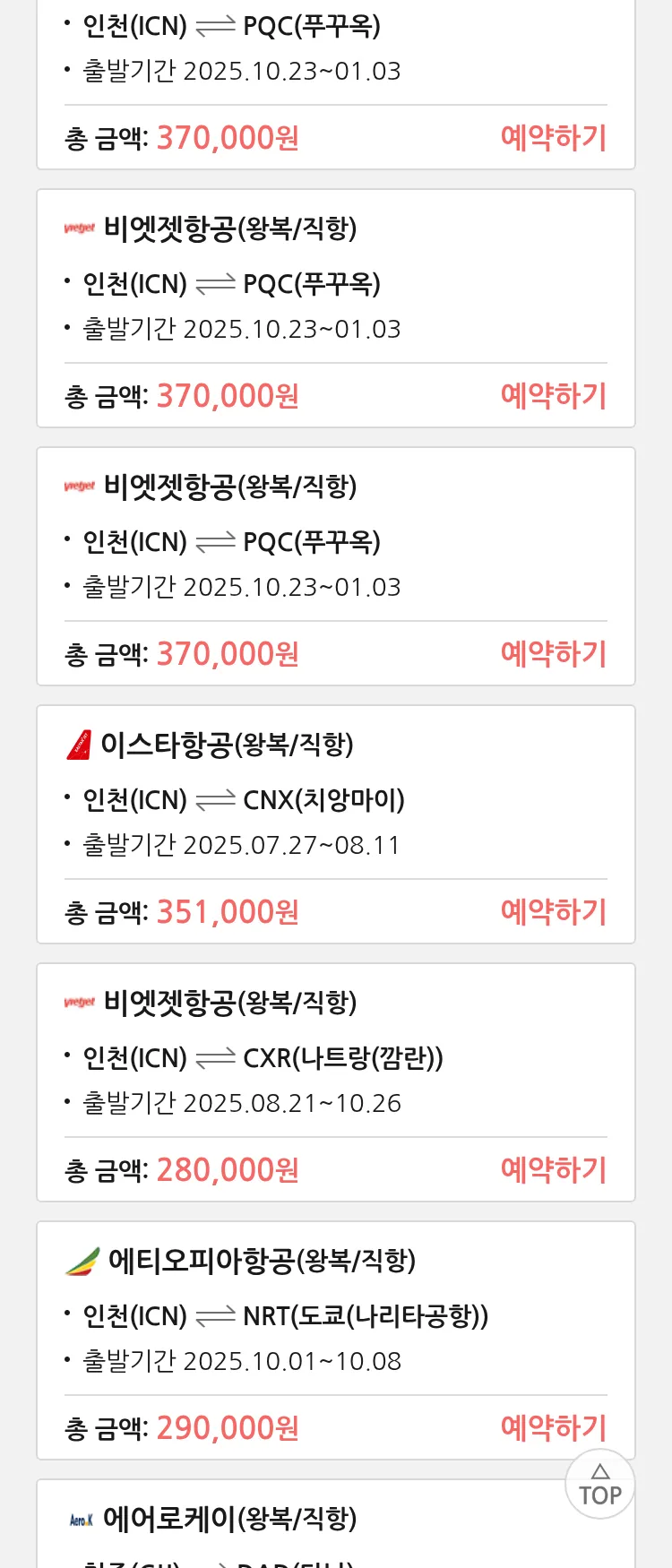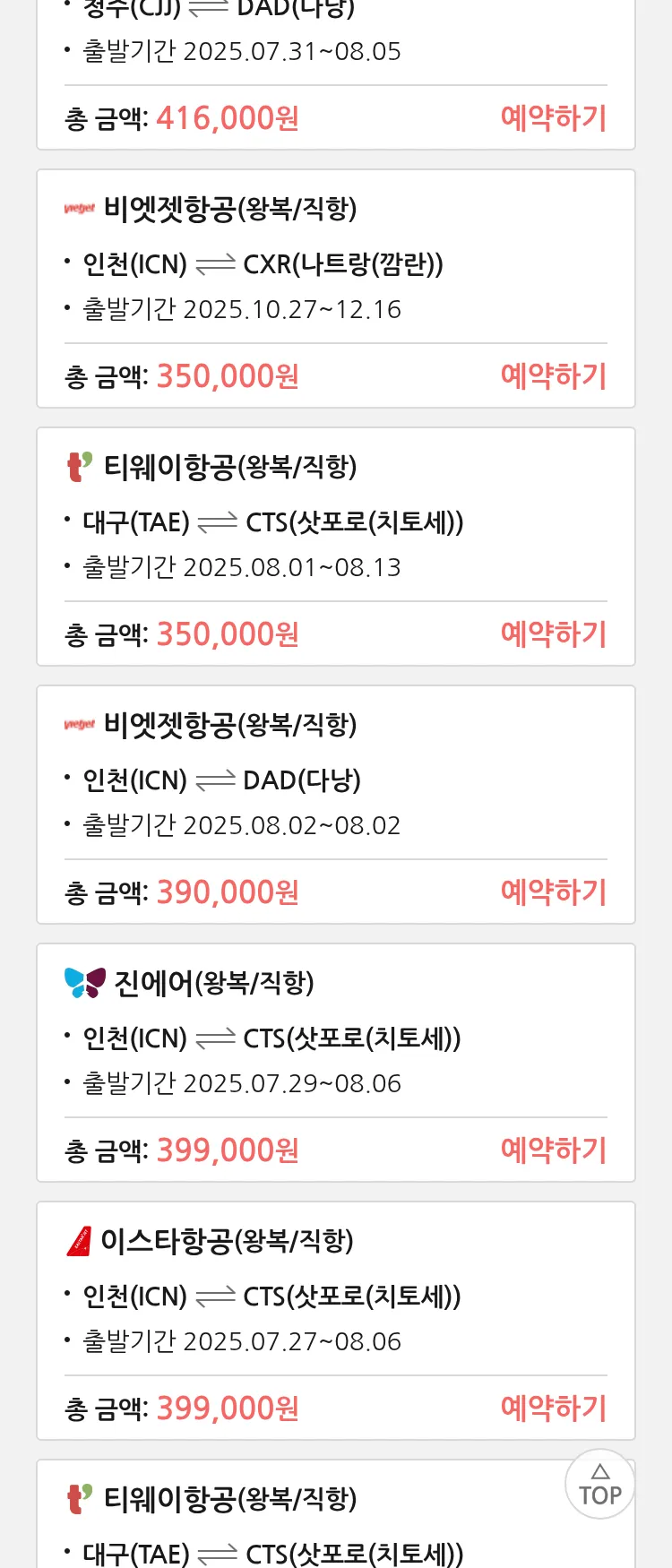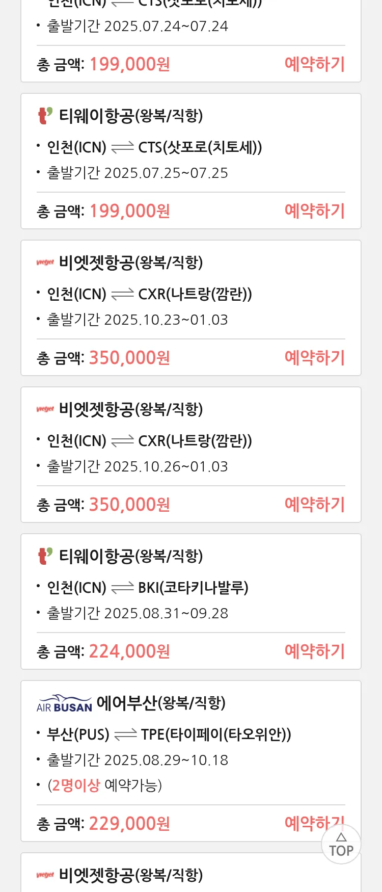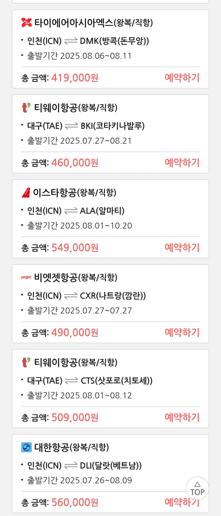 (7월 24일(목)) 모두투어 동남아 특가 항공권