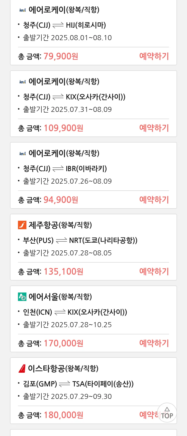 (7월 24일(목)) 모두투어 일본 특가 항공권