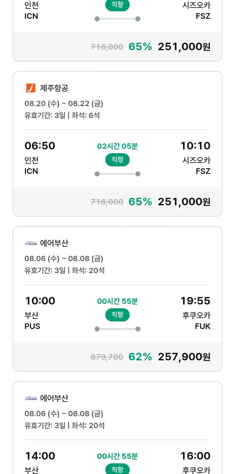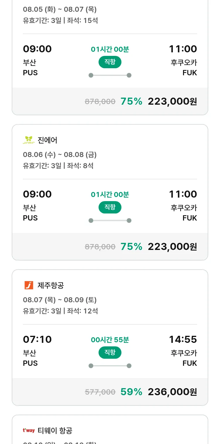 (7월 22일(화)) 모두투어 일본 특가 항공권