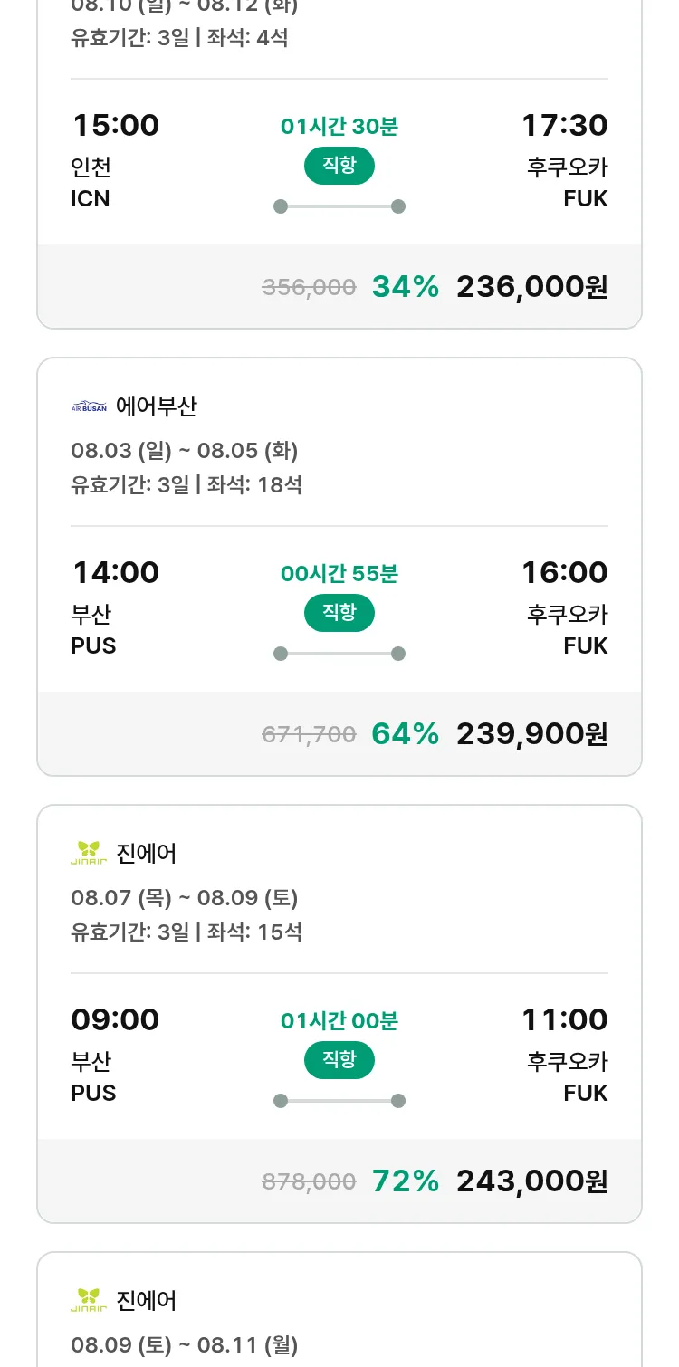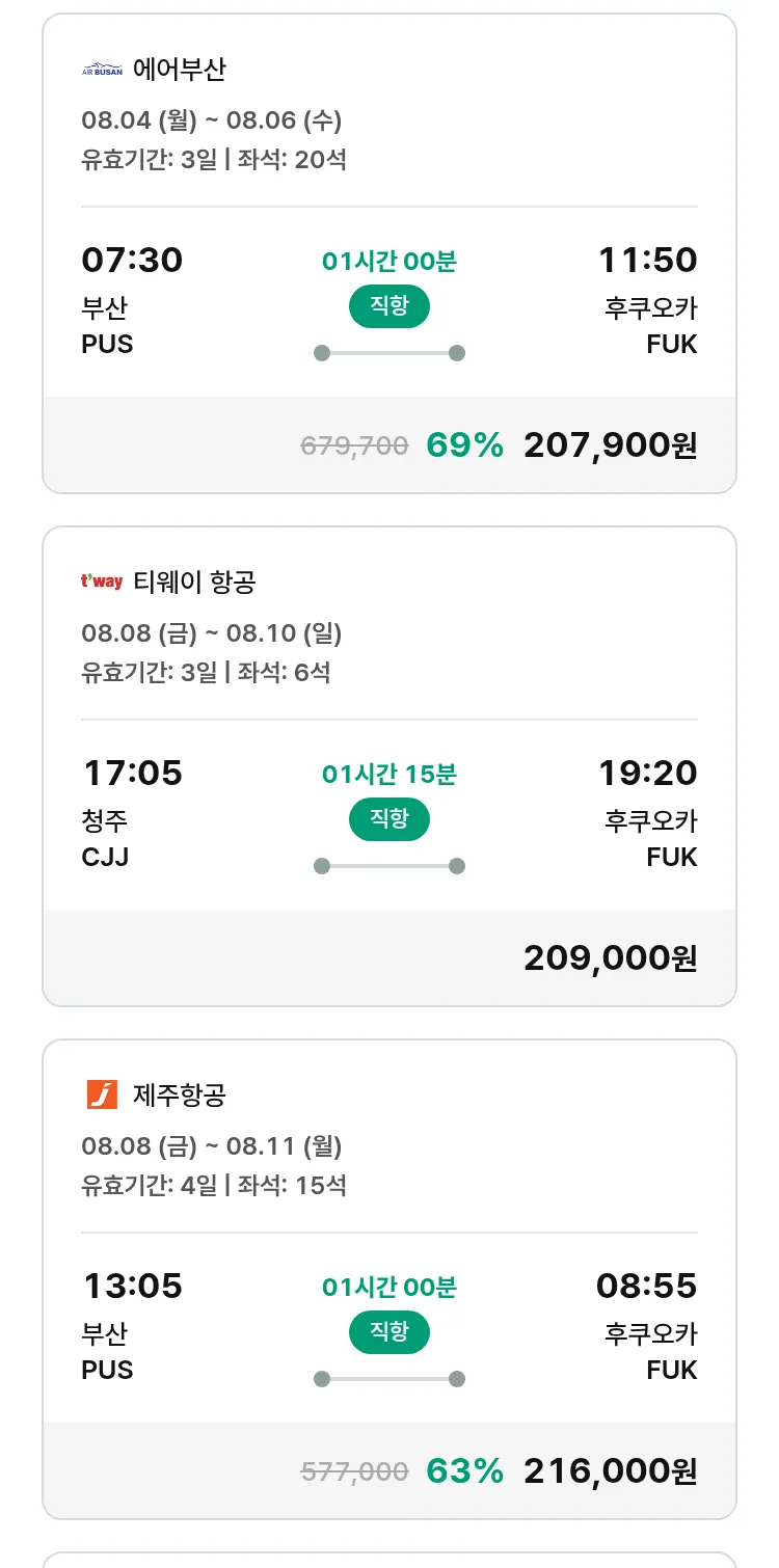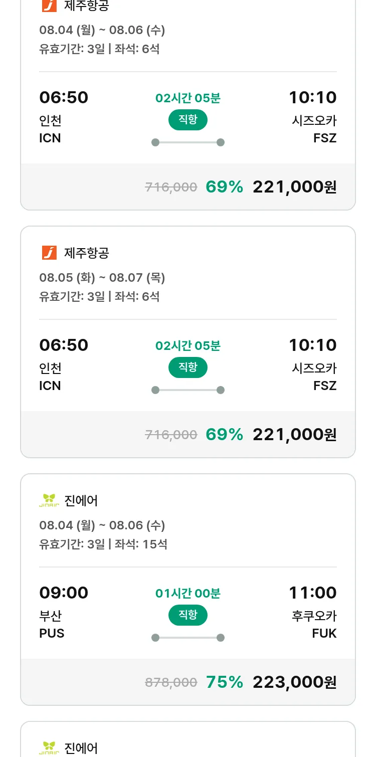 (7월 24일(목)) 모두투어 일본 특가 항공권