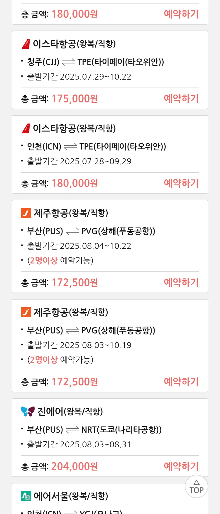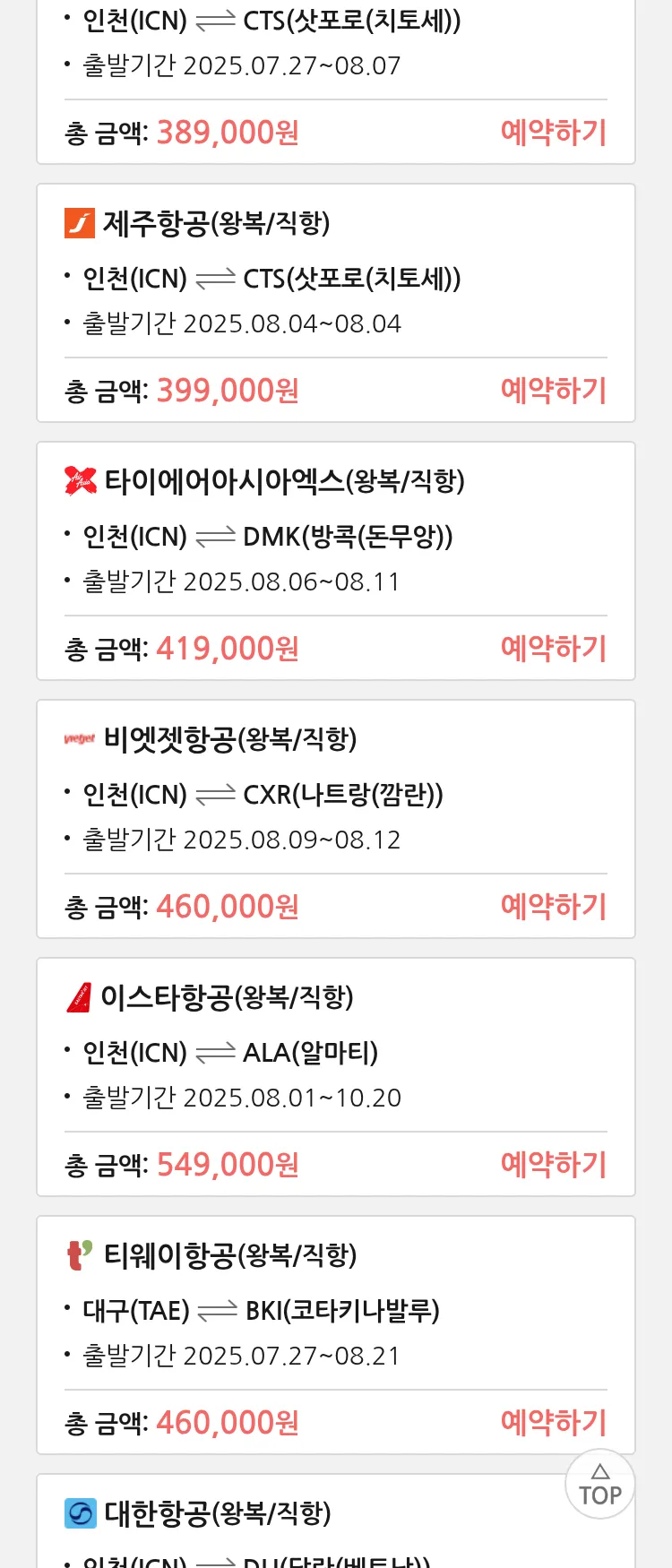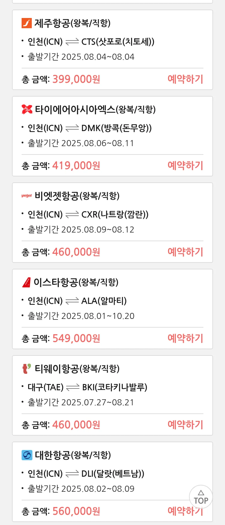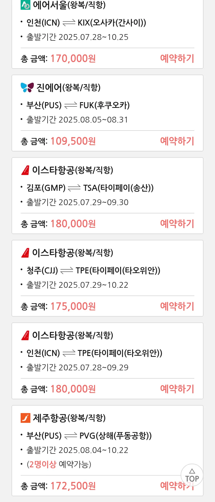 (7월 25일(금)) 땡처리 특가 항공권