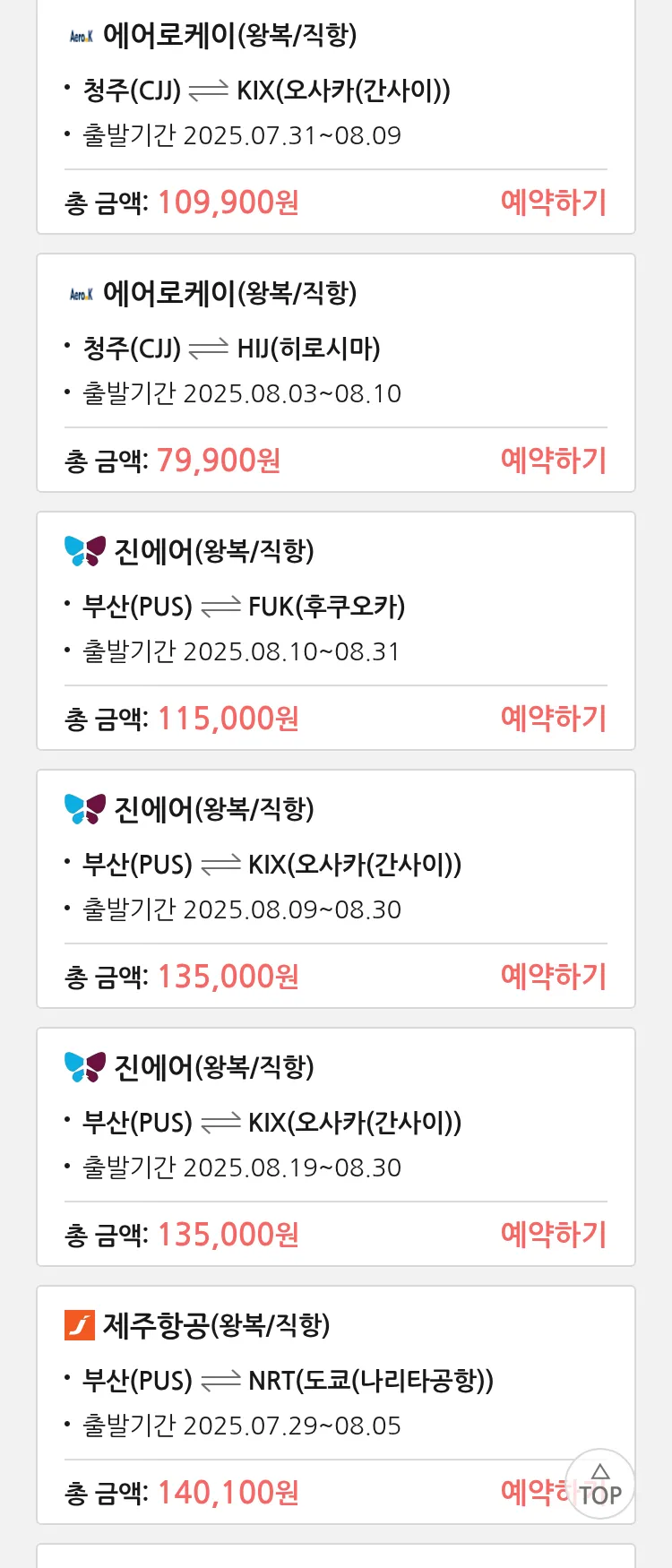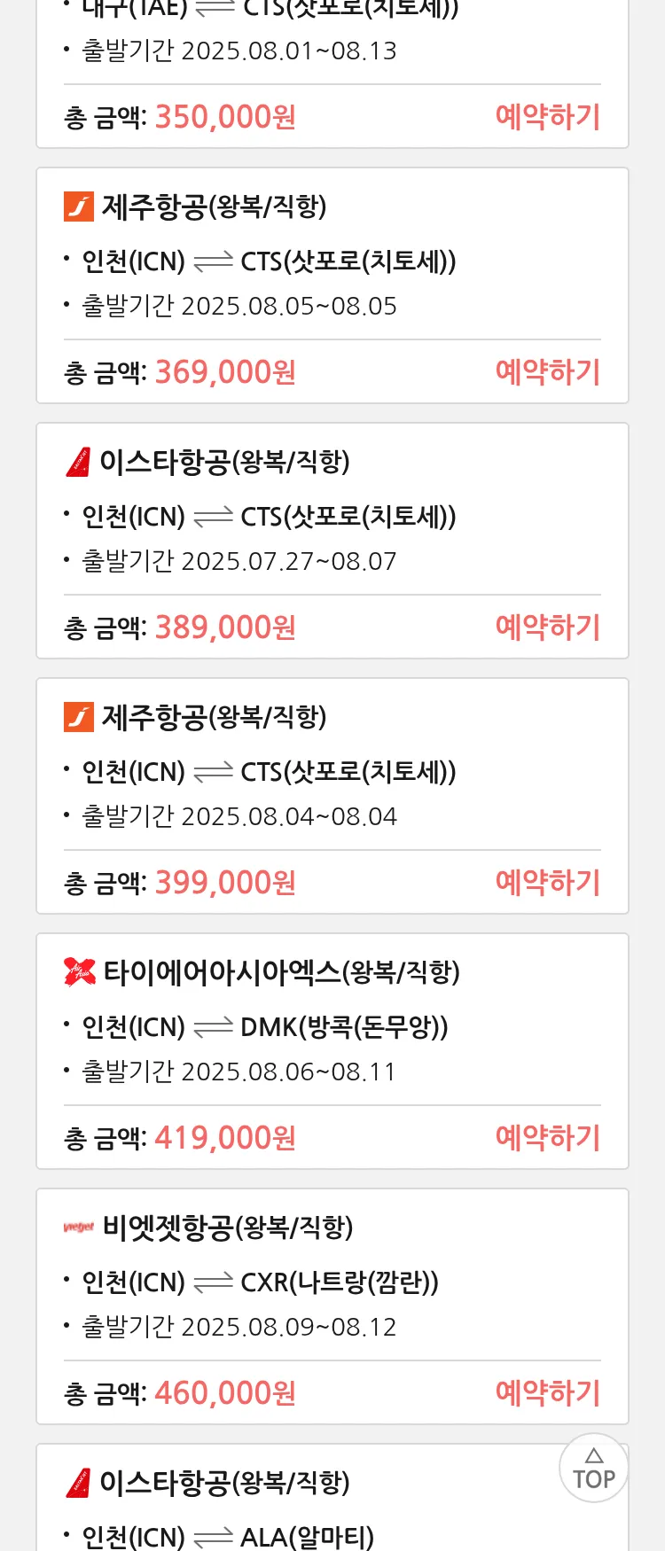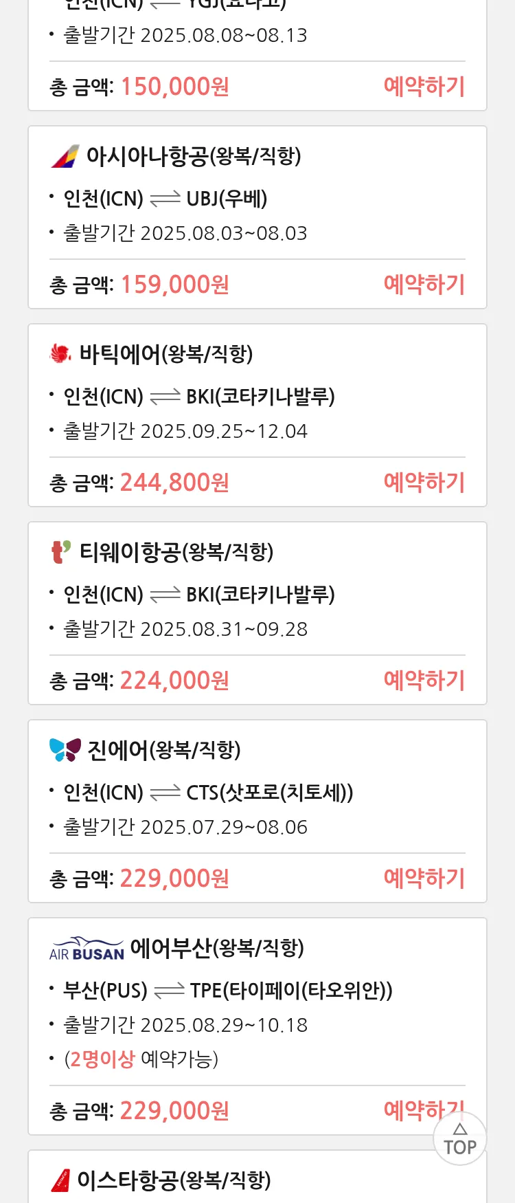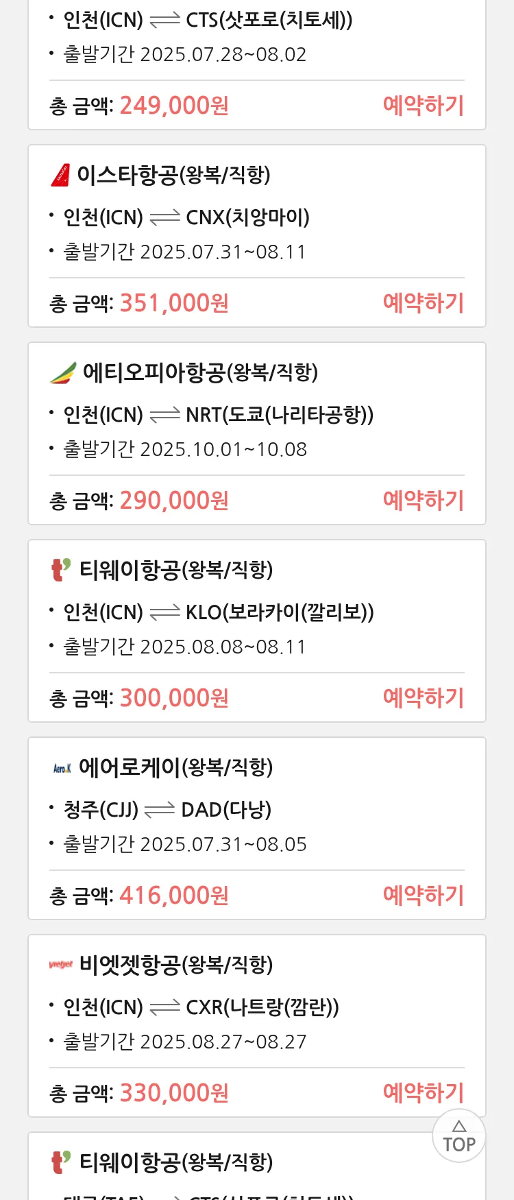 (7월 25일(금)) 땡처리 특가 항공권