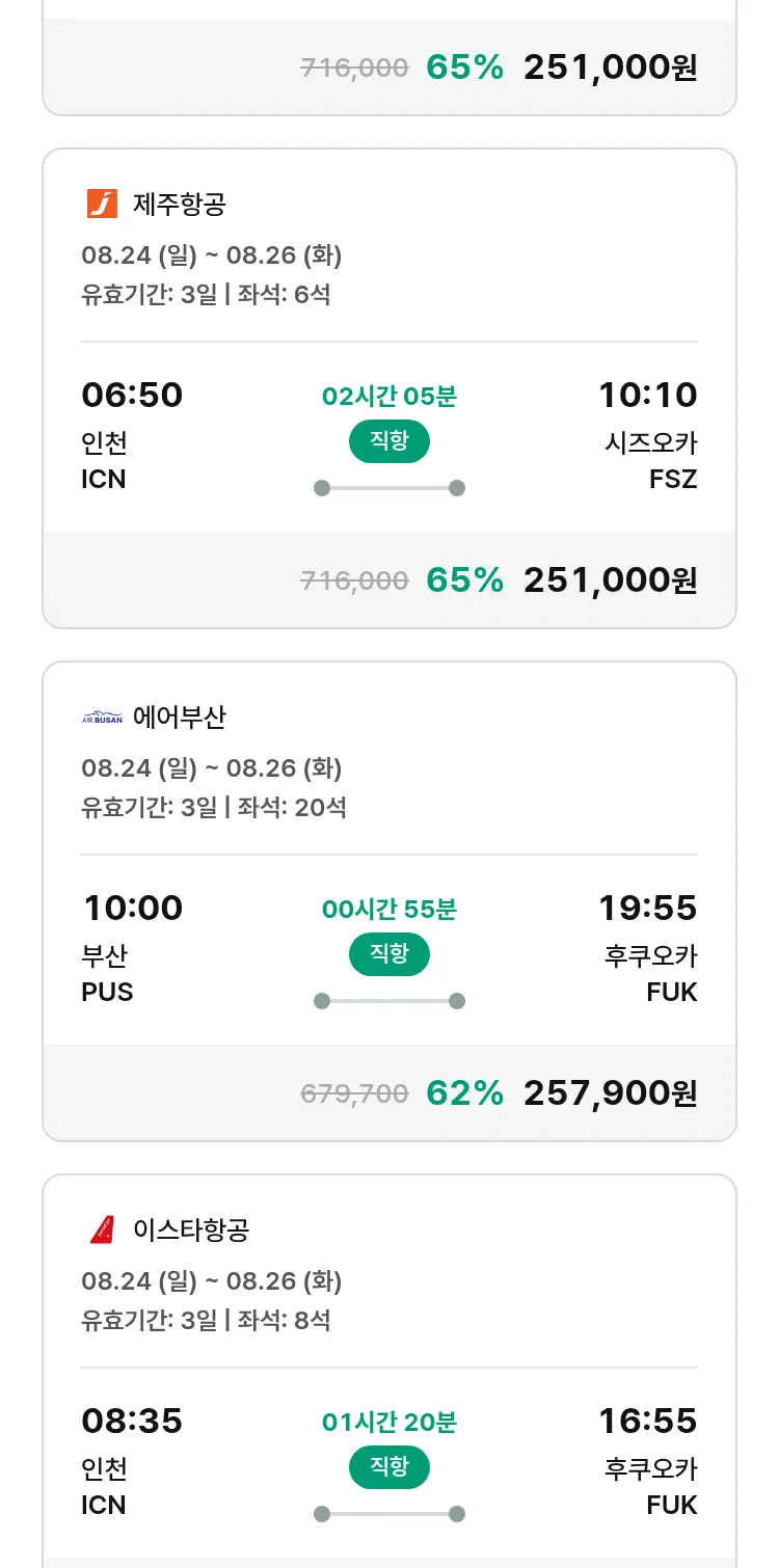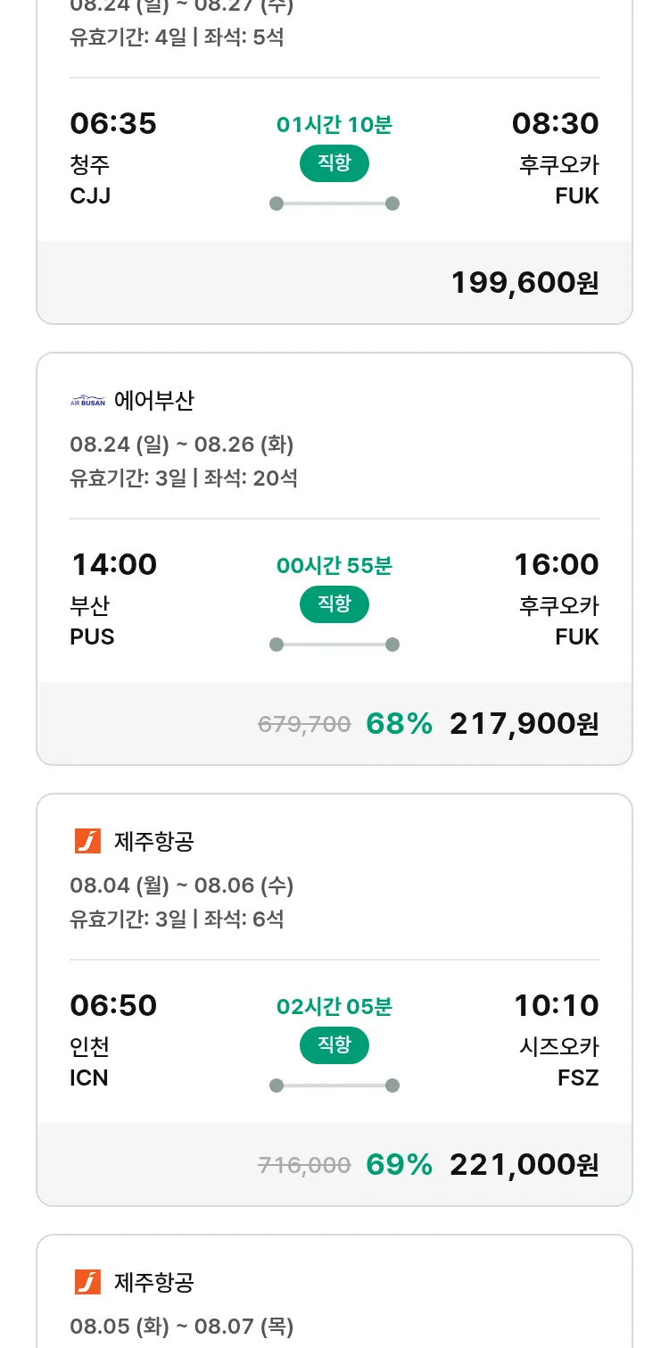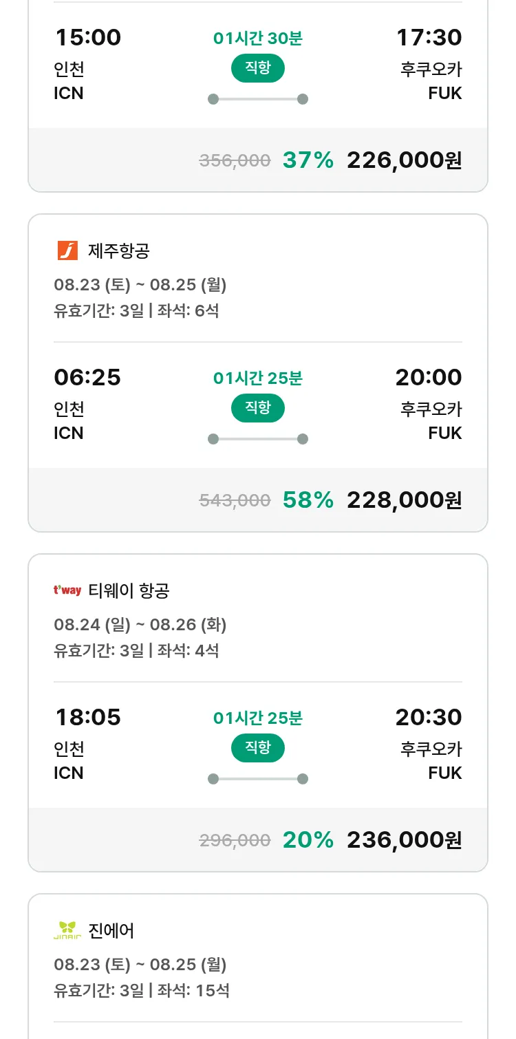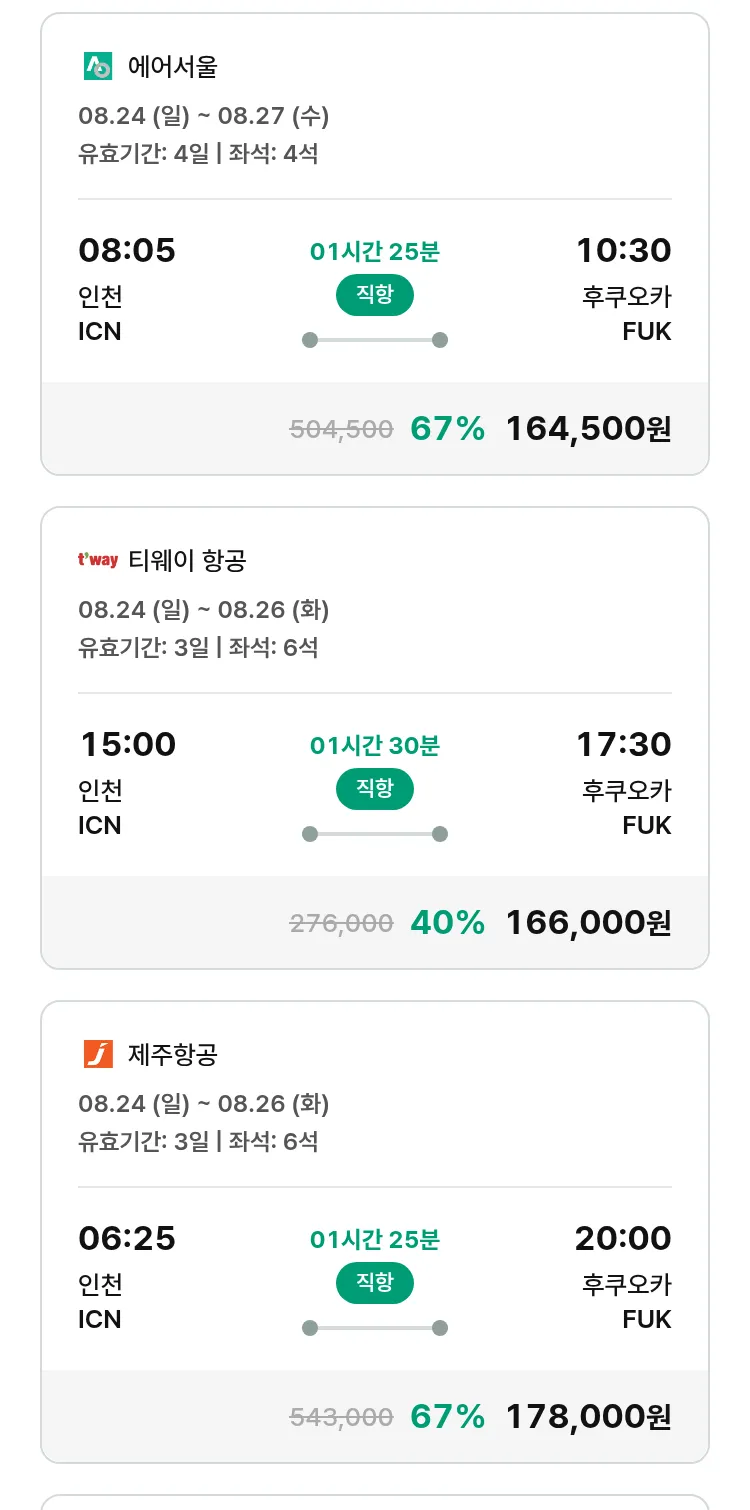 (7월 24일(목)) 모두투어 일본 특가 항공권