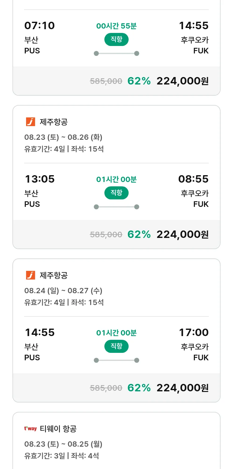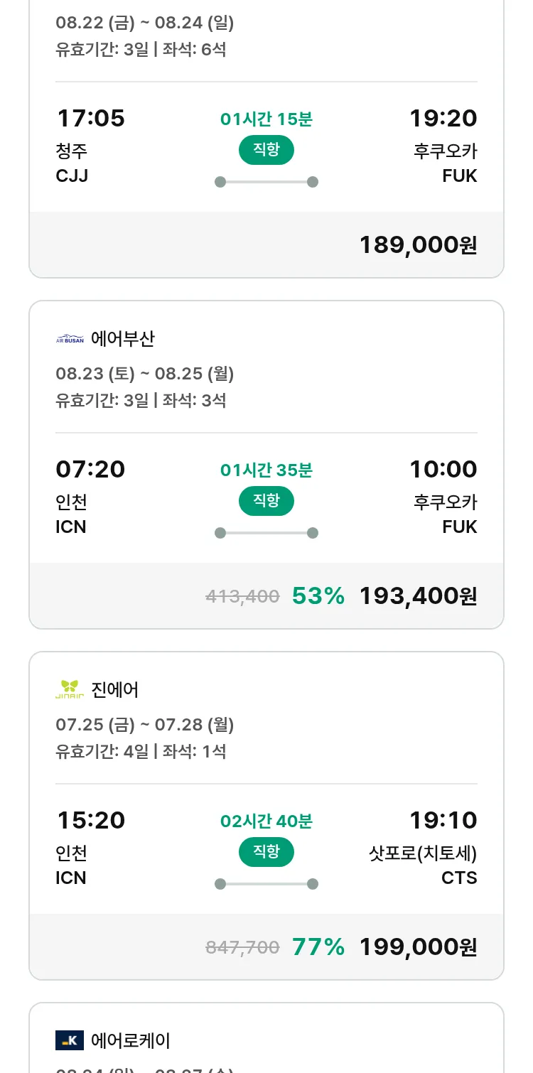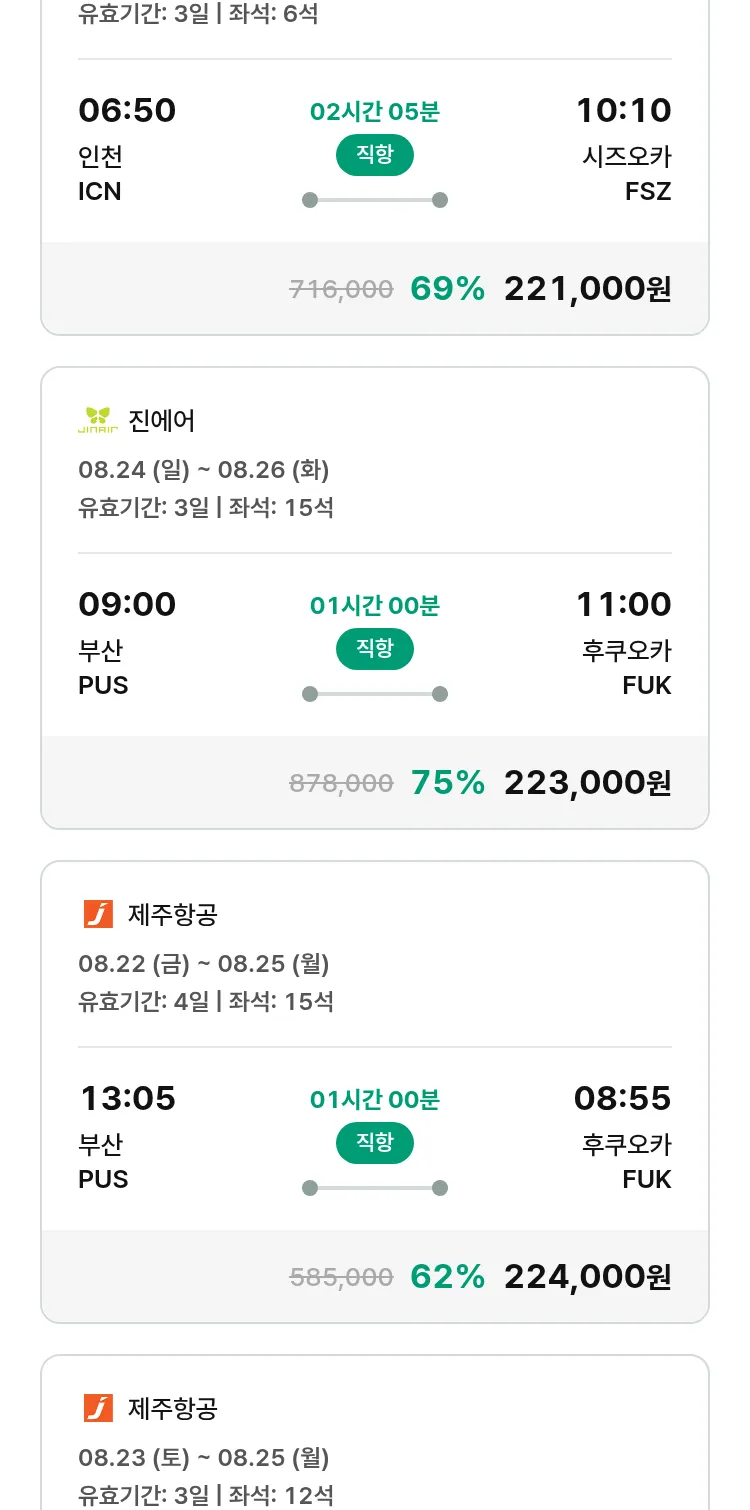 (7월 22일(화)) 모두투어 일본 특가 항공권