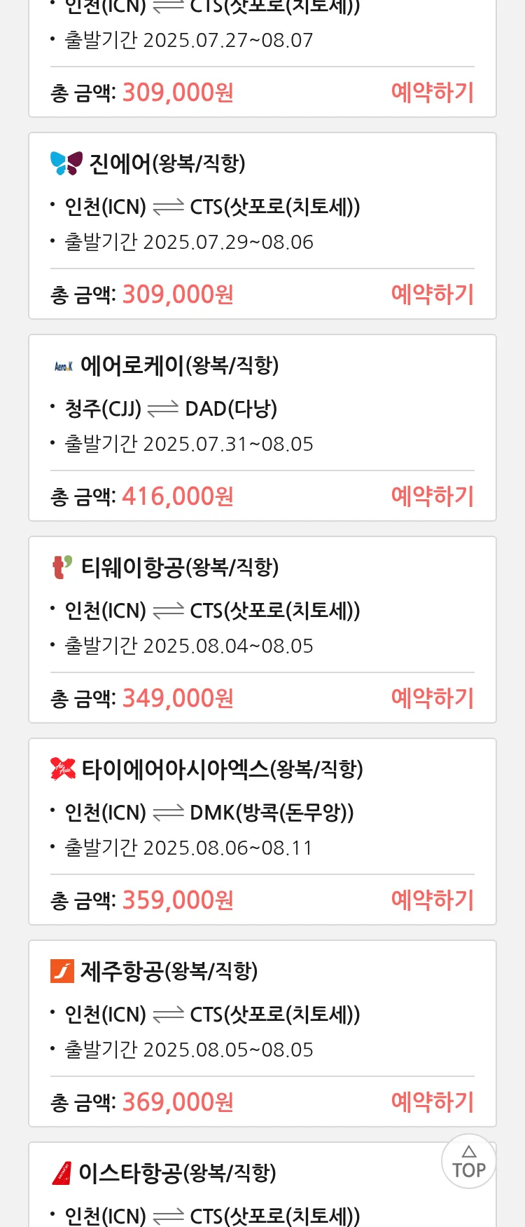 (7월 25일(금)) 모두투어 일본 특가 항공권