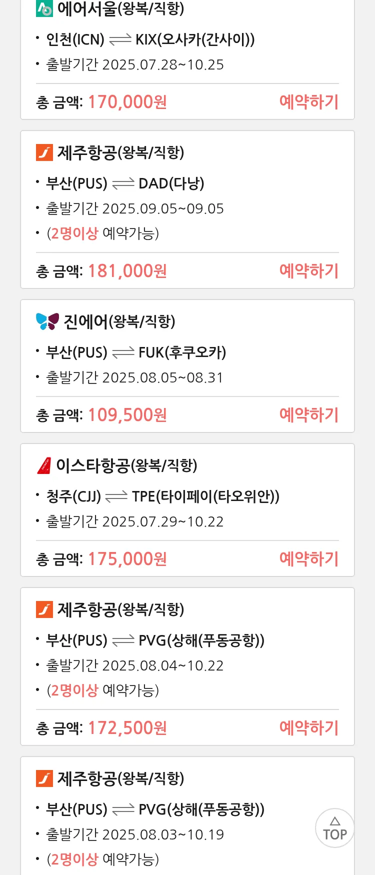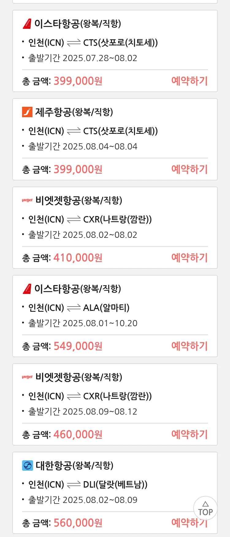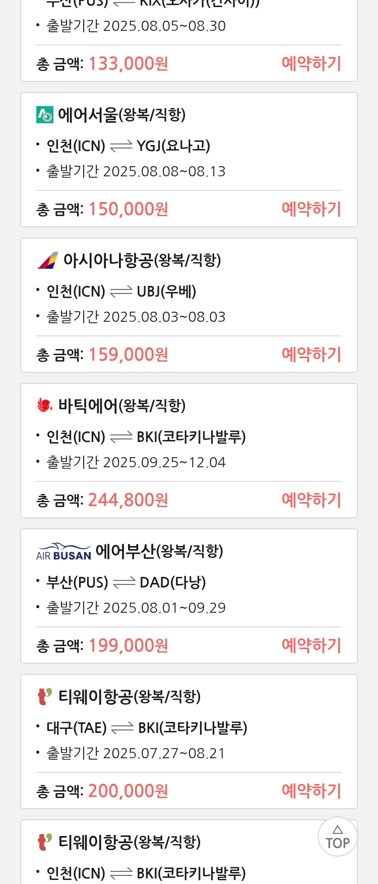 (7월 25일(금)) 모두투어 동남아 특가 항공권