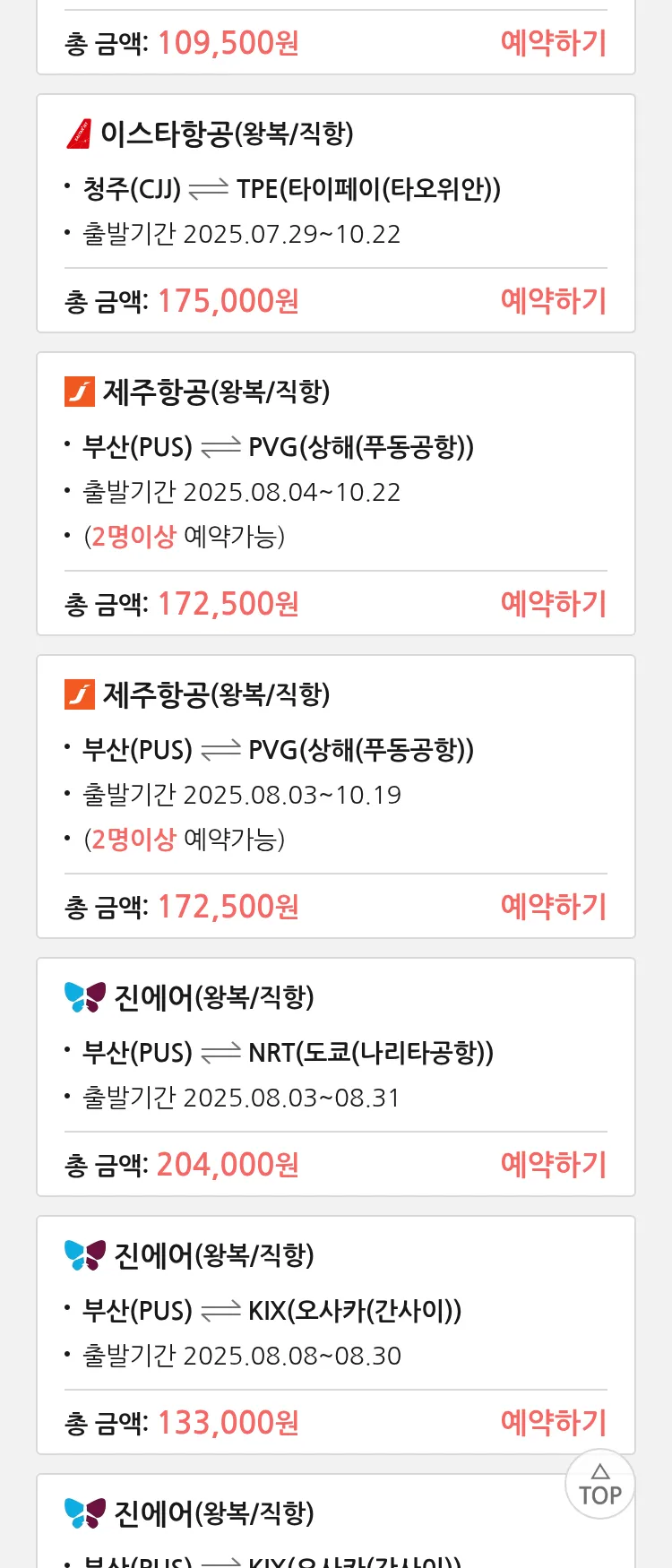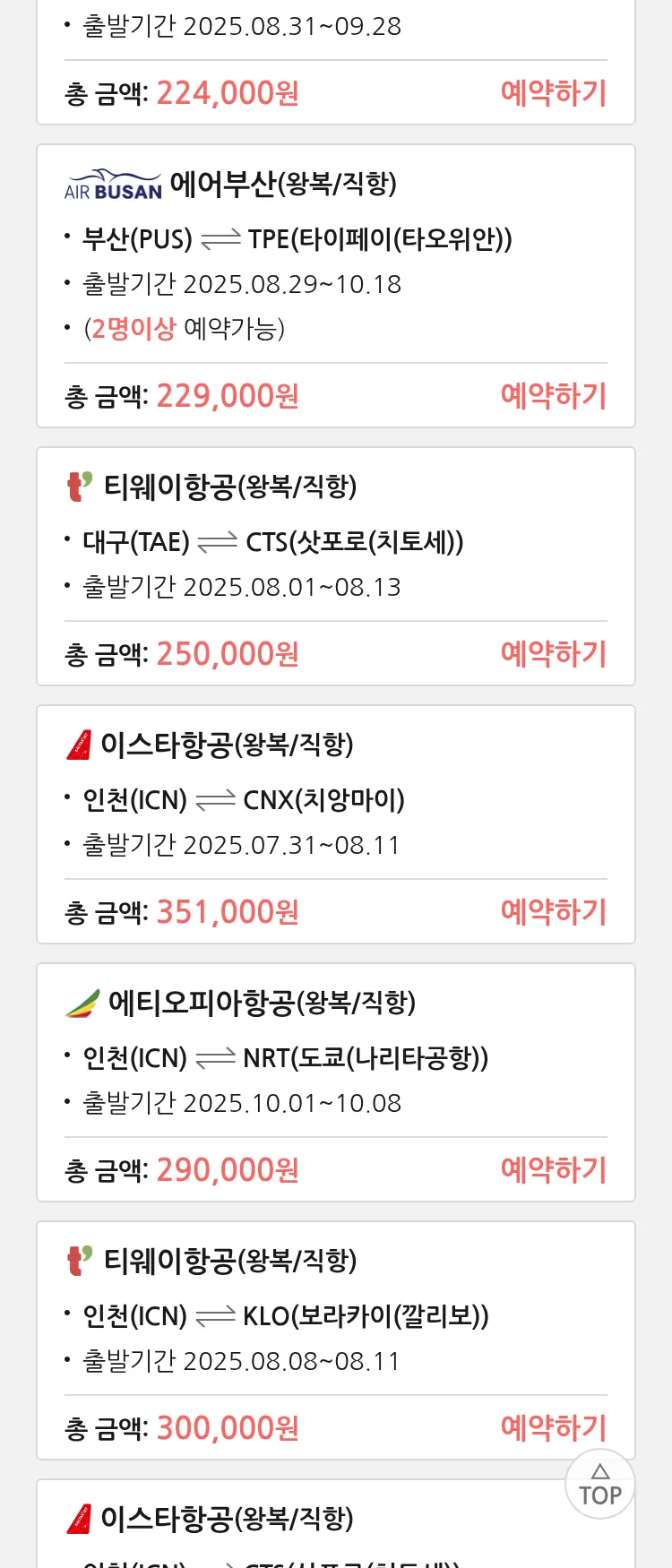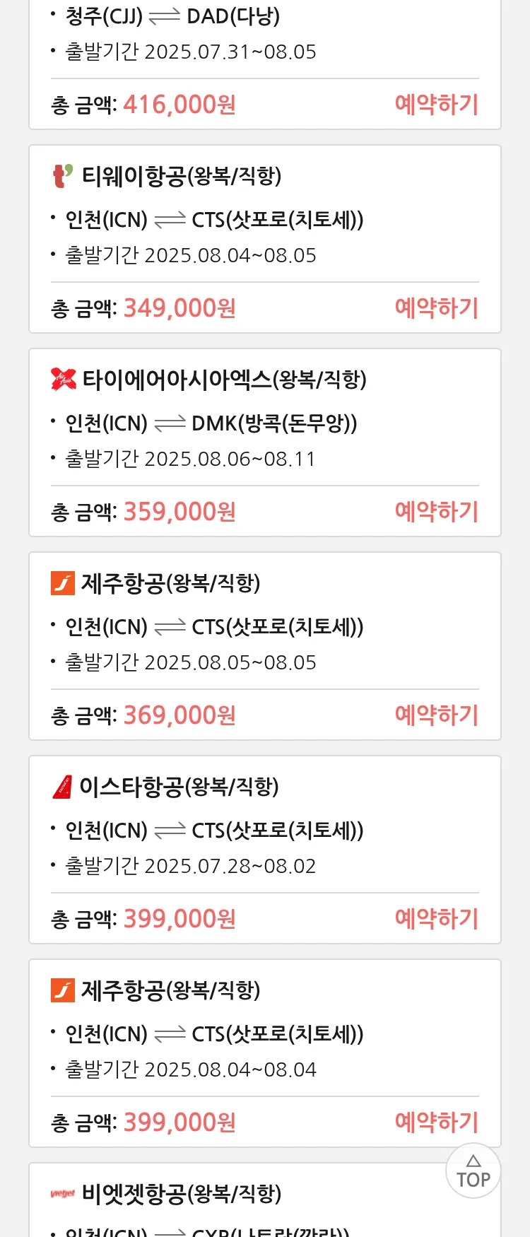 (7월 25일(금)) 모두투어 동남아 특가 항공권