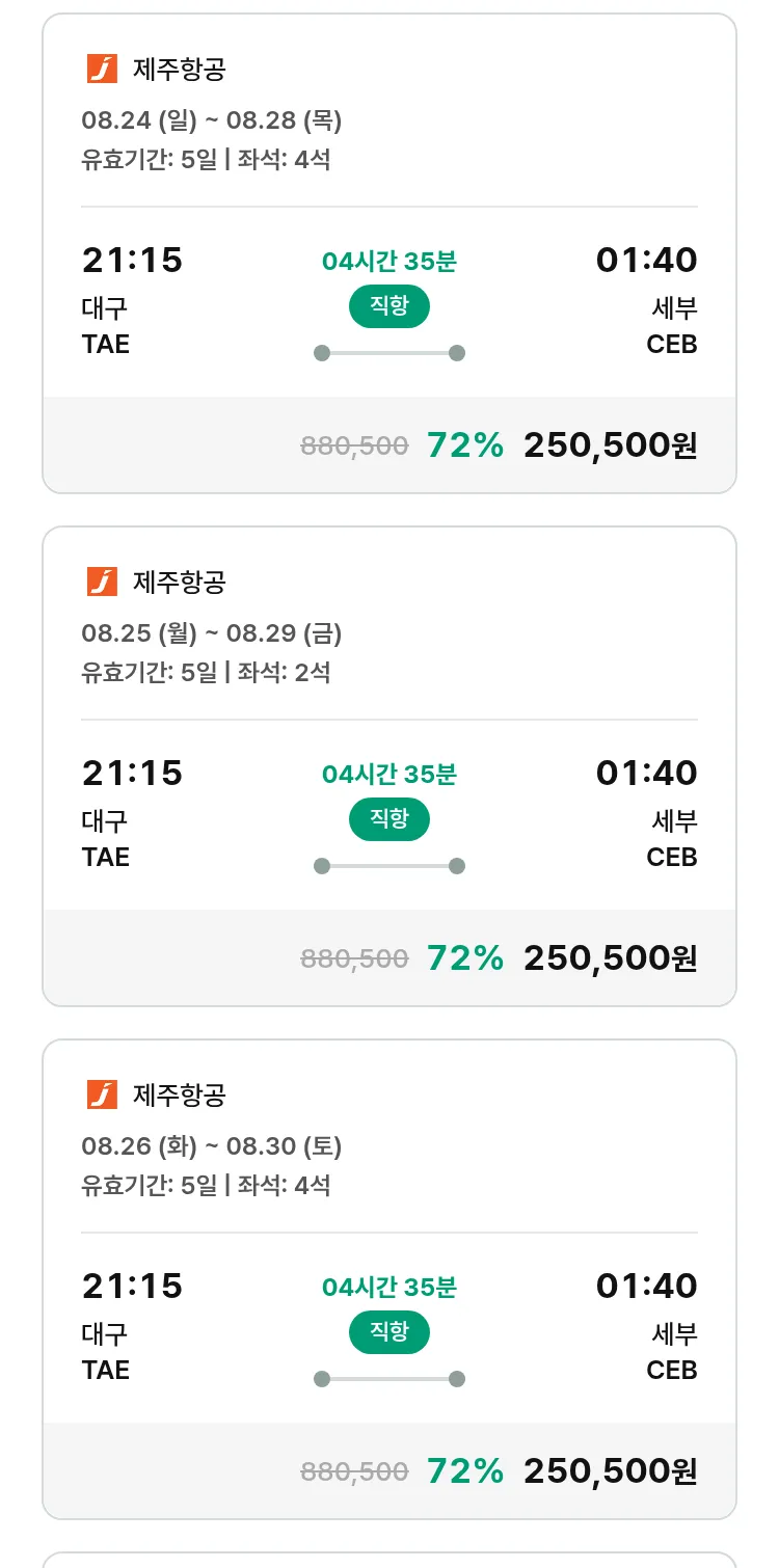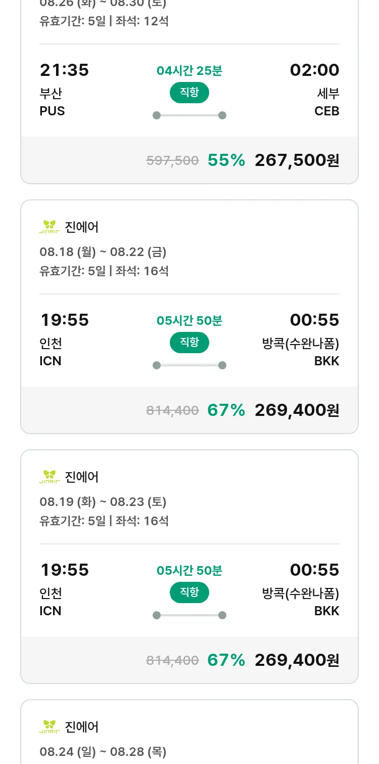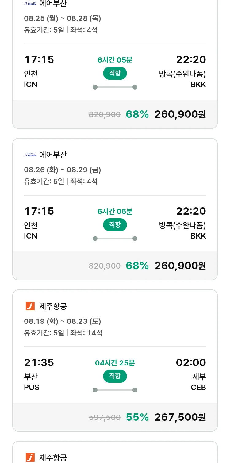 (7월 25일(금)) 모두투어 동남아 특가 항공권