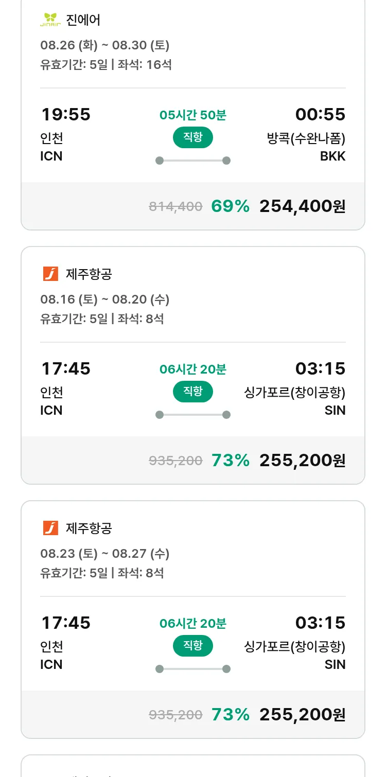 (7월 26일(토)) 모두투어 동남아 특가 항공권