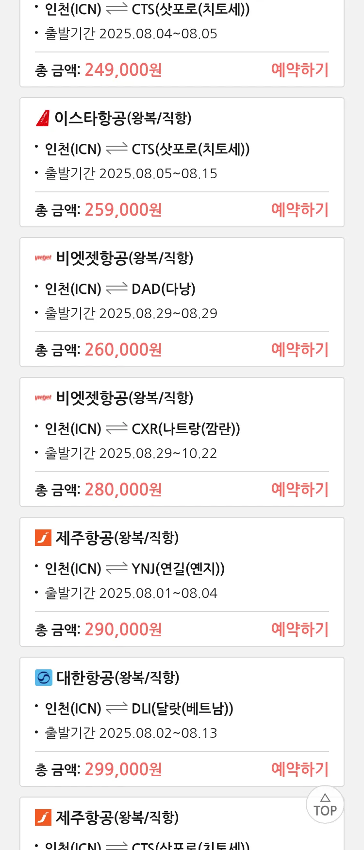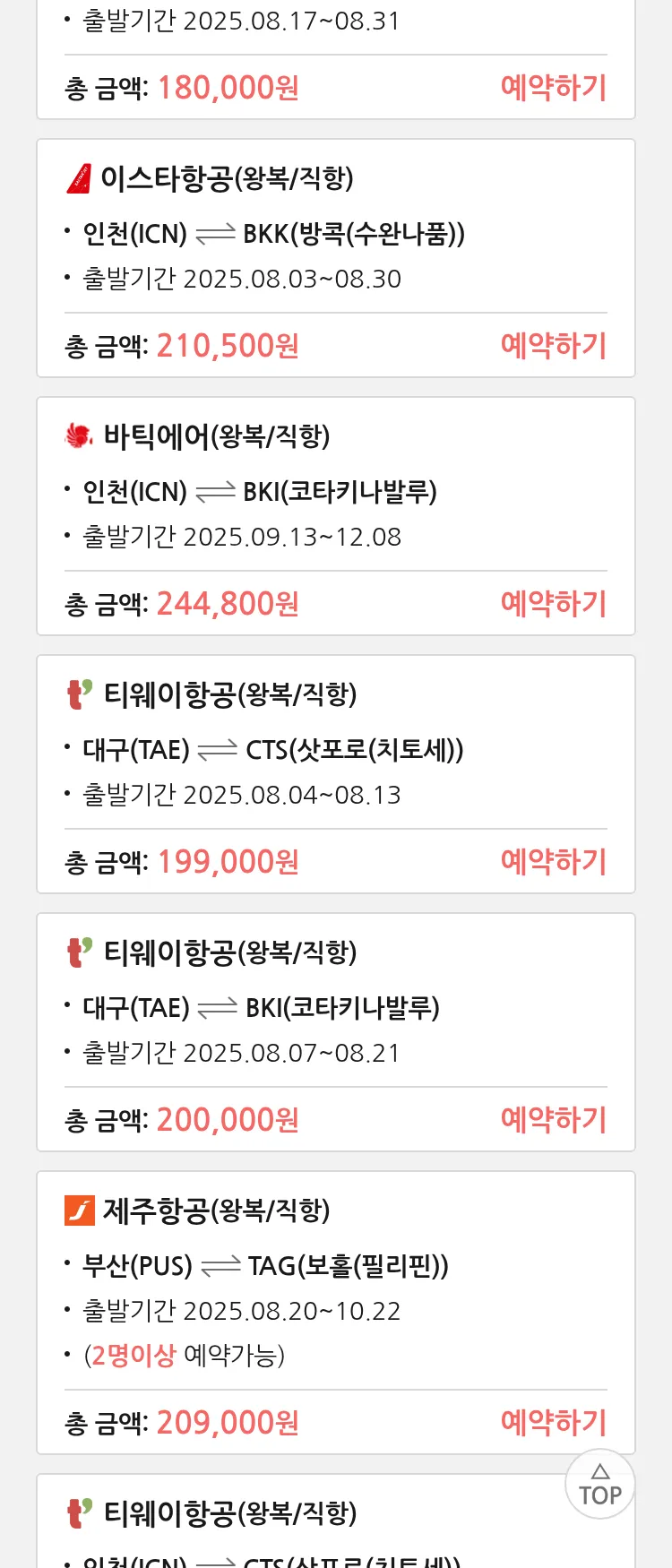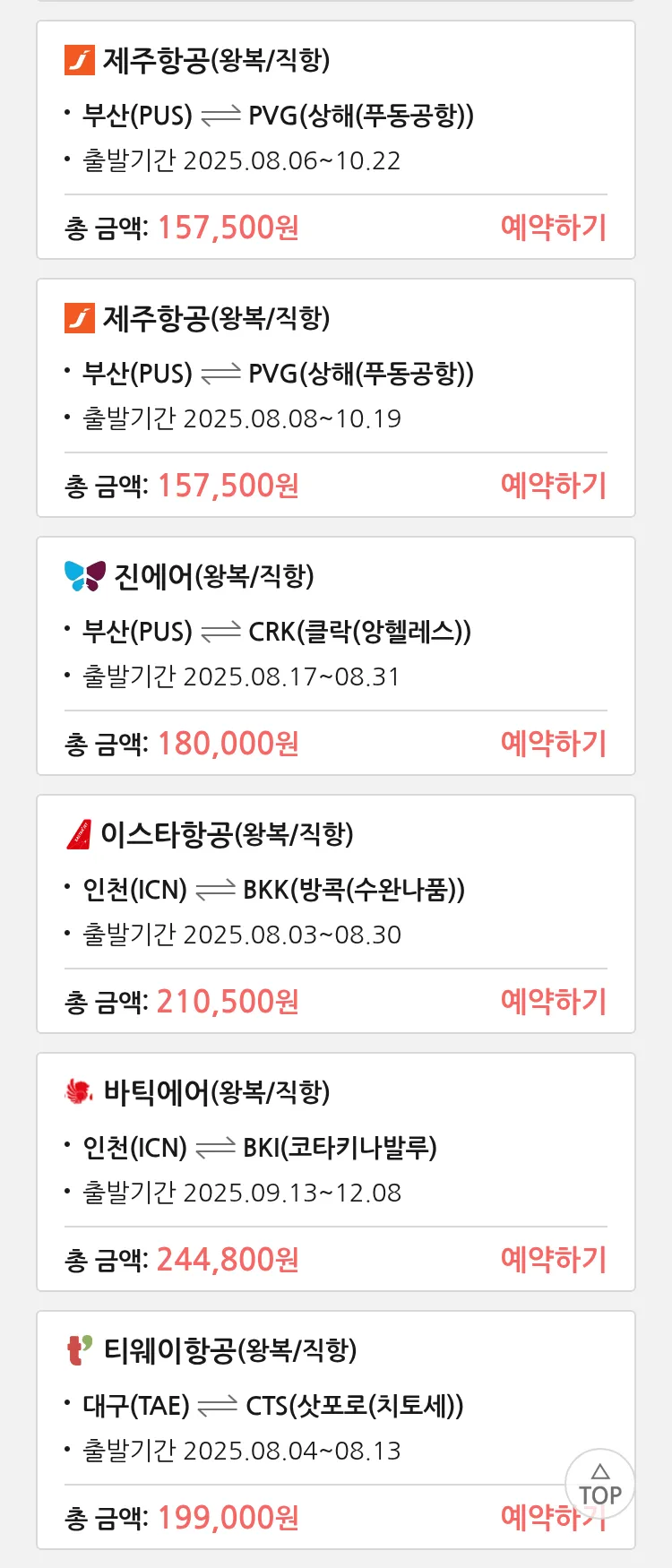 (8월4일(월)) 모두투어 동남아 특가 항공권
