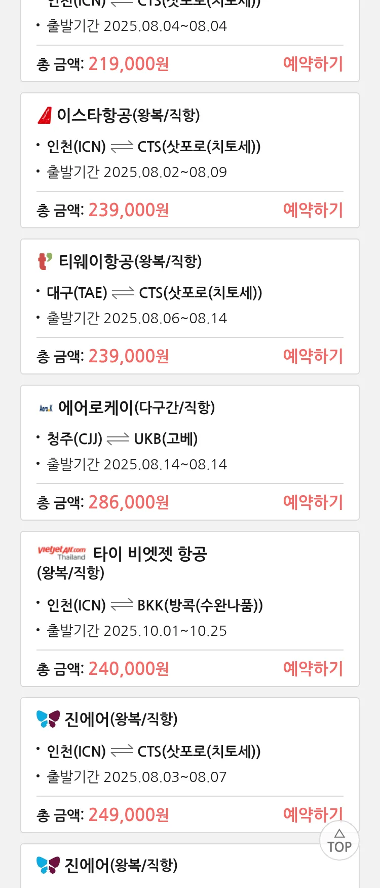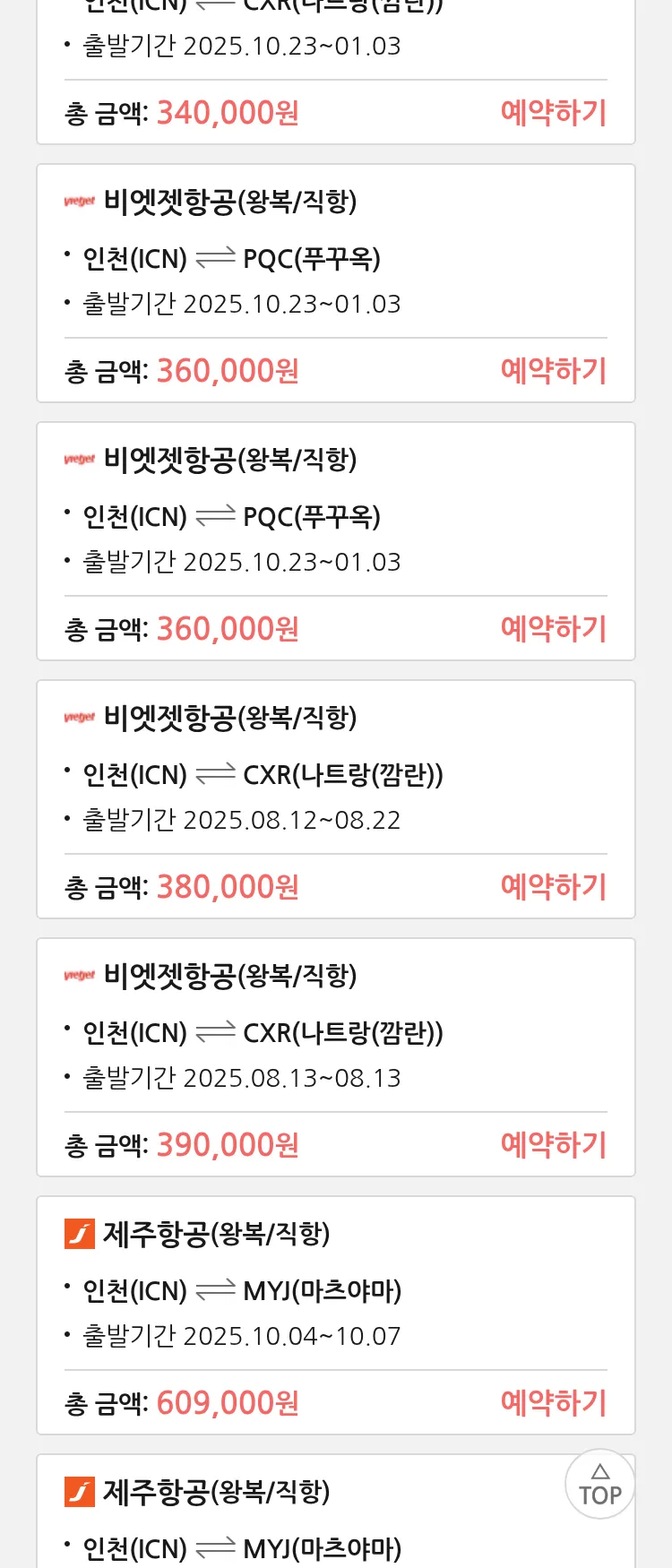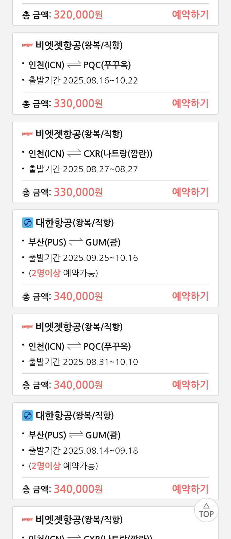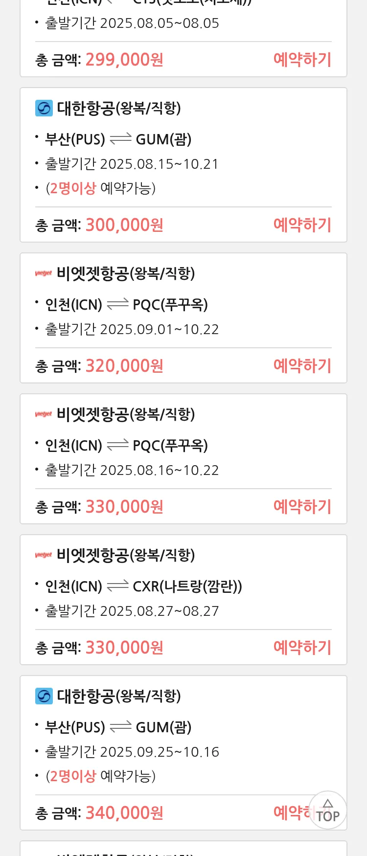 (8월4일(월)) 모두투어 동남아 특가 항공권