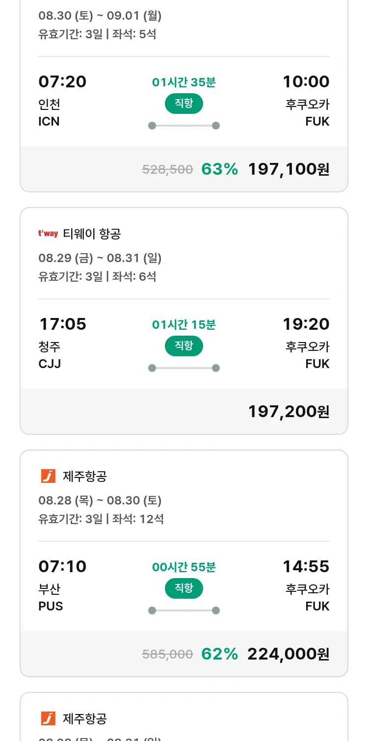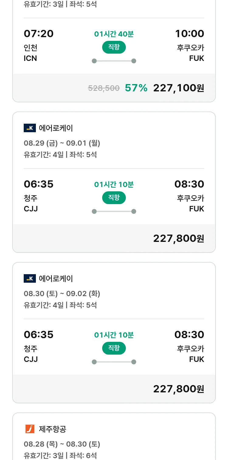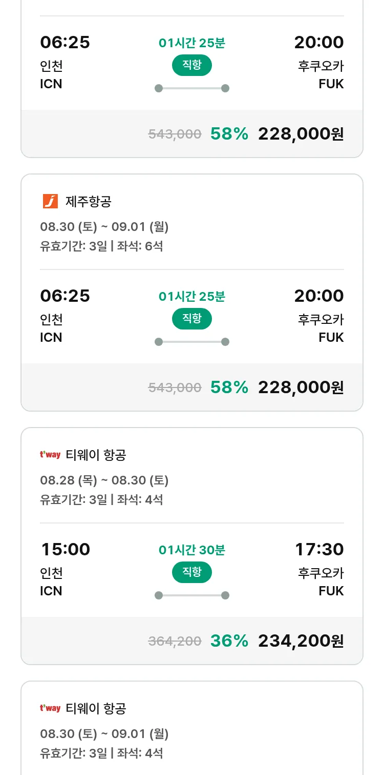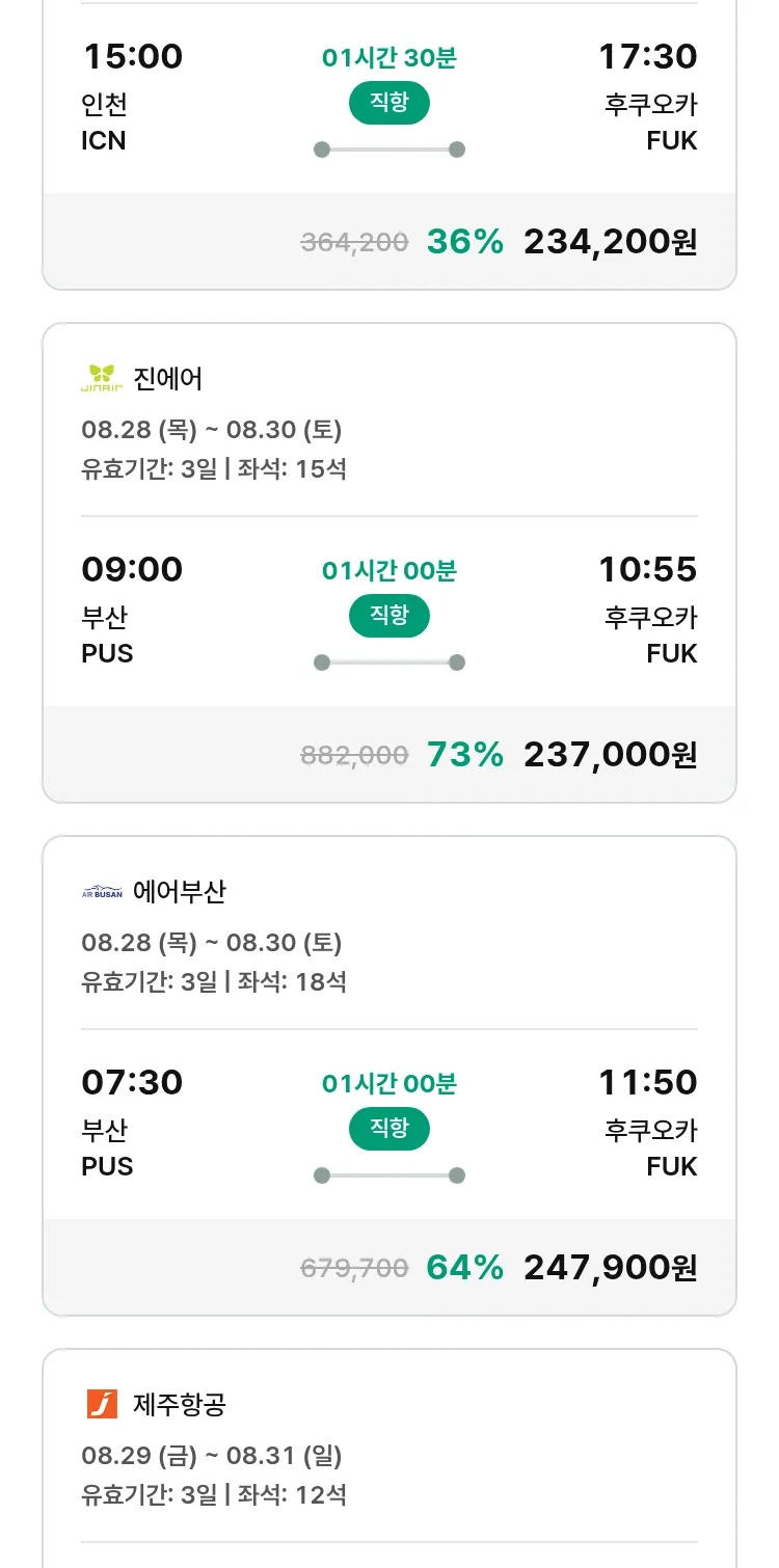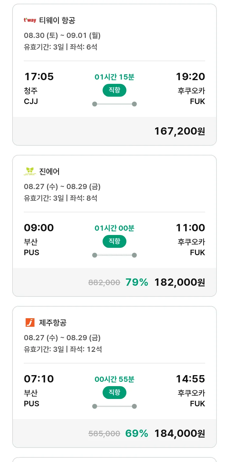 (7월 30일(수)) 모두투어 일본 특가 항공권