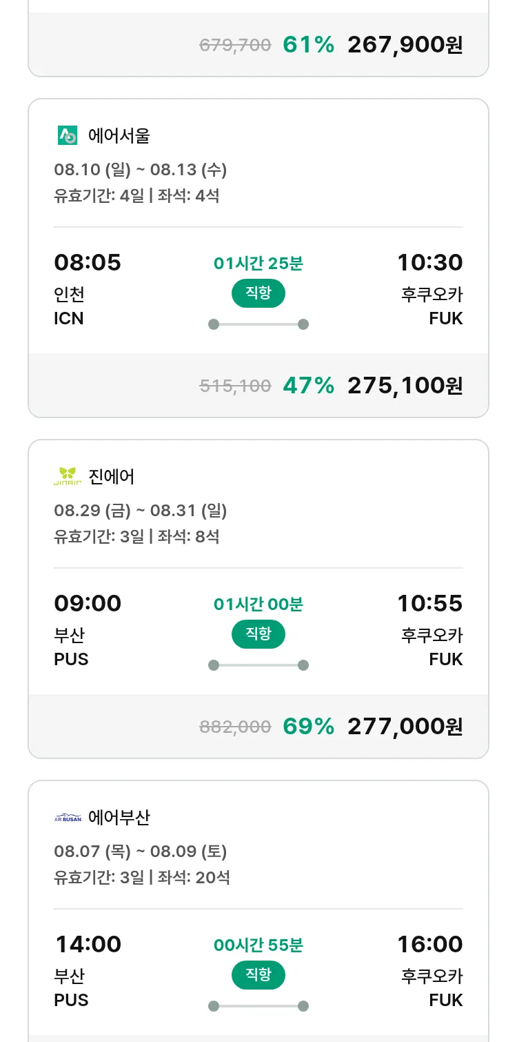 (7월 31일(목)) 모두투어 일본 특가 항공권