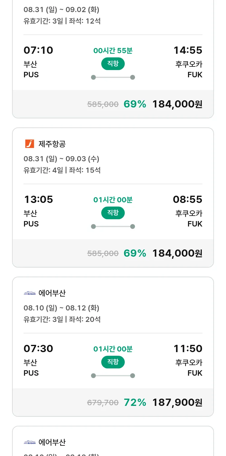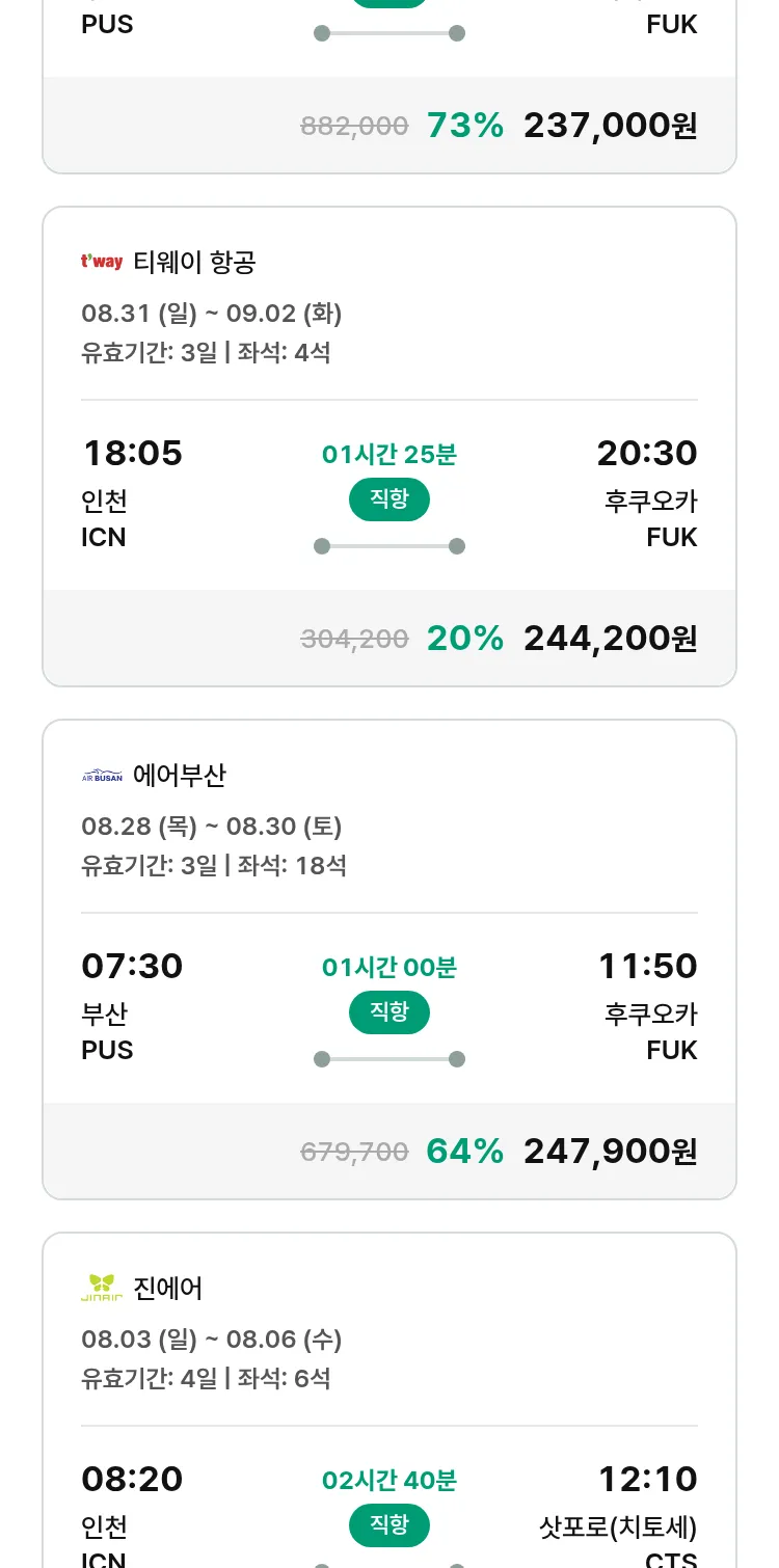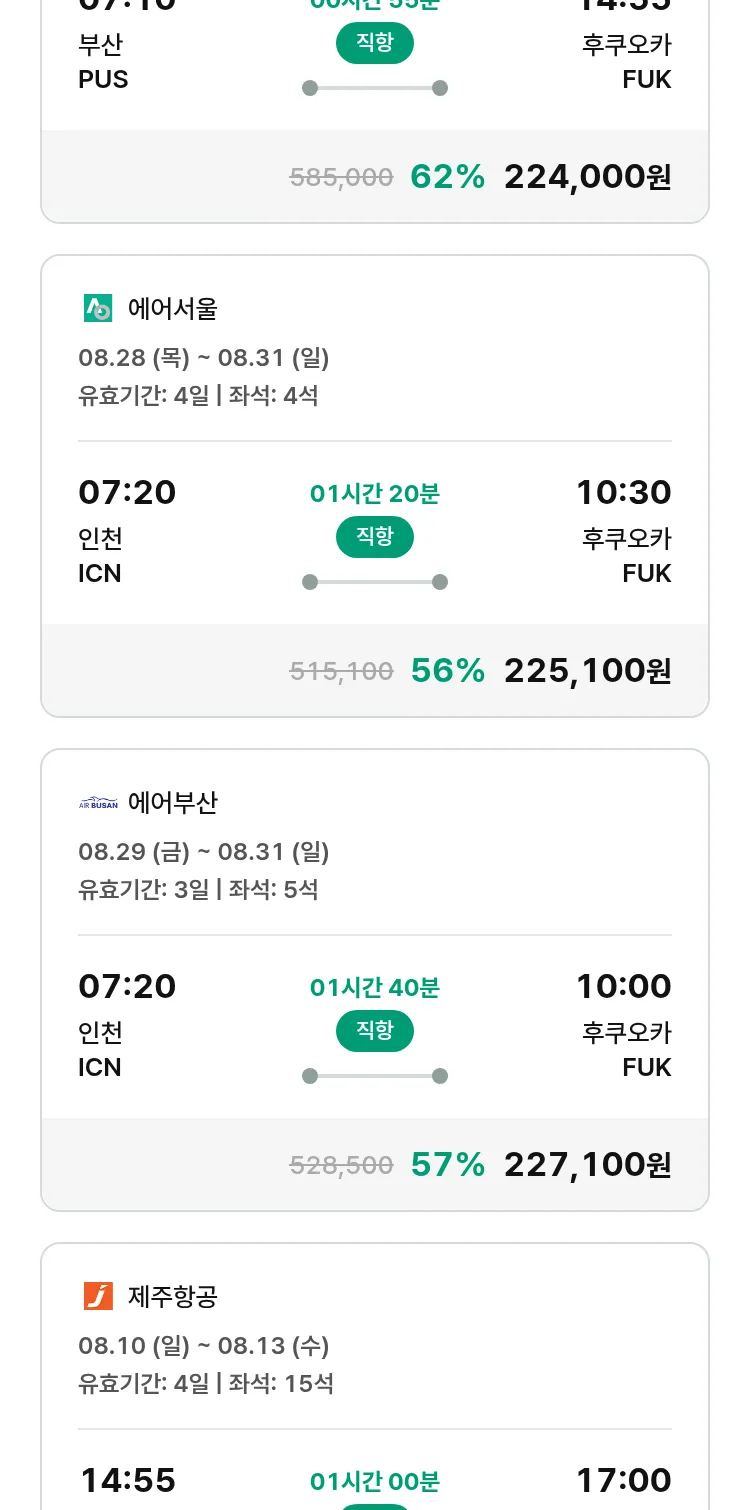 (7월 31일(목)) 모두투어 일본 특가 항공권