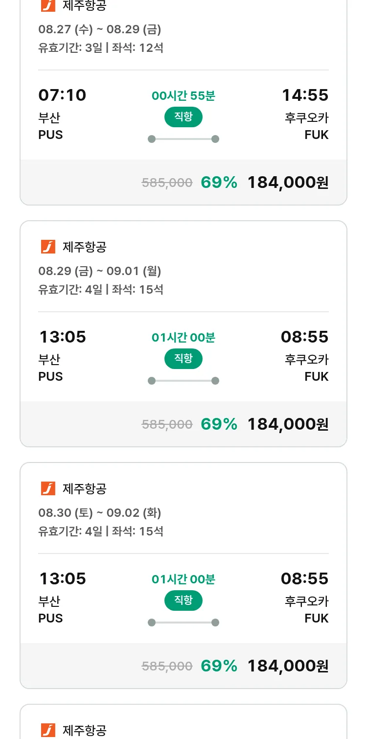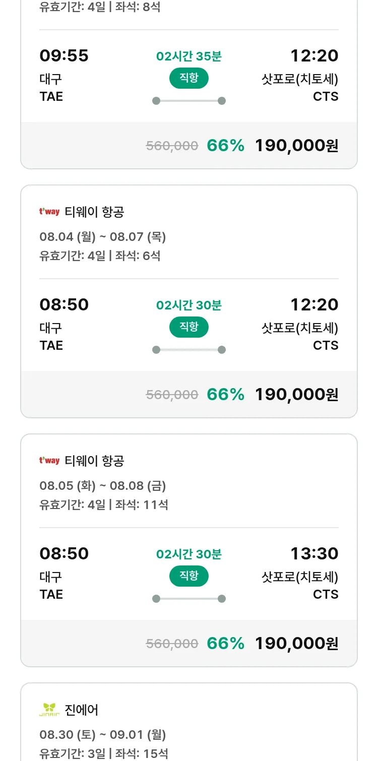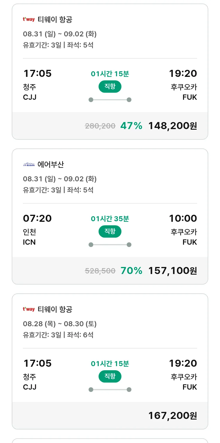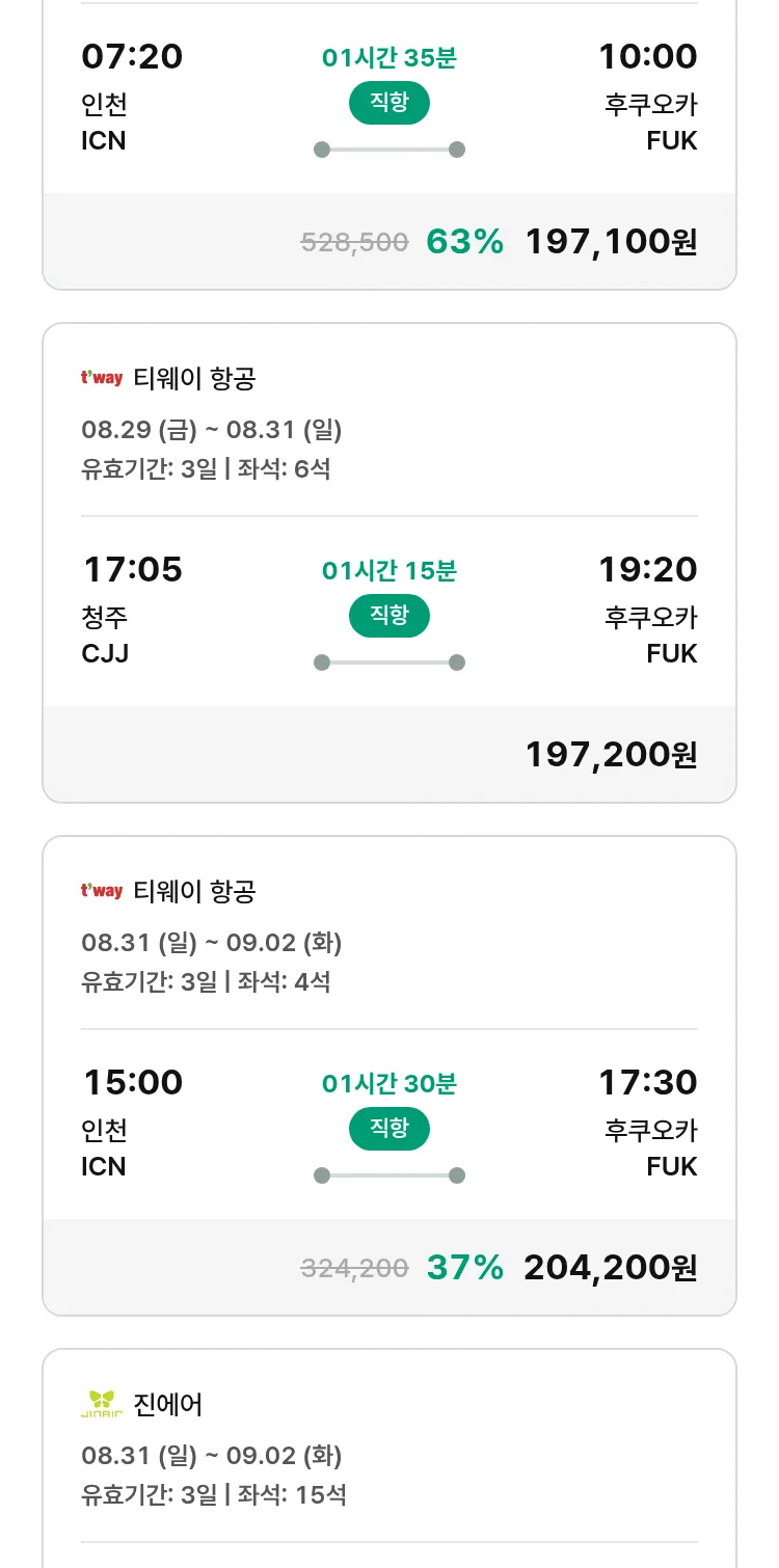 (7월 31일(목)) 모두투어 일본 특가 항공권