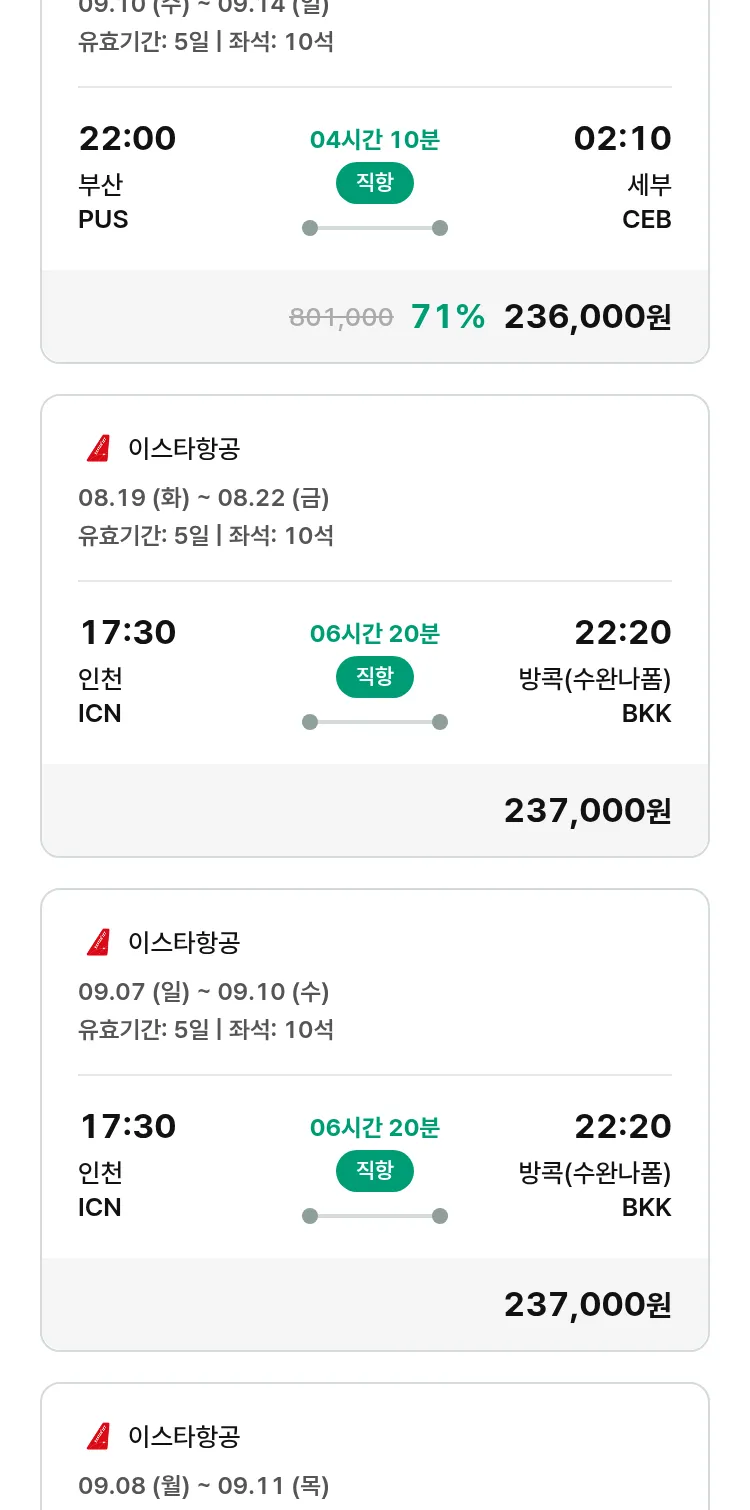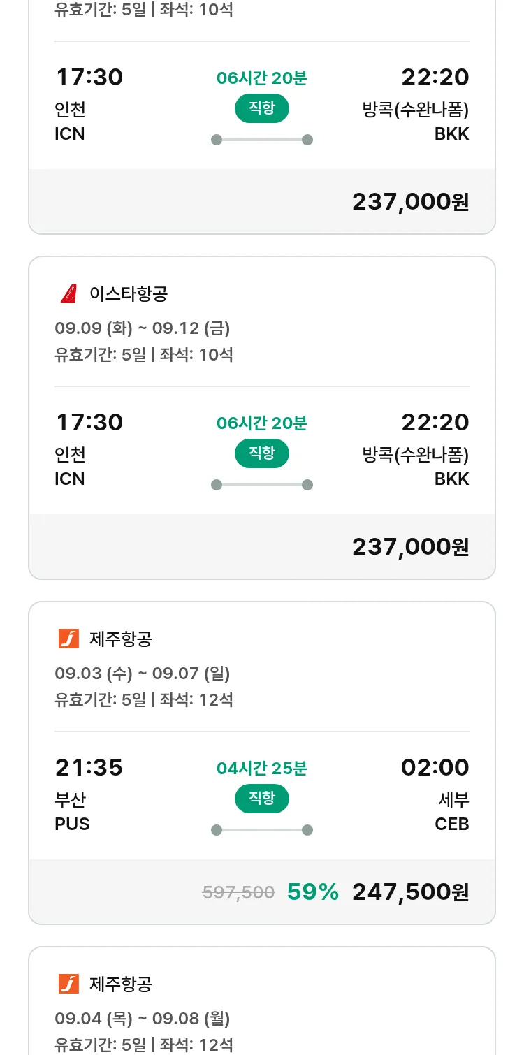 (8월 10일(일)) 모두투어 동남아 특가 항공권