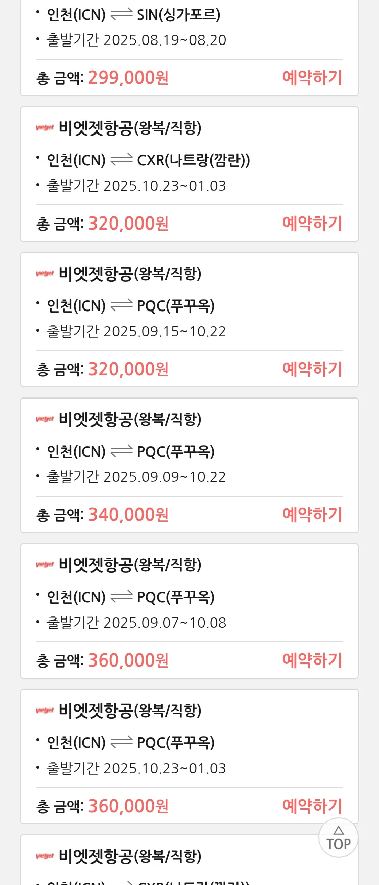 (8월 15일(금)) 모두투어 동남아 특가 항공권