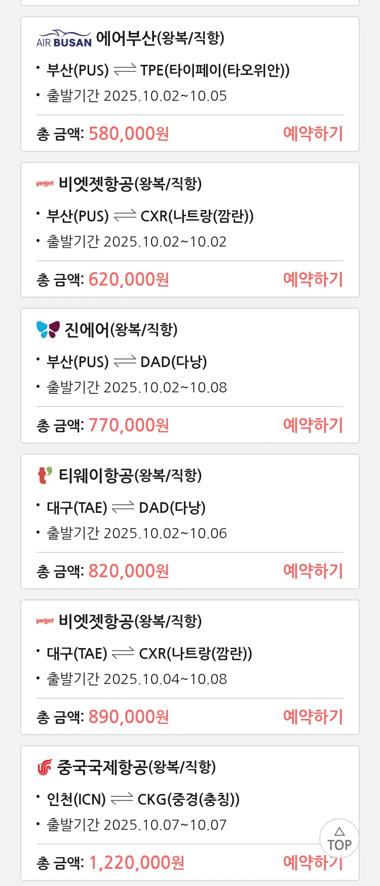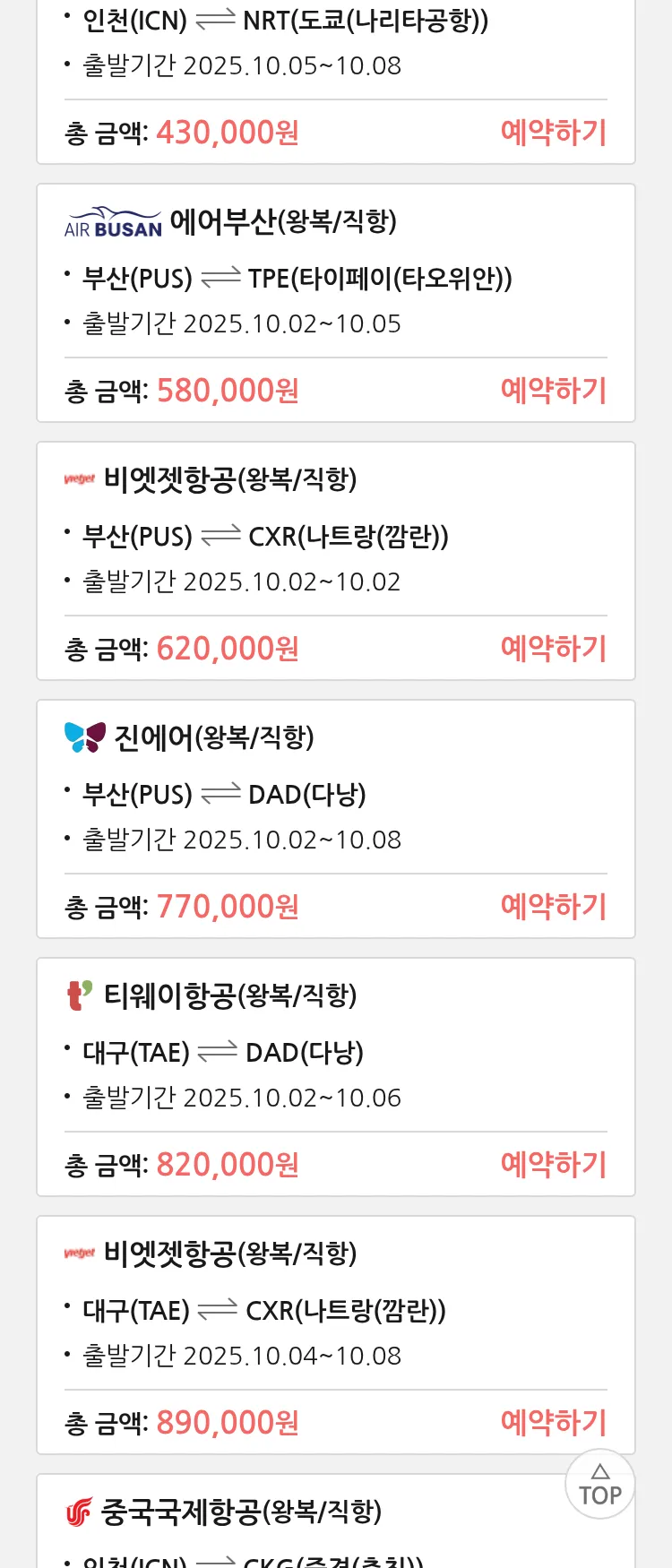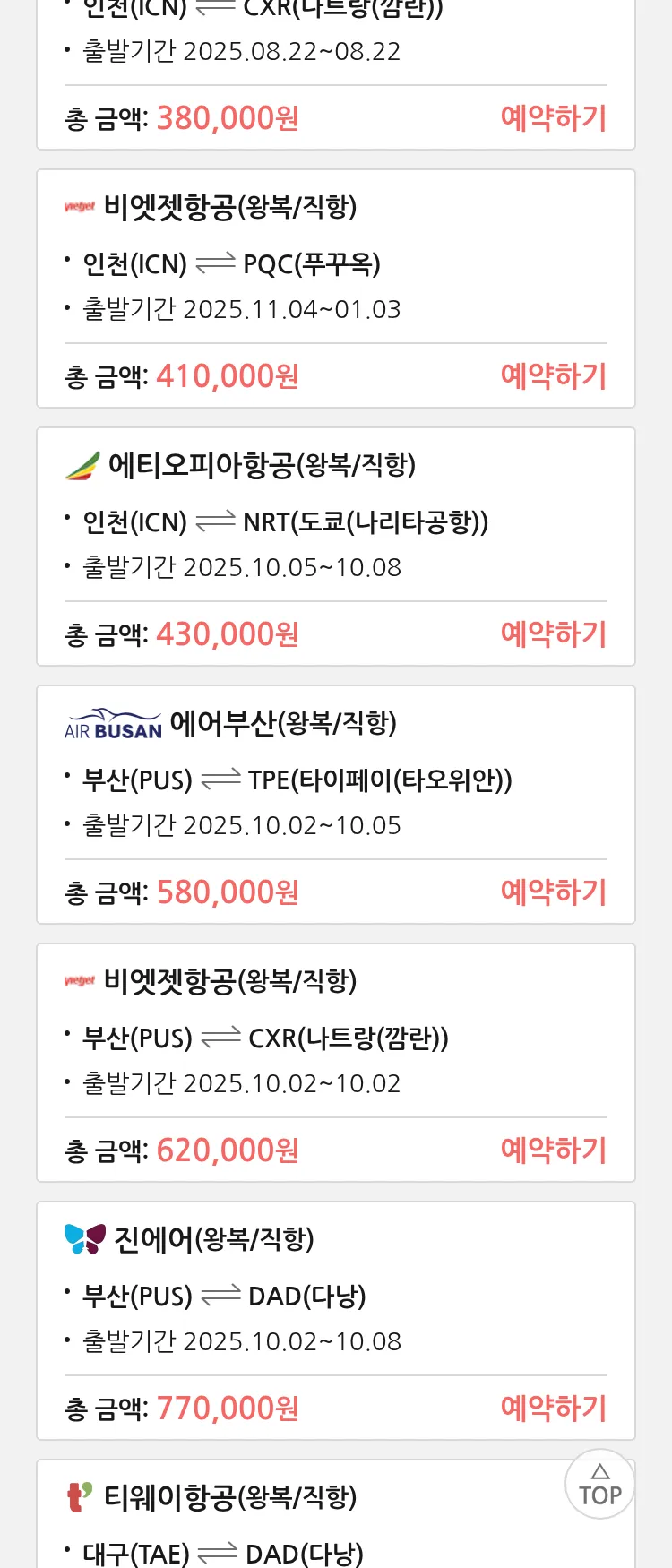 (8월 15일(금)) 땡처리 특가 항공권