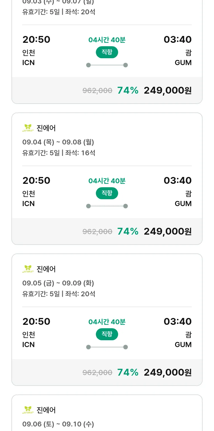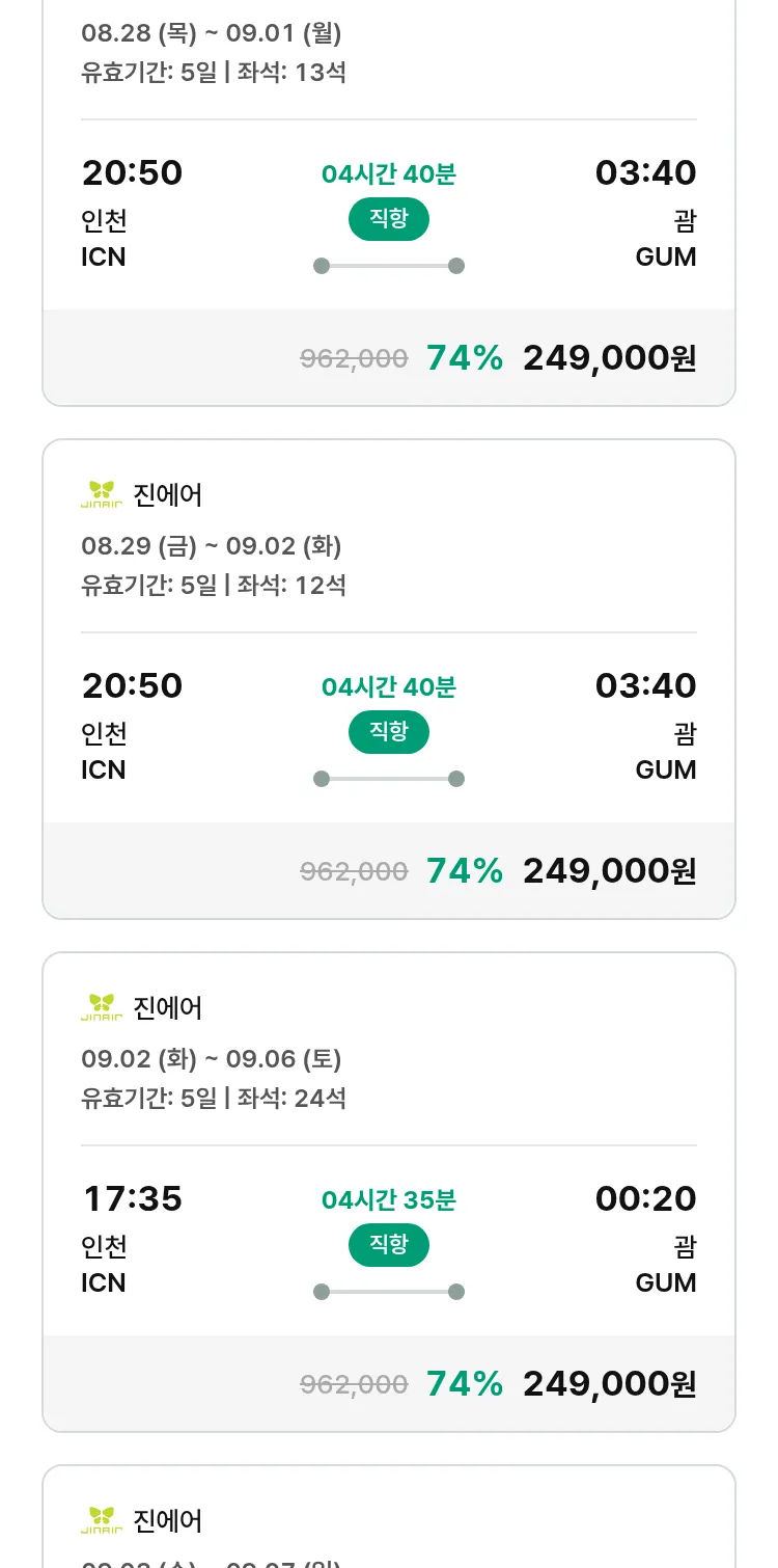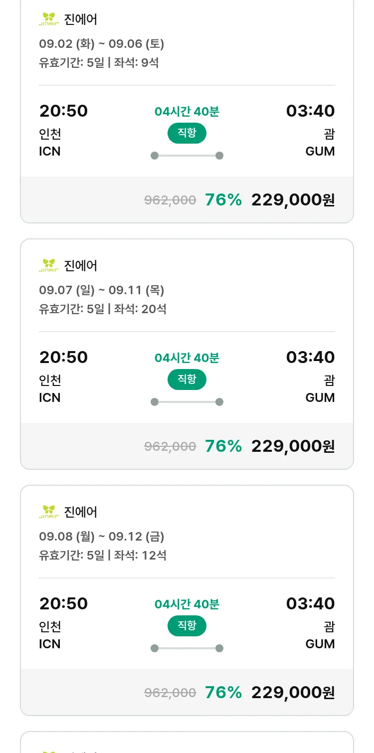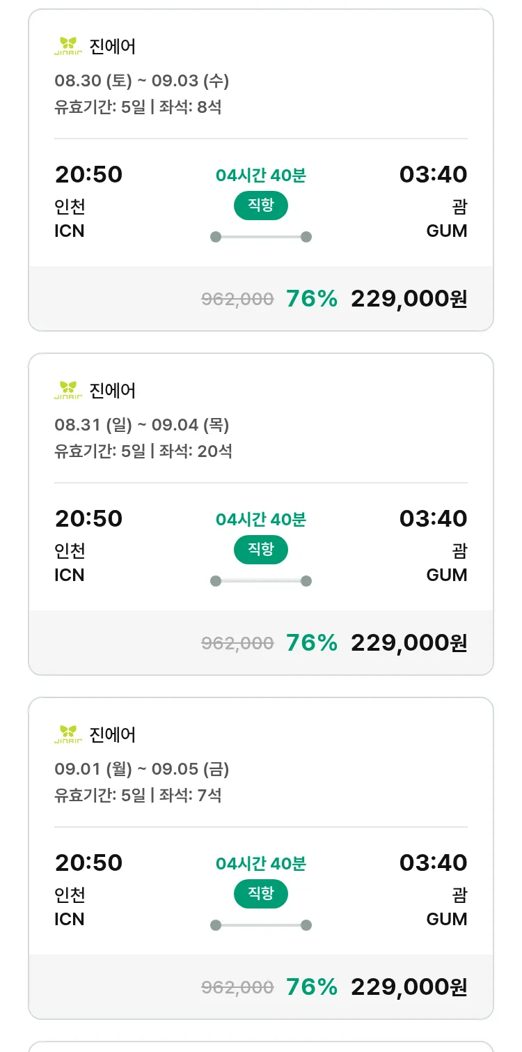 (8월 15일(금)) 땡처리 특가 항공권