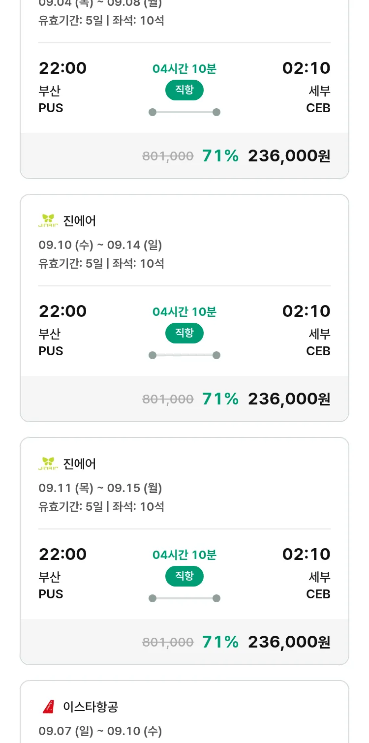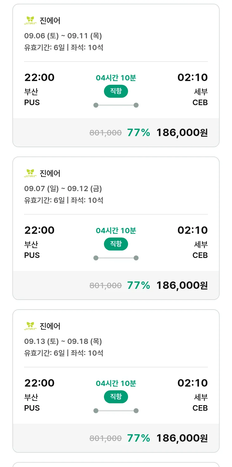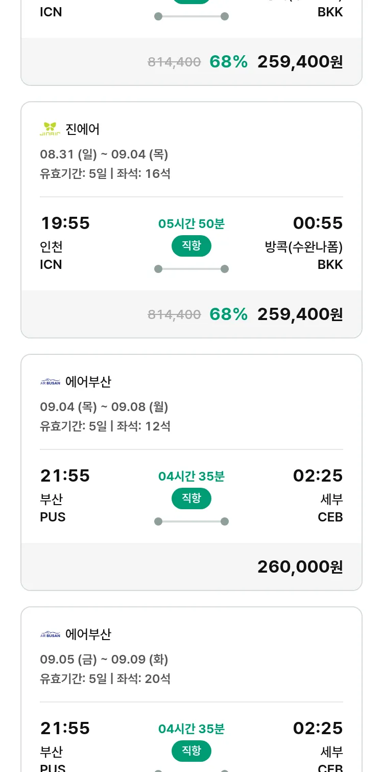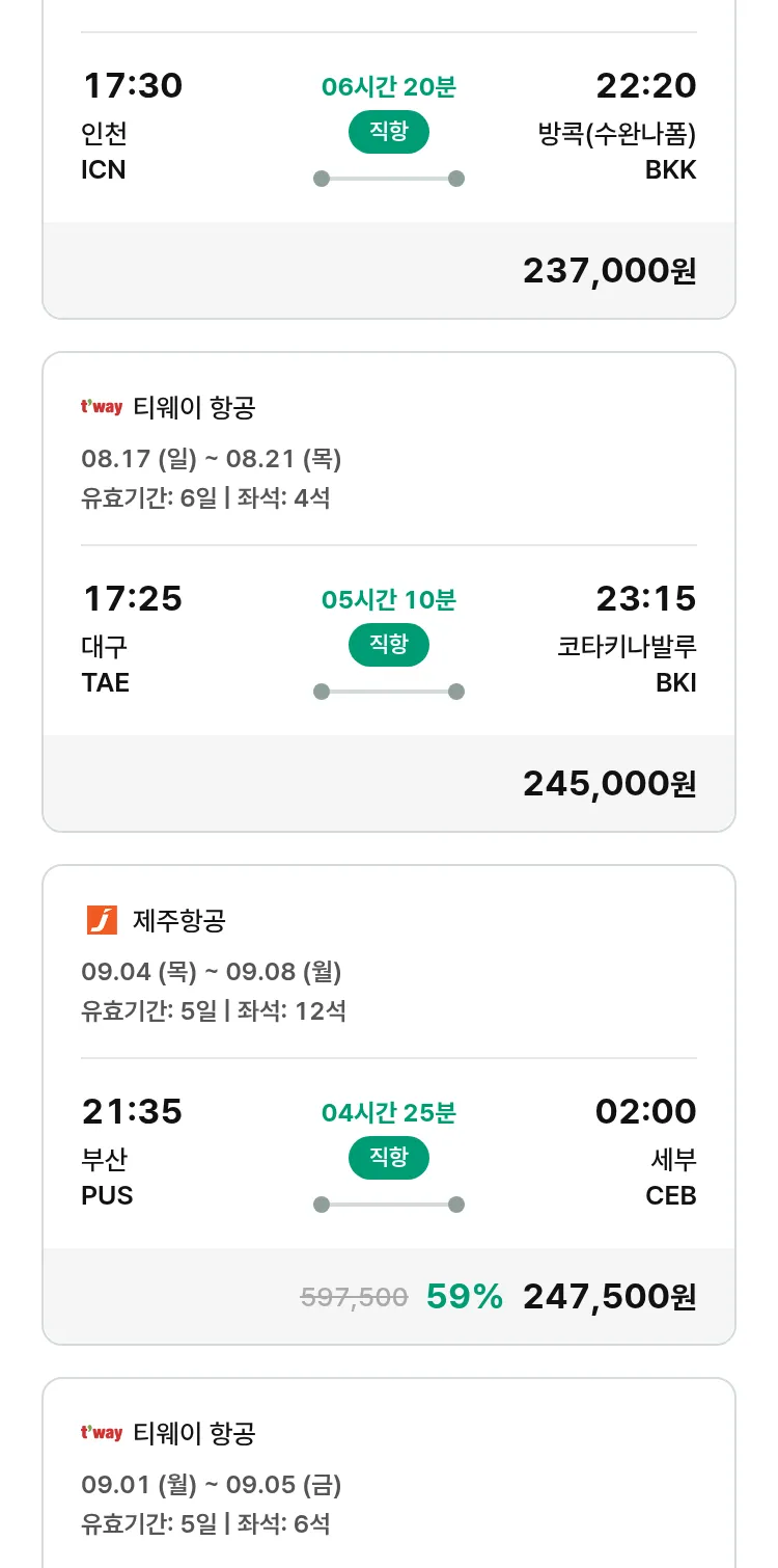 (8월 10일(일)) 땡처리 특가 항공권
