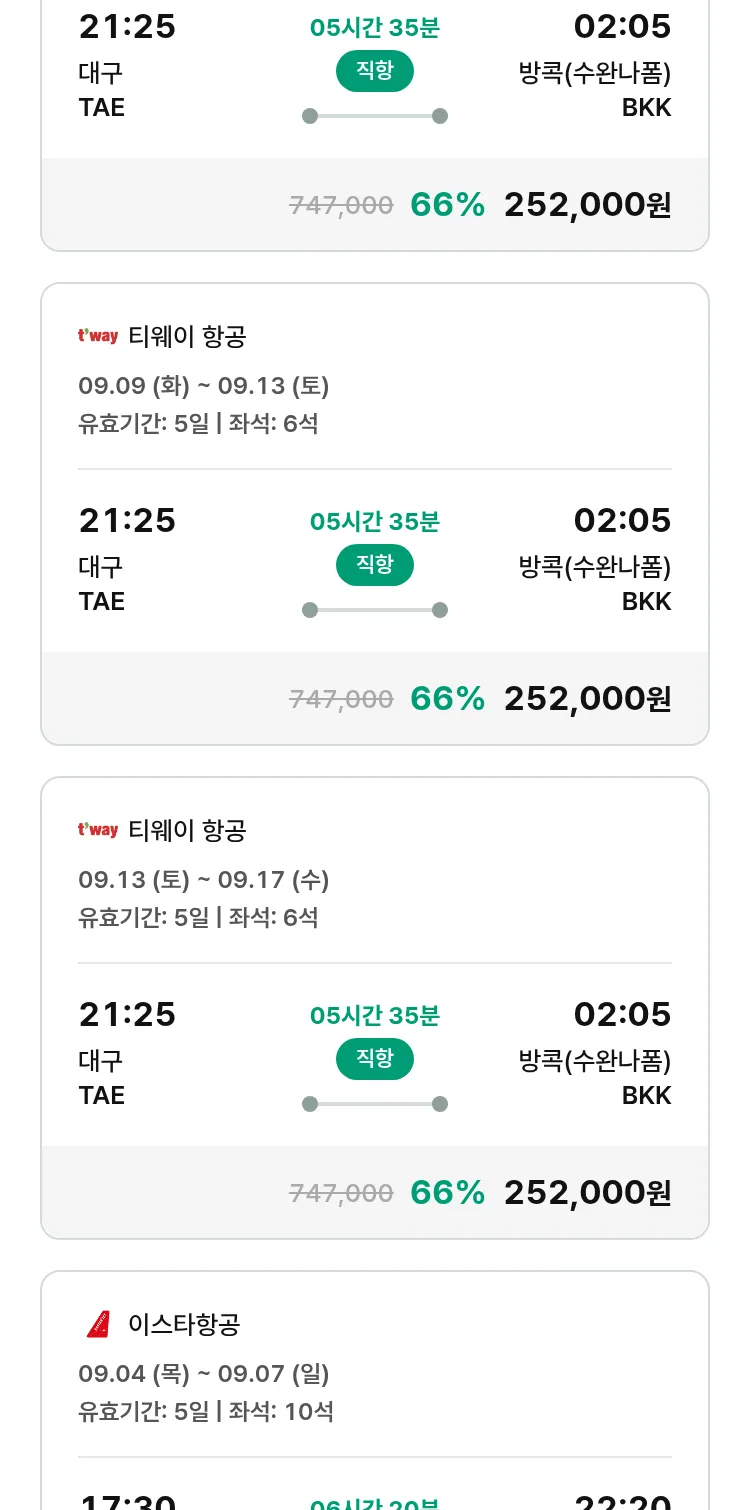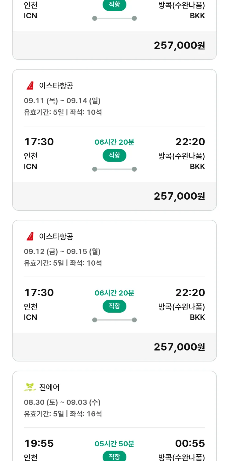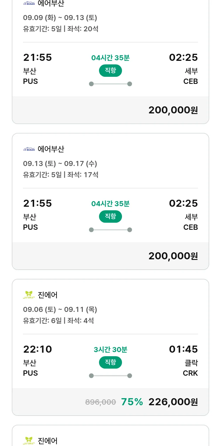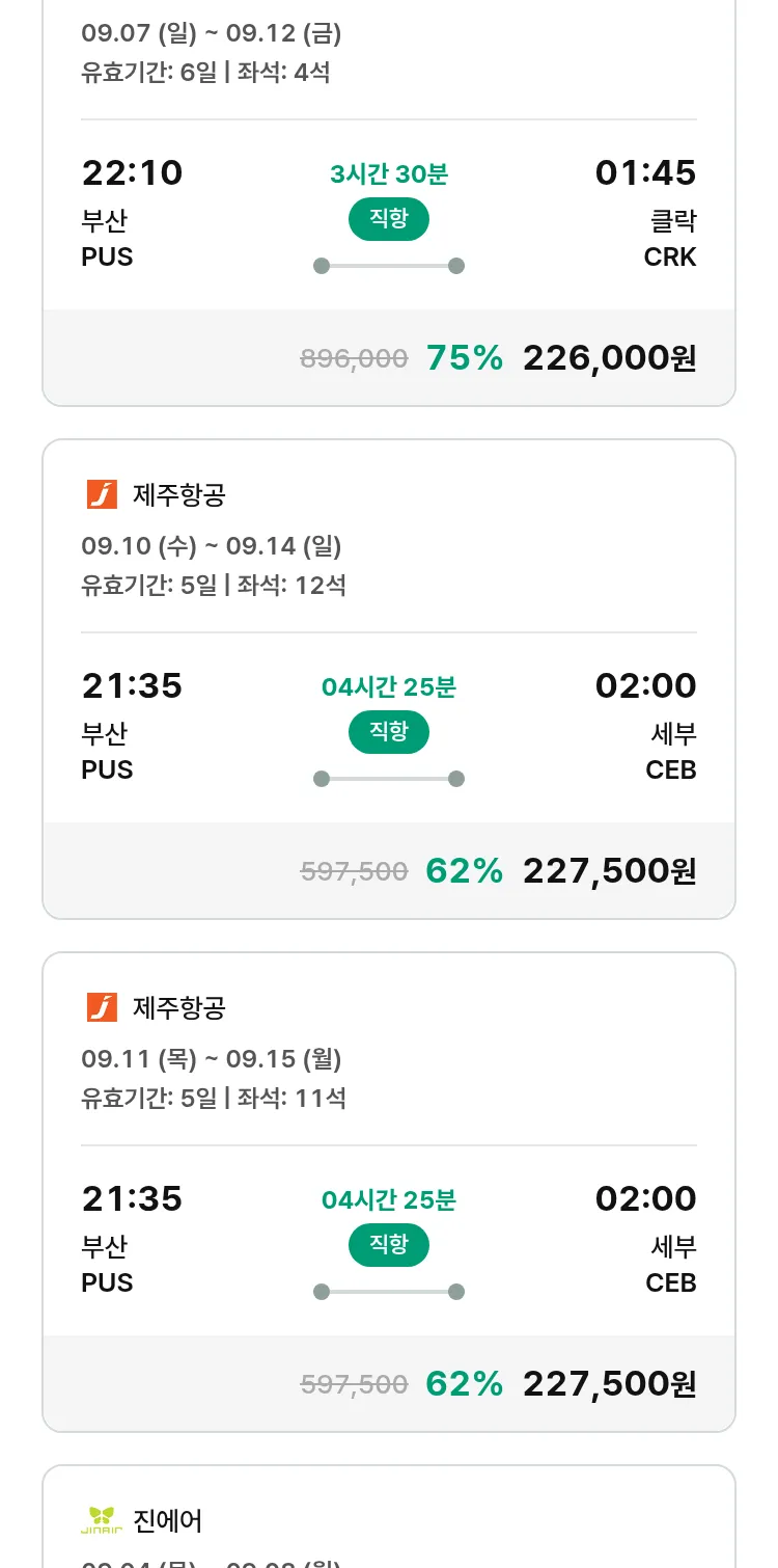 (8월 10일(일)) 땡처리 특가 항공권