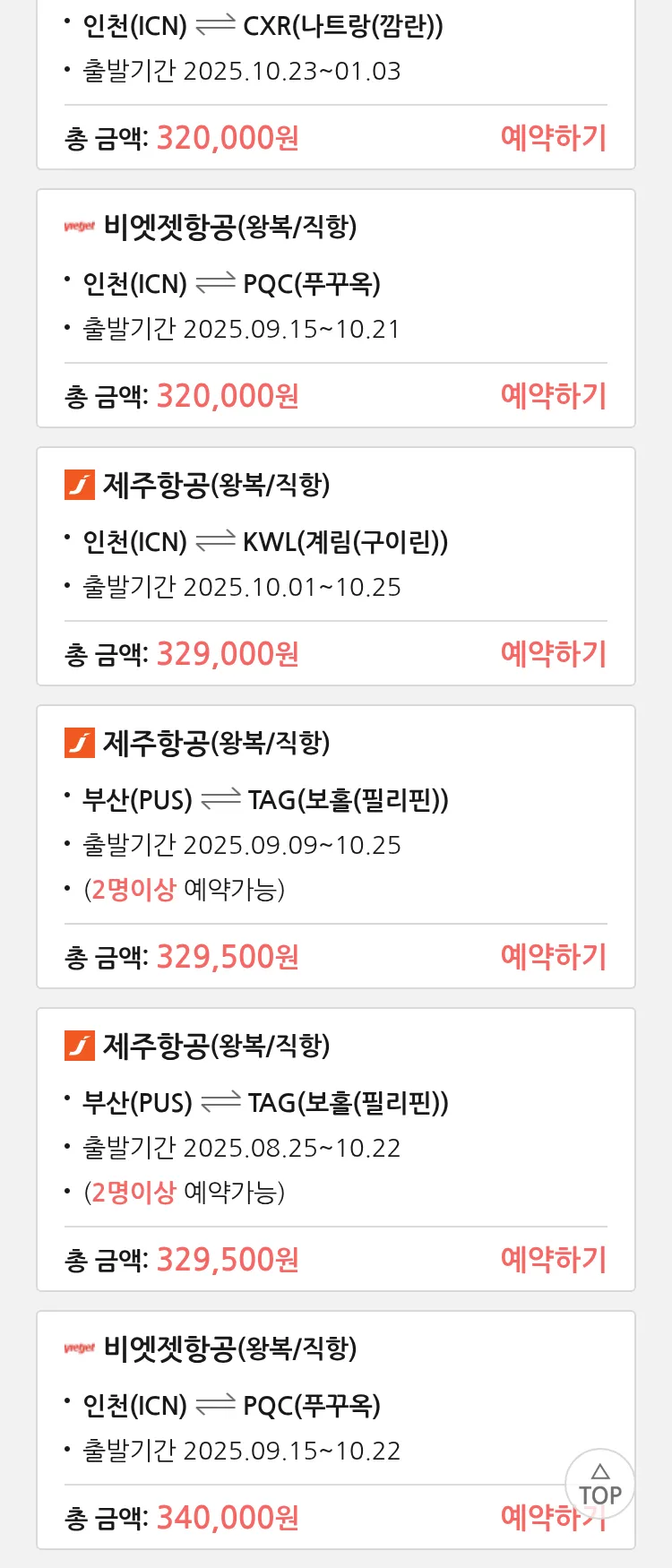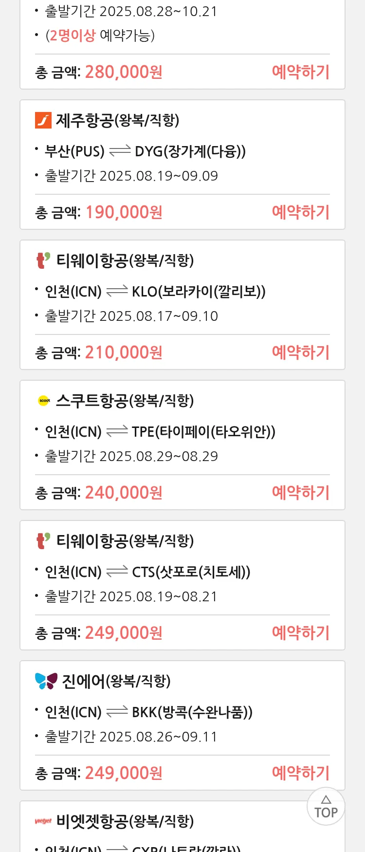 (8월 14일(목)) 땡처리 특가 항공권