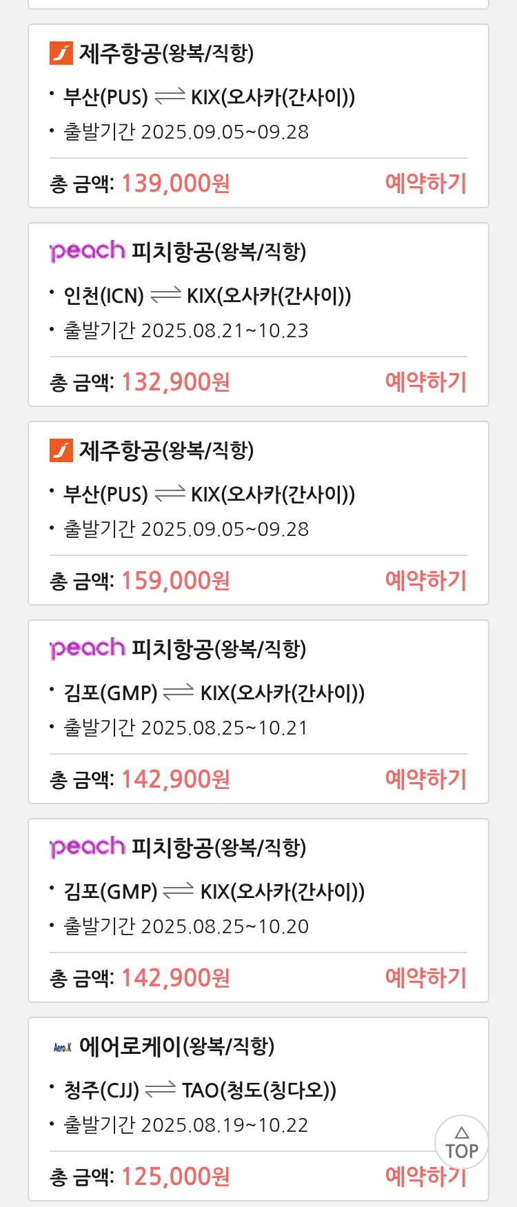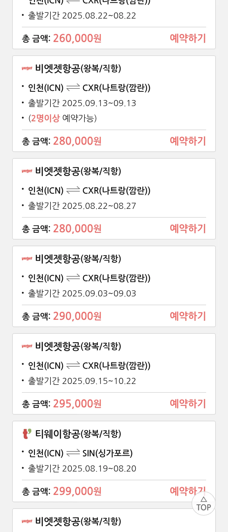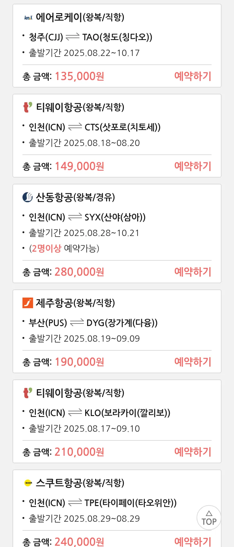 (8월 15일(금)) 땡처리 특가 항공권