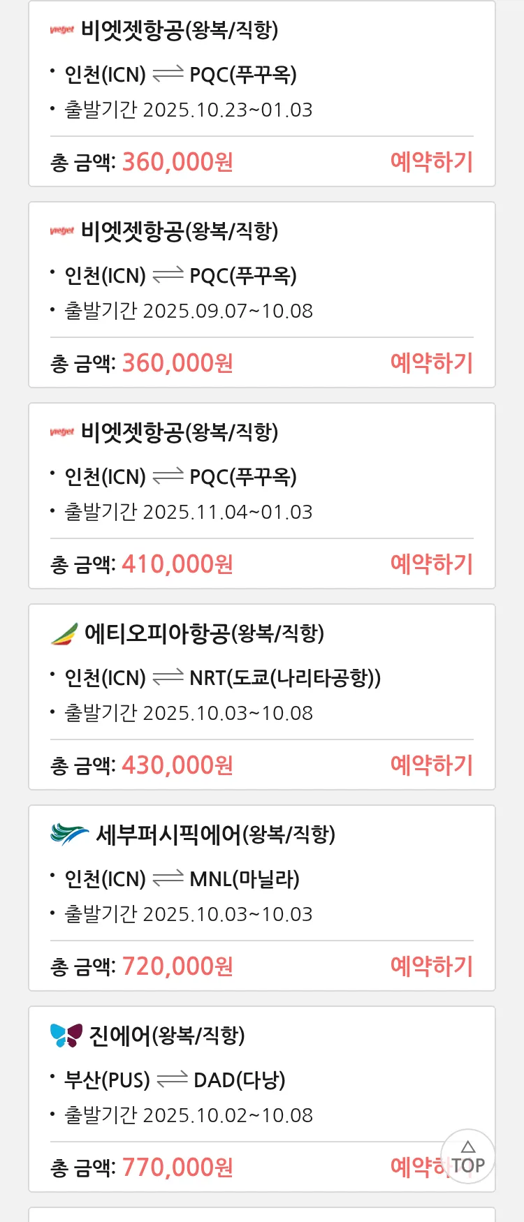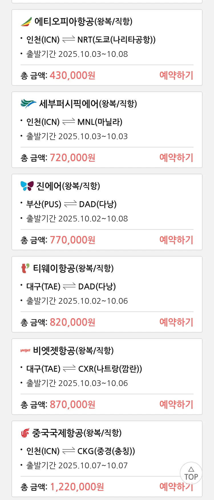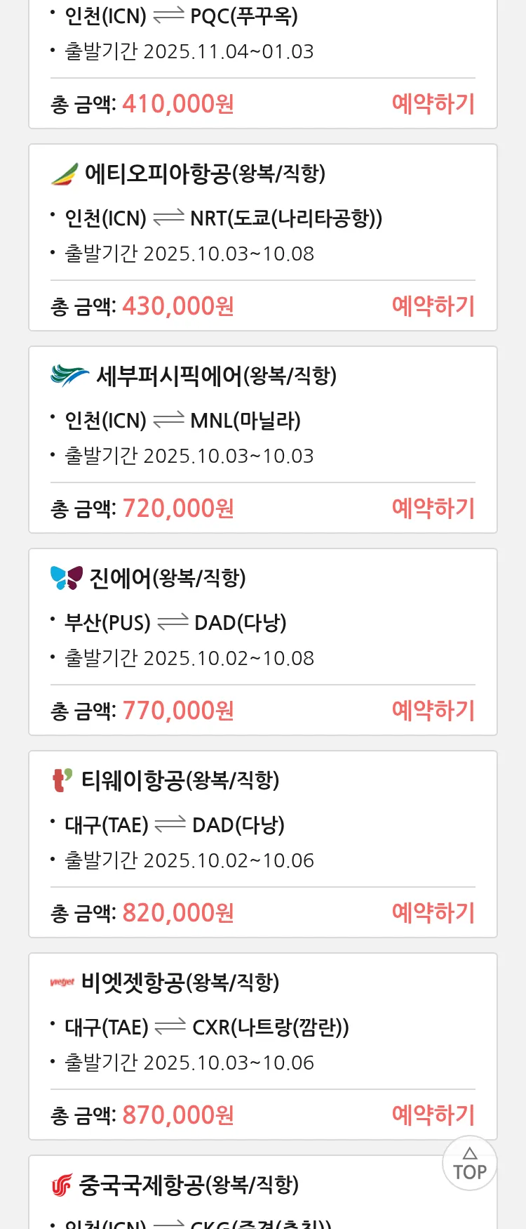 (8월 15일(금)) 땡처리 특가 항공권