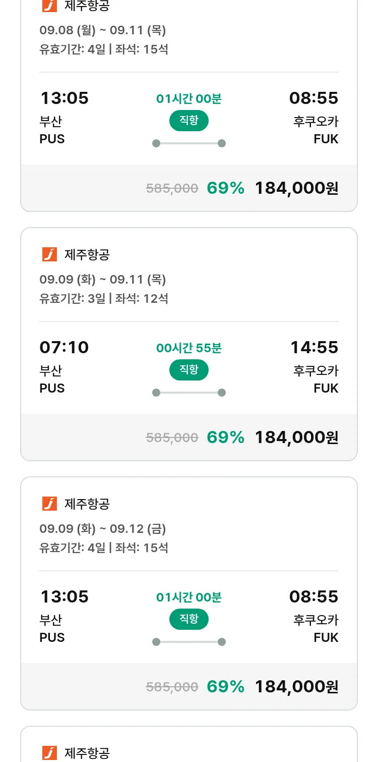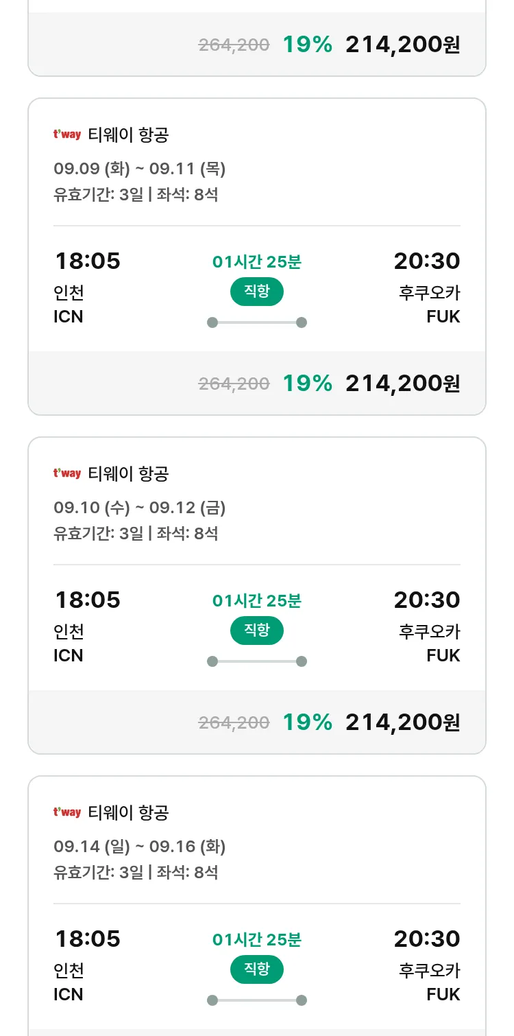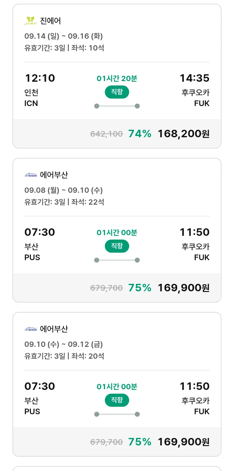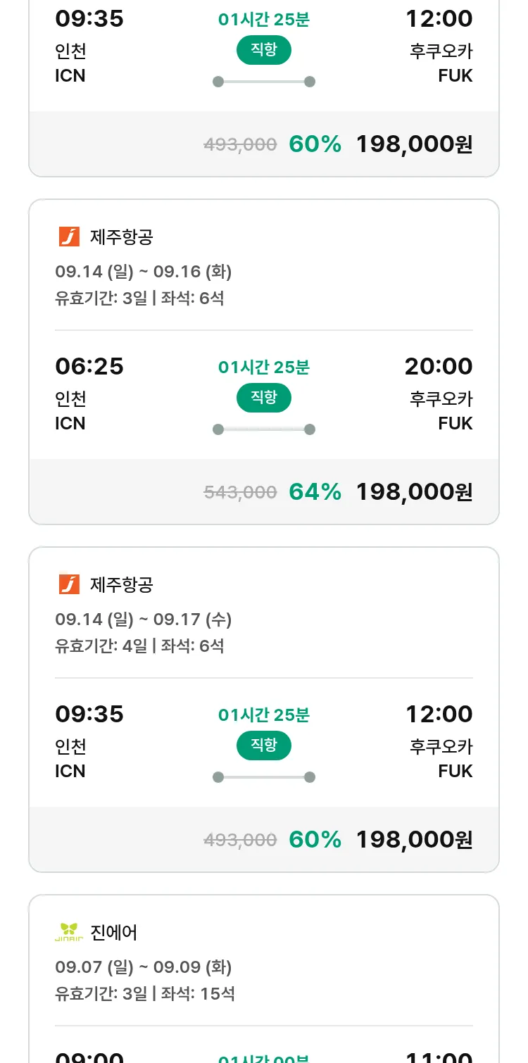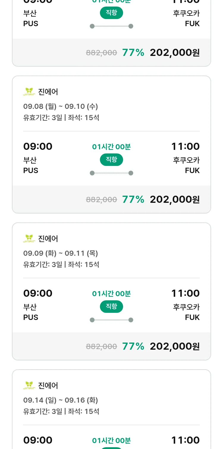 (8월 15일(금)) 땡처리 특가 항공권