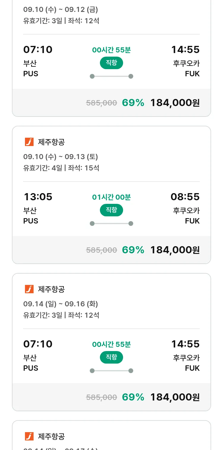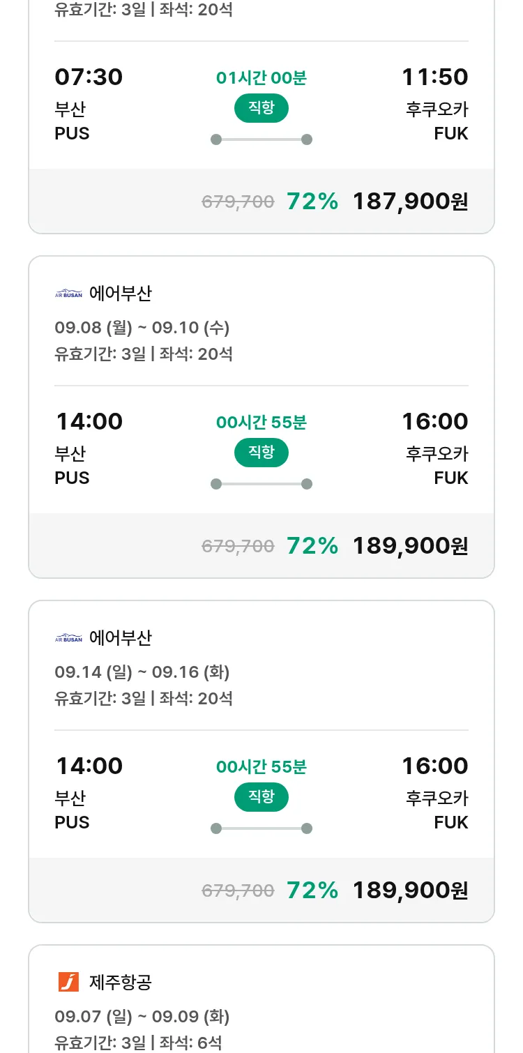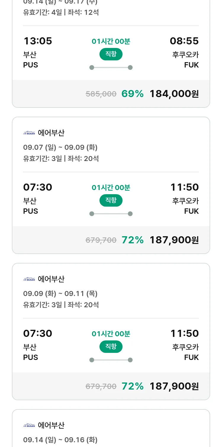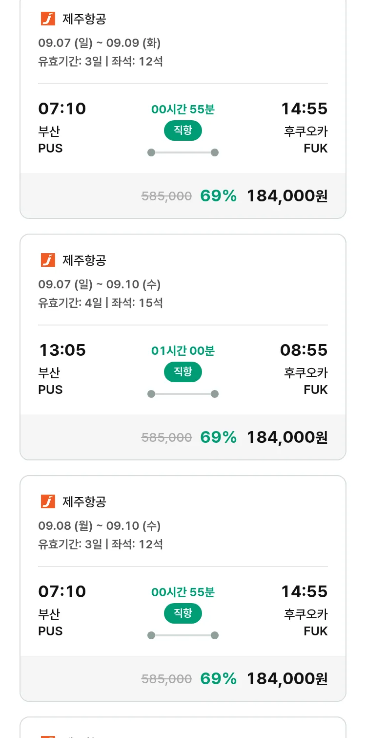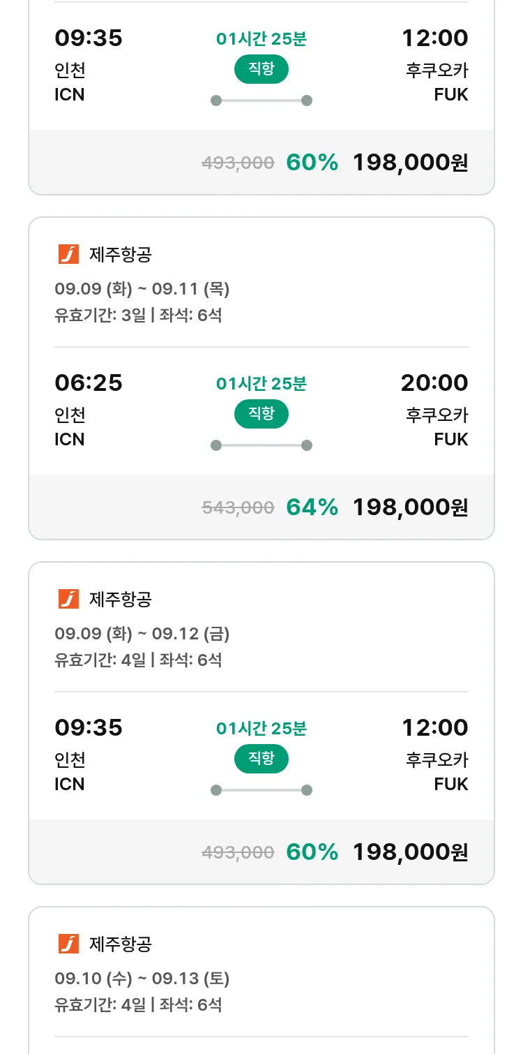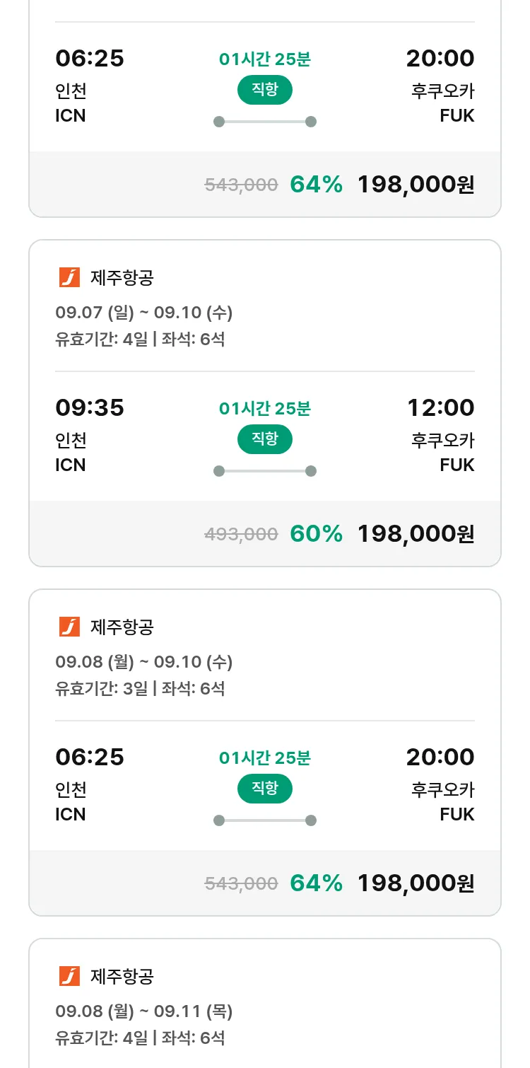 (8월 15일(금)) 땡처리 특가 항공권