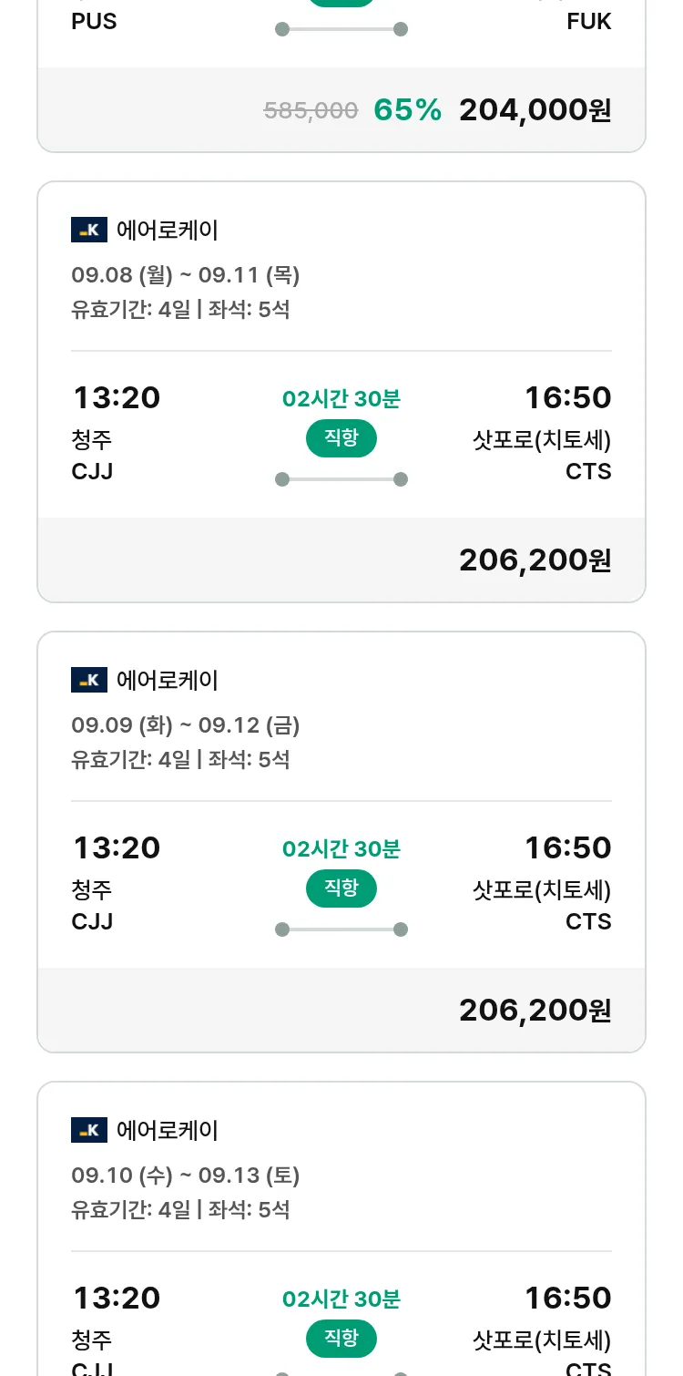 (8월 13일(수)) 땡처리 특가 항공권