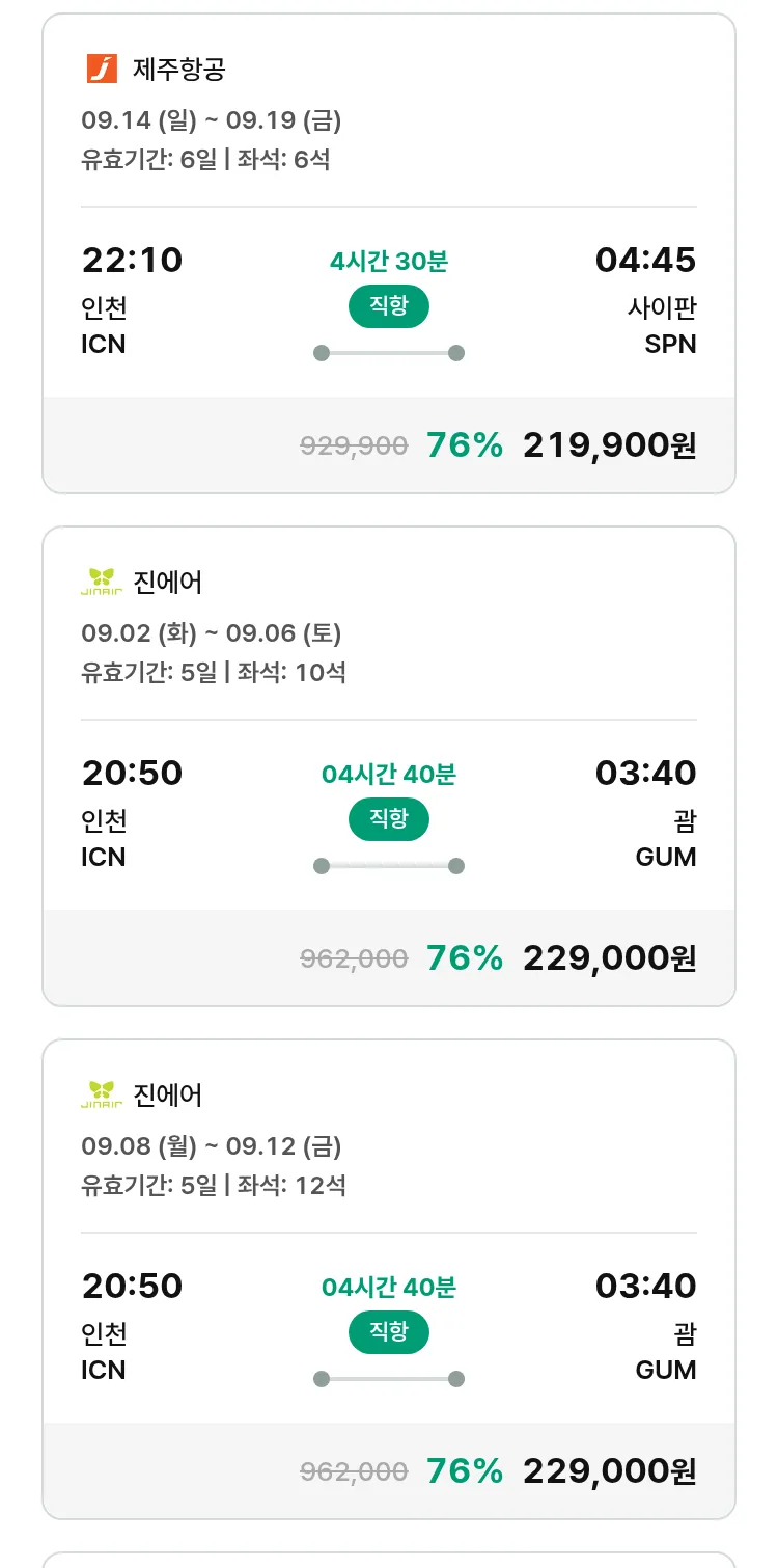 (8월 13일(수)) 모두투어 남태평양 특가 항공권