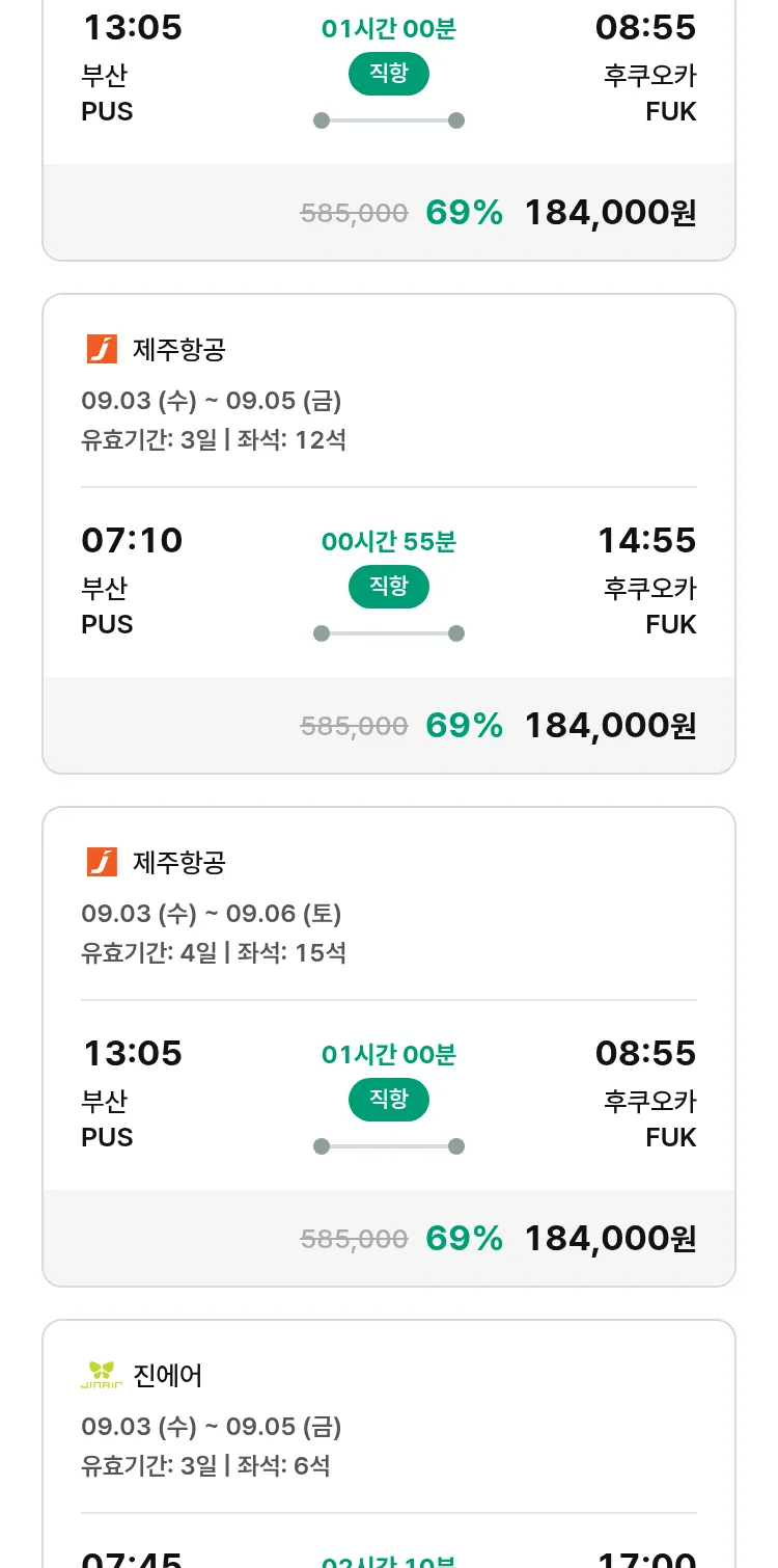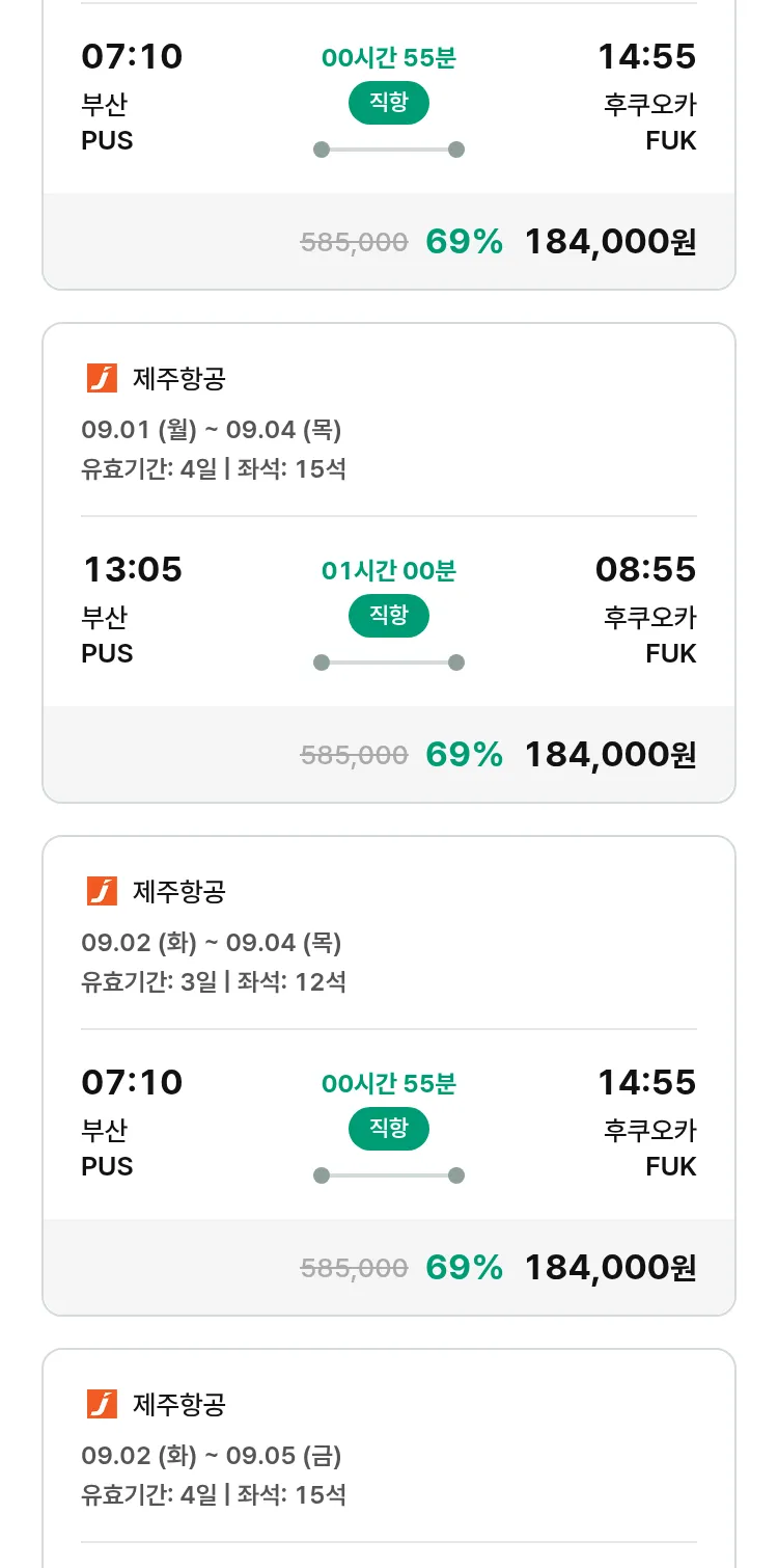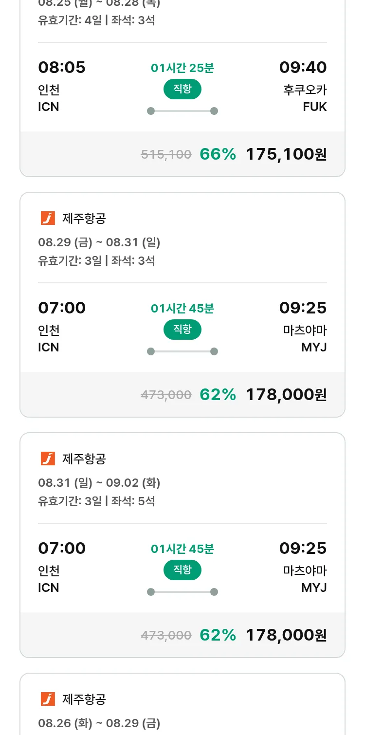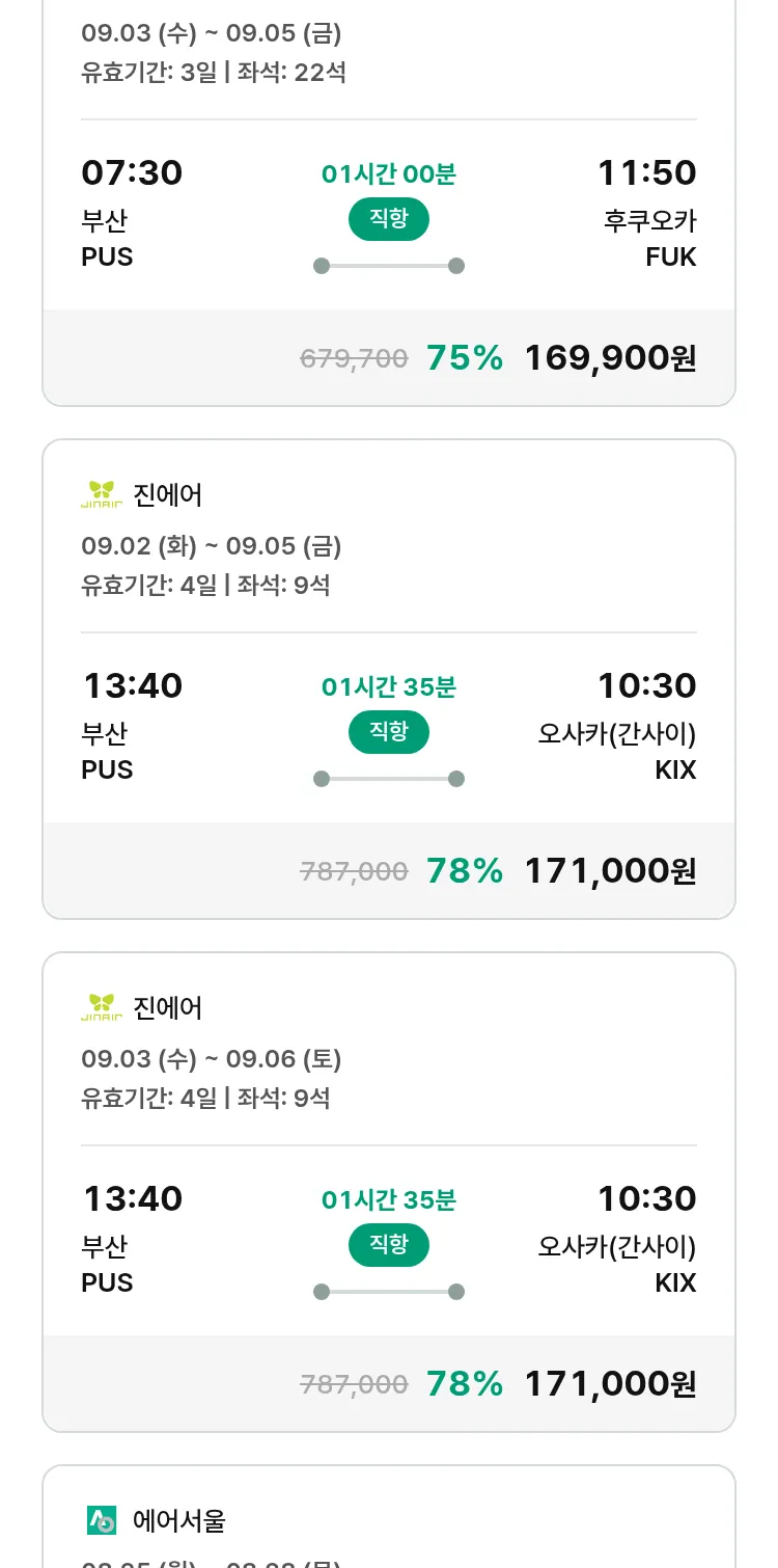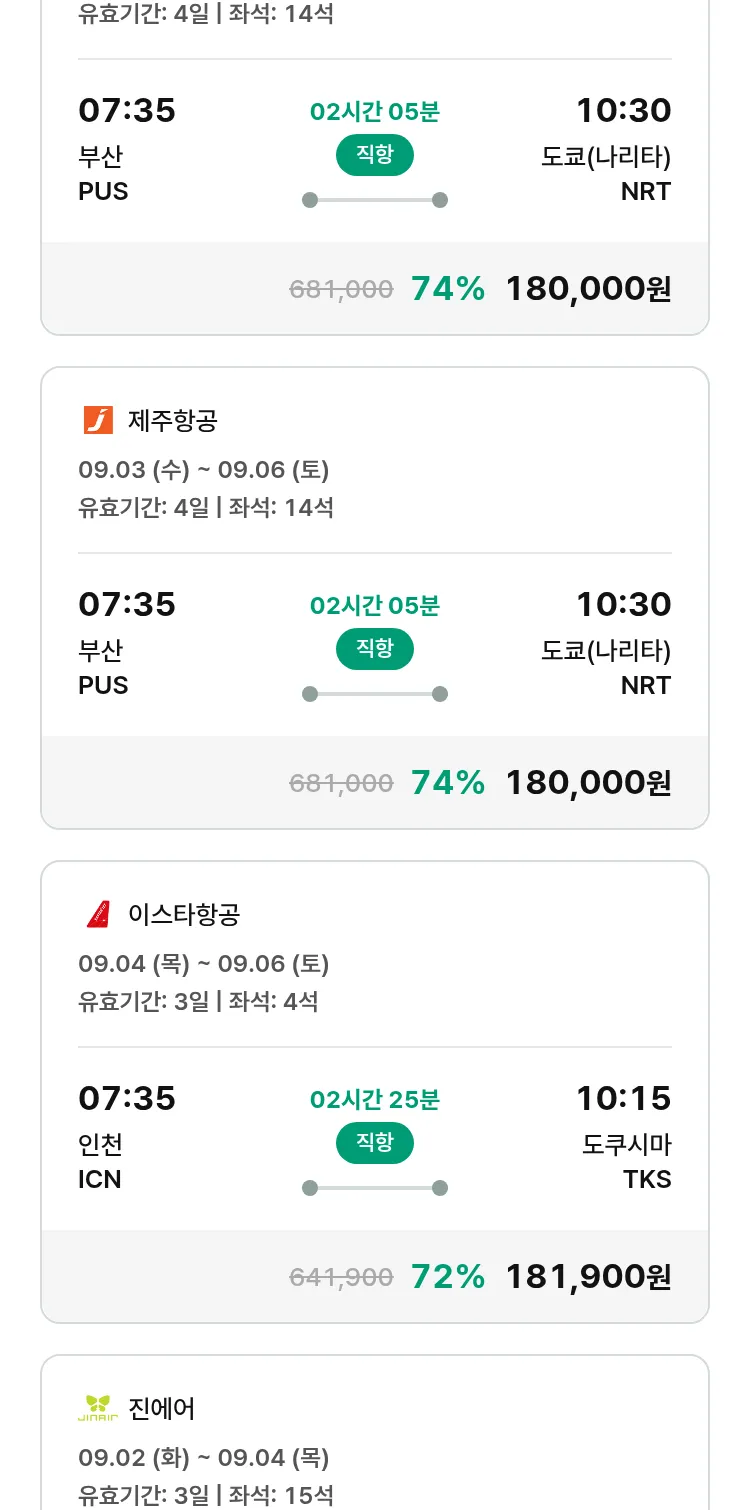 (8월 15일(금)) 땡처리 특가 항공권