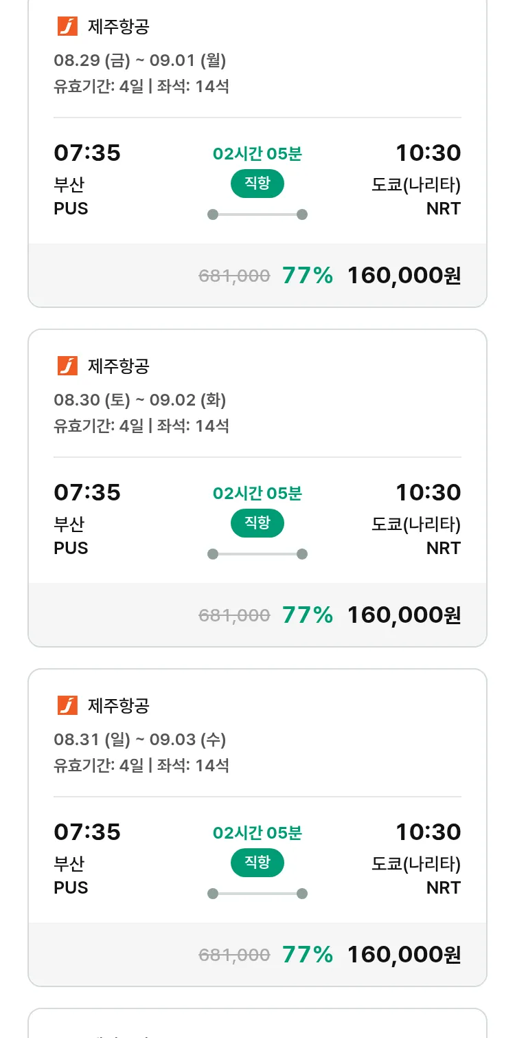 (8월 14일(목)) 땡처리 특가 항공권