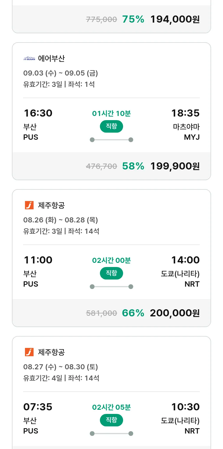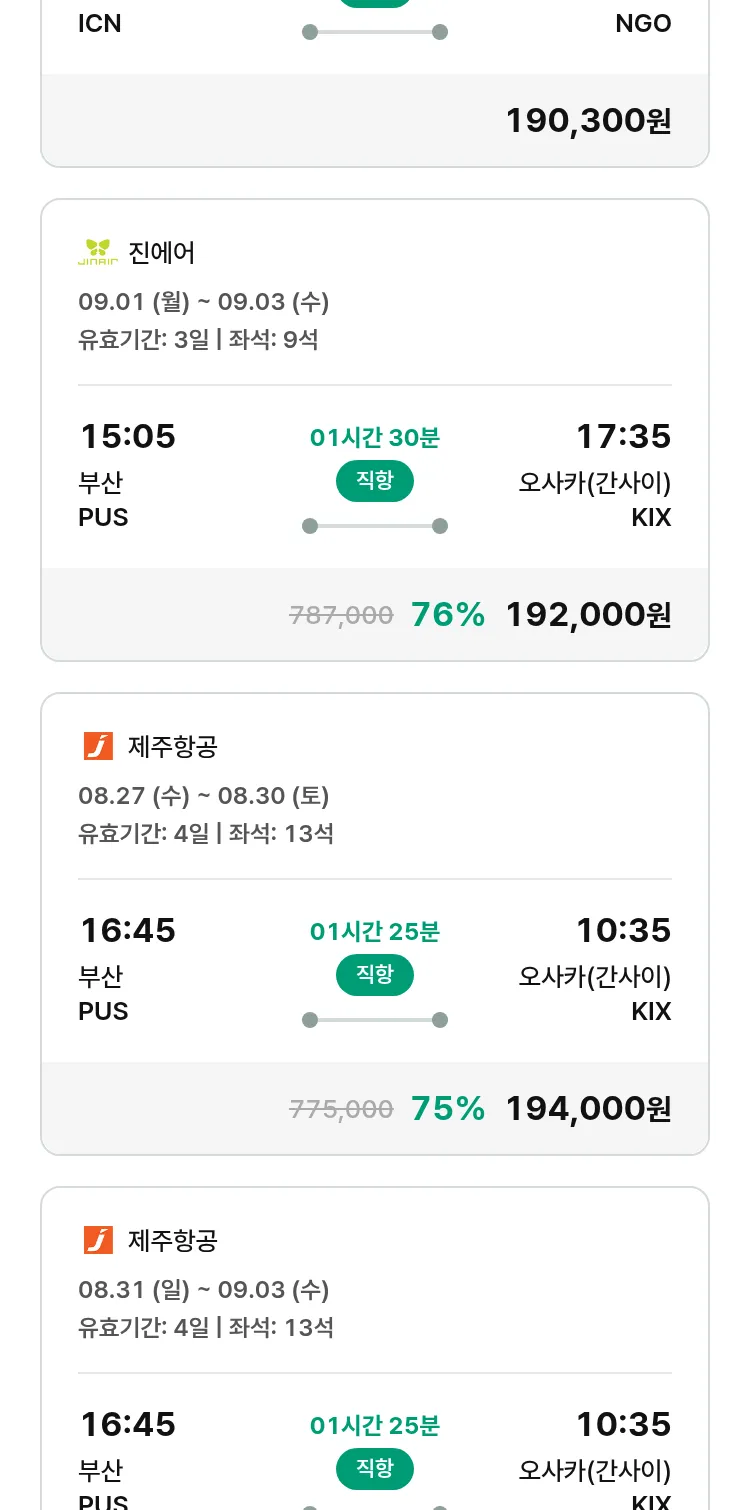 (8월 13일(수)) 땡처리 특가 항공권