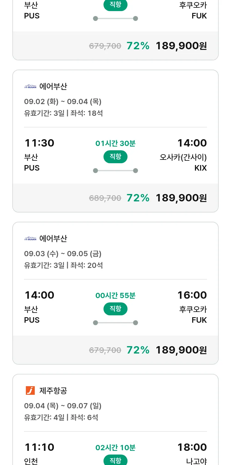 (8월 16일(토)) 땡처리 특가 항공권