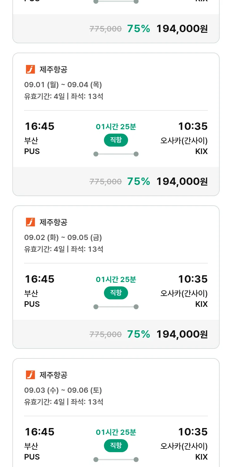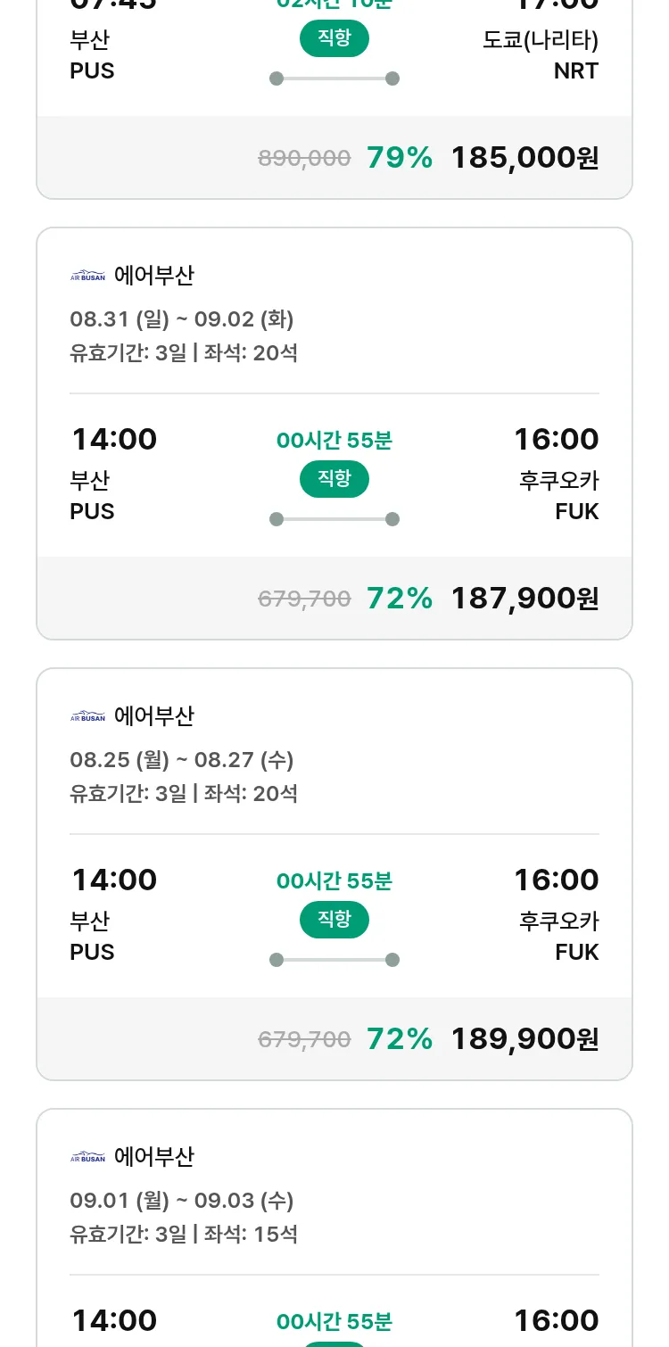 (8월 17일(일)) 땡처리 특가 항공권