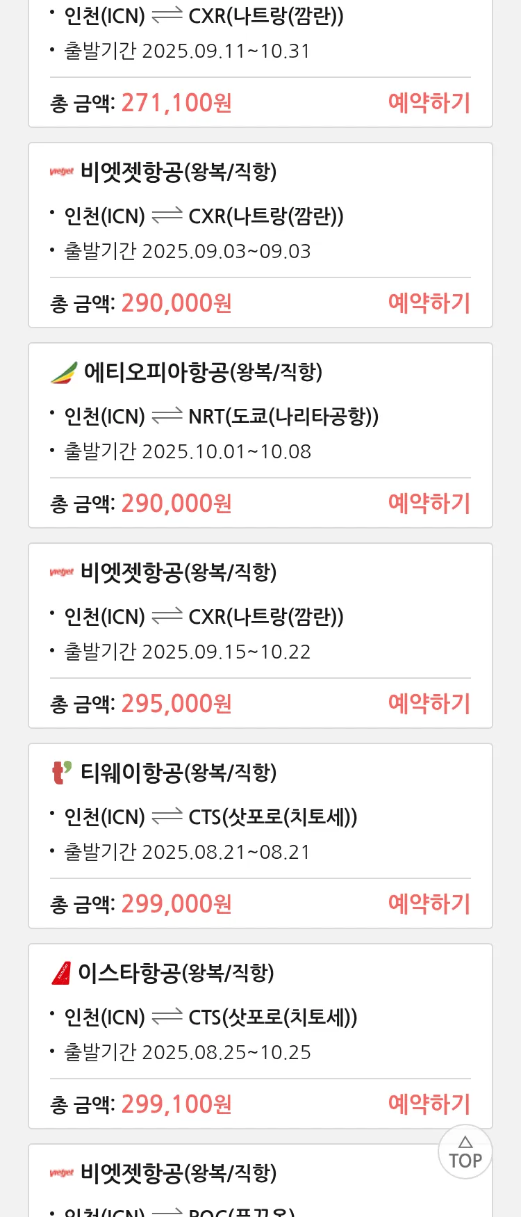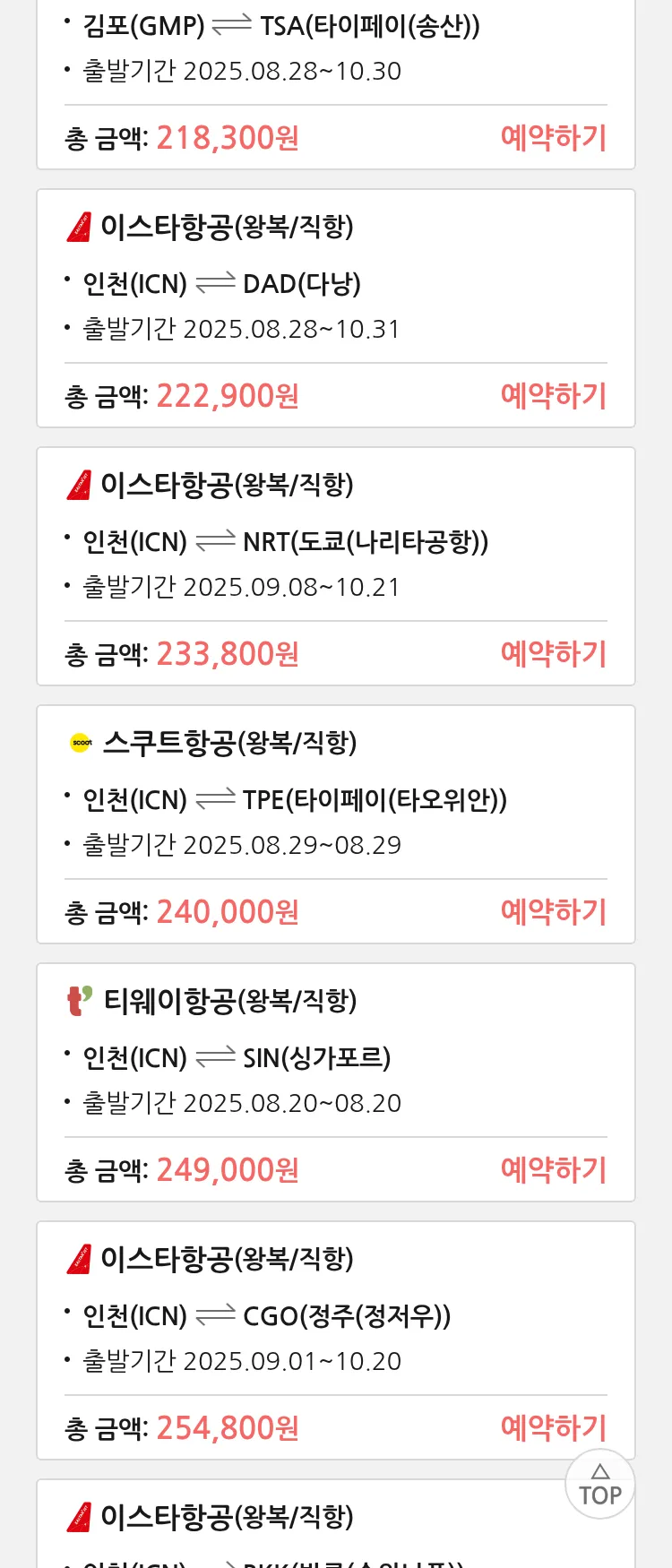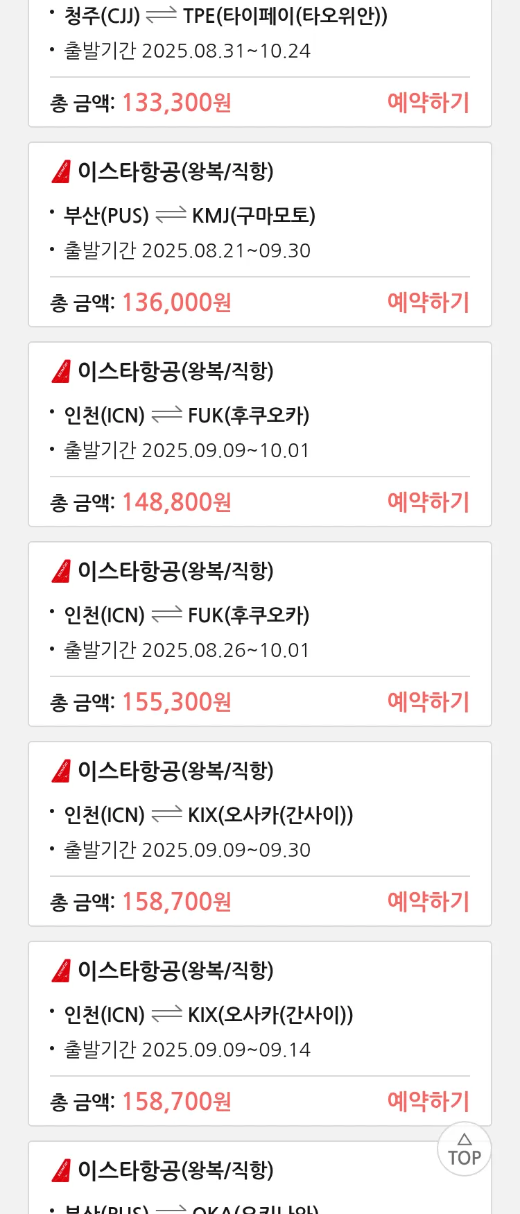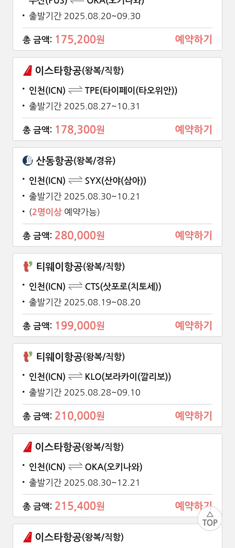 (8월 17일(일)) 땡처리 특가 항공권