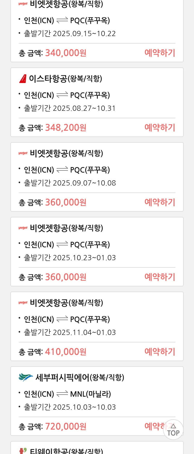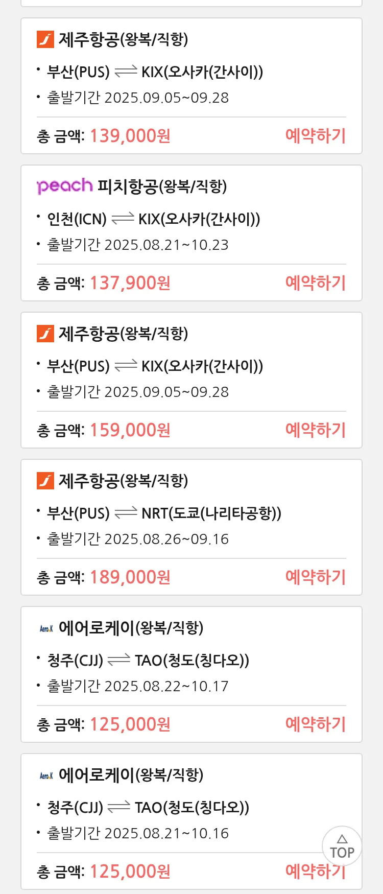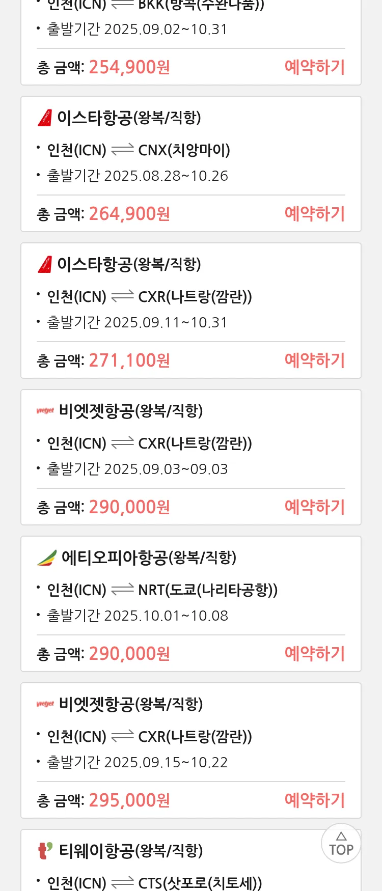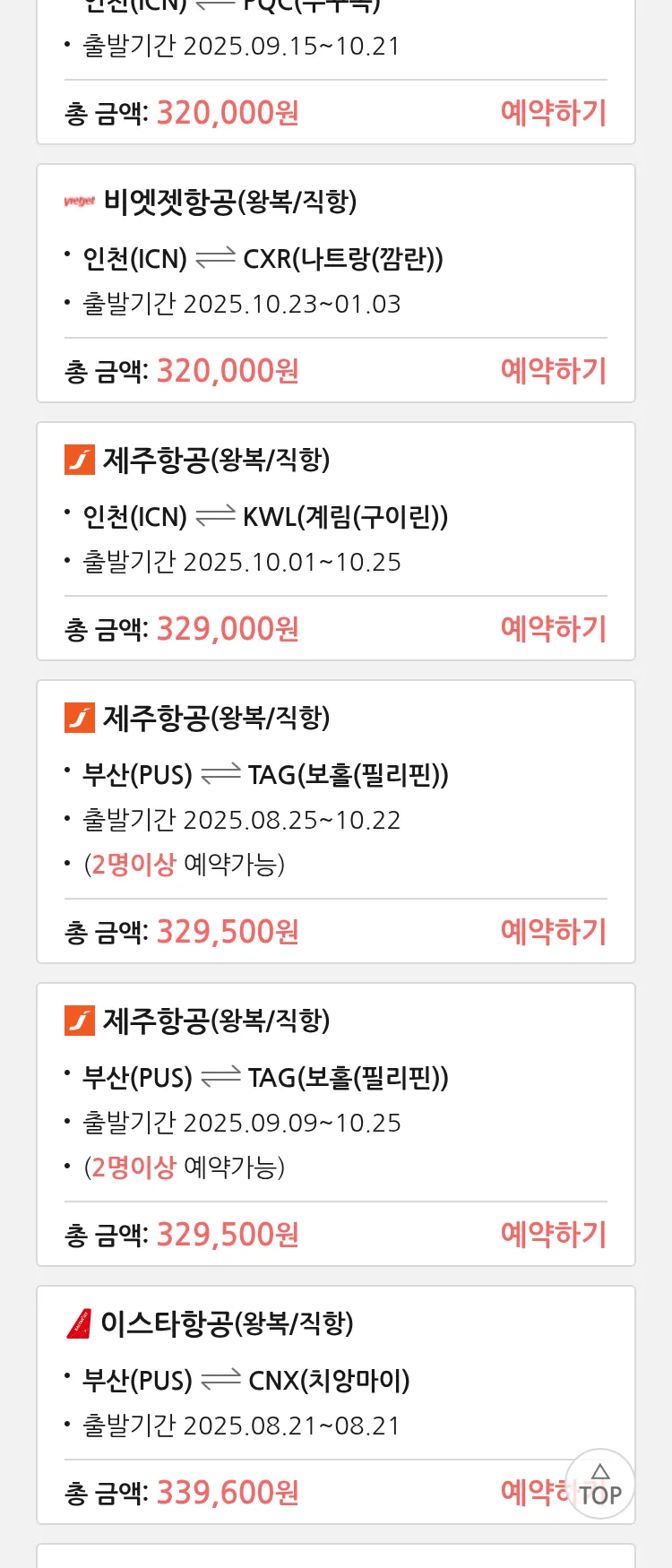 (8월 17일(일)) 땡처리 특가 항공권