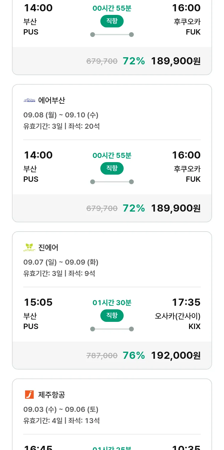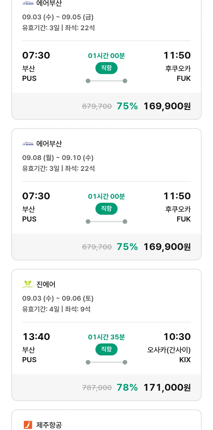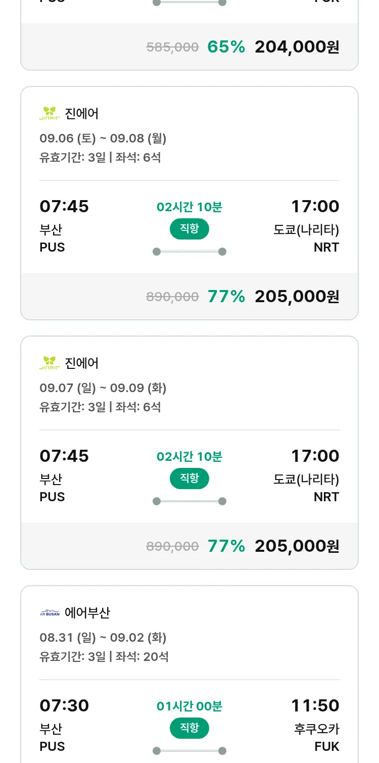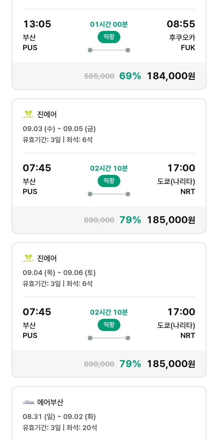(8월 19일(화)) 땡처리 특가 항공권