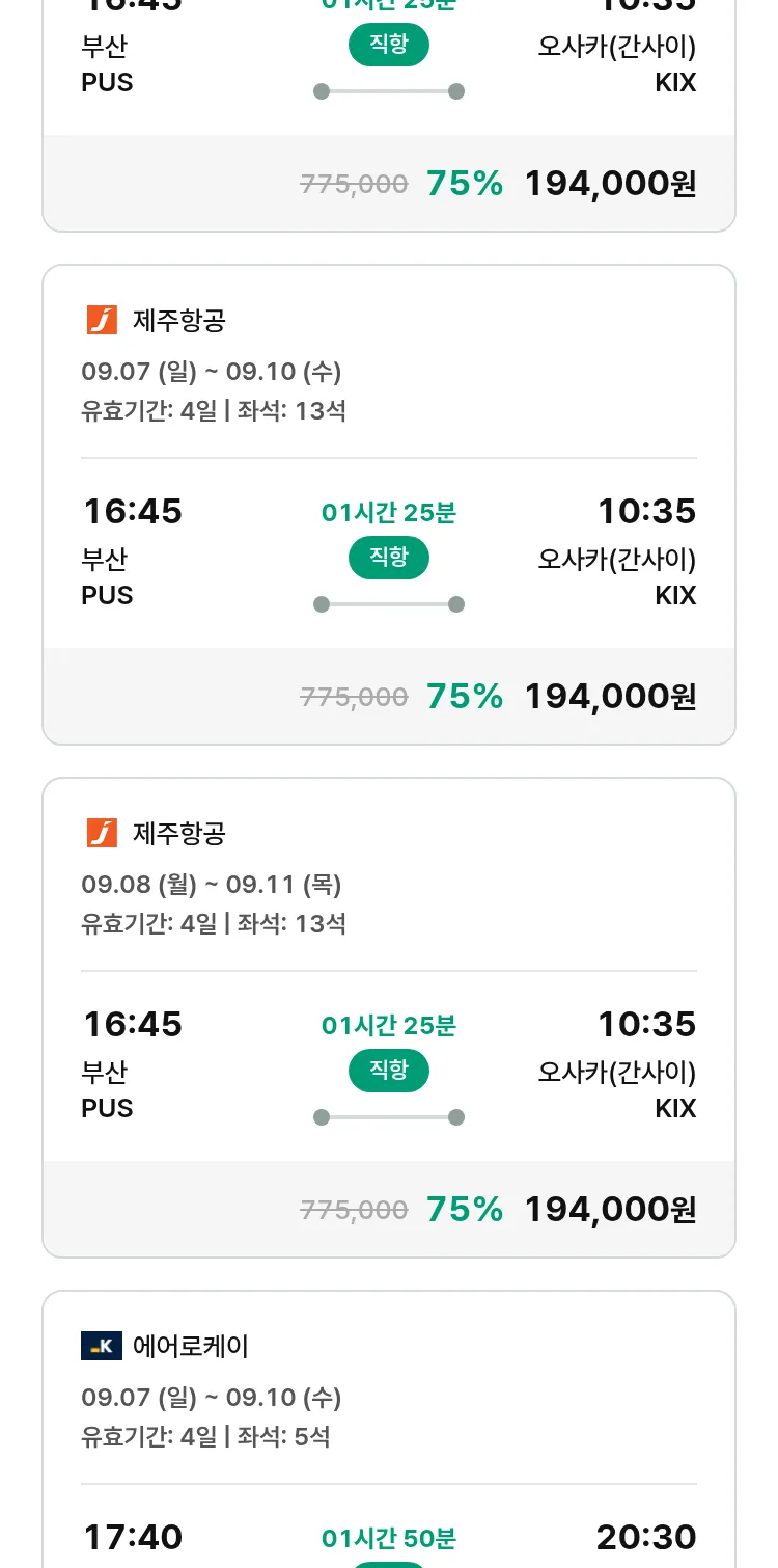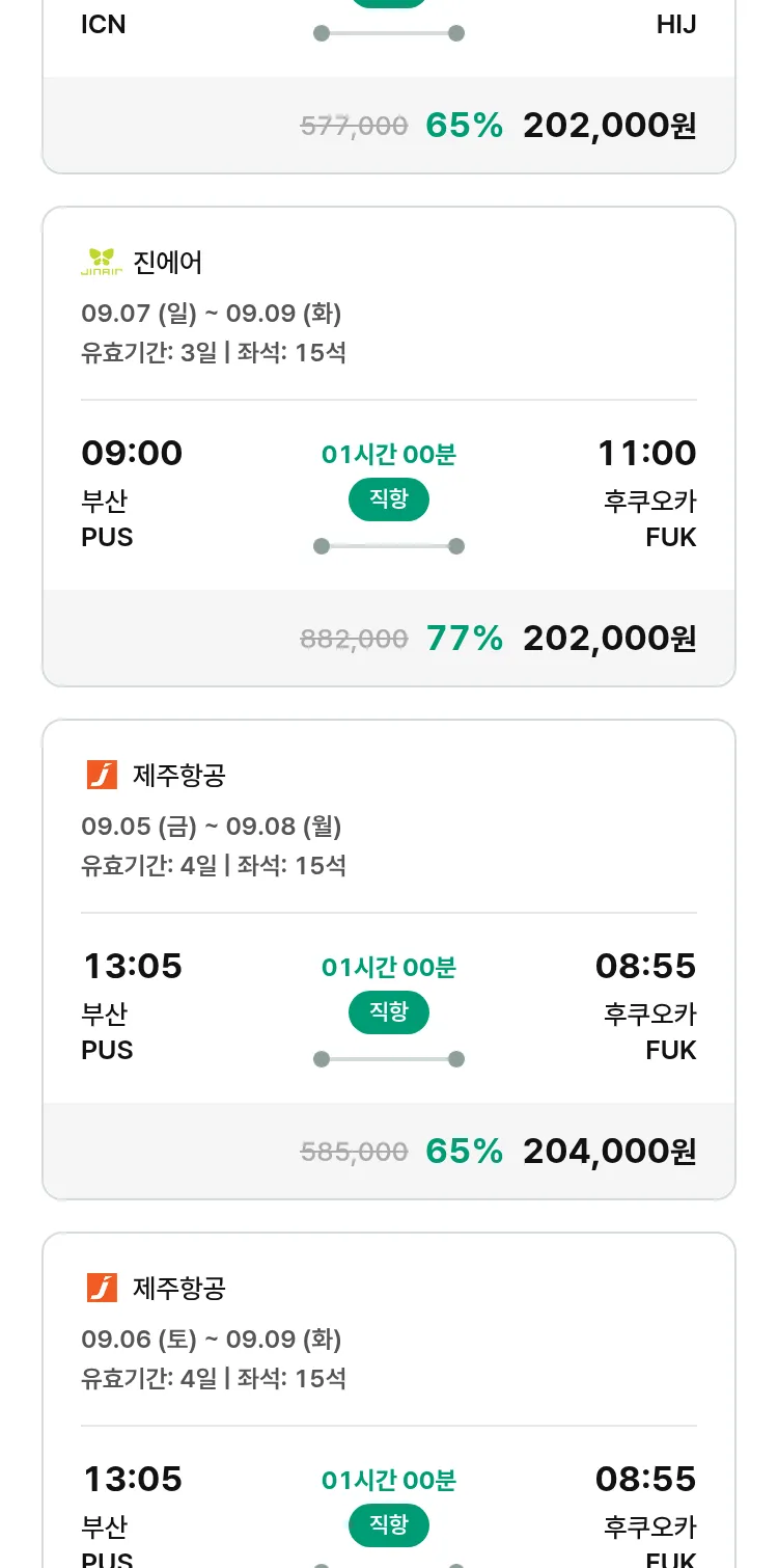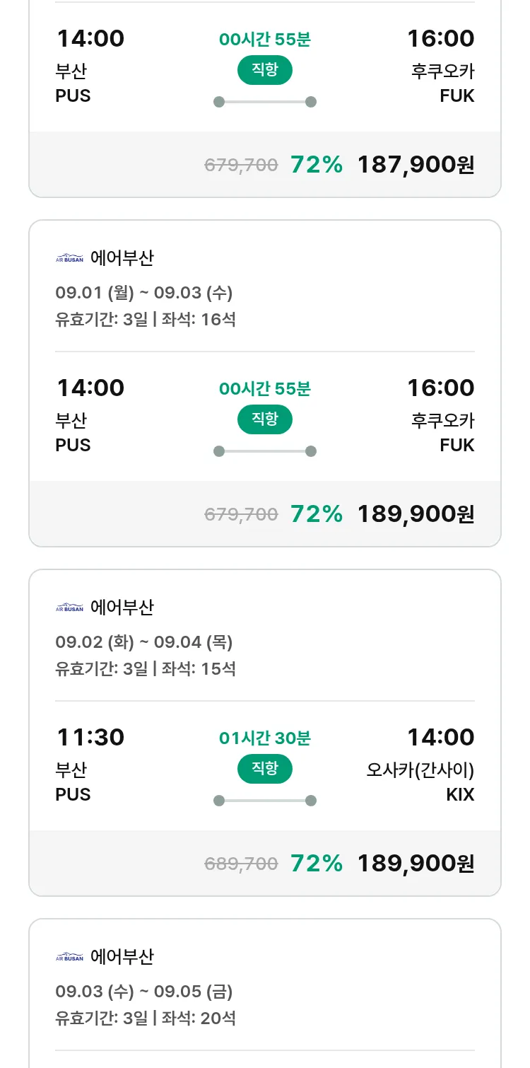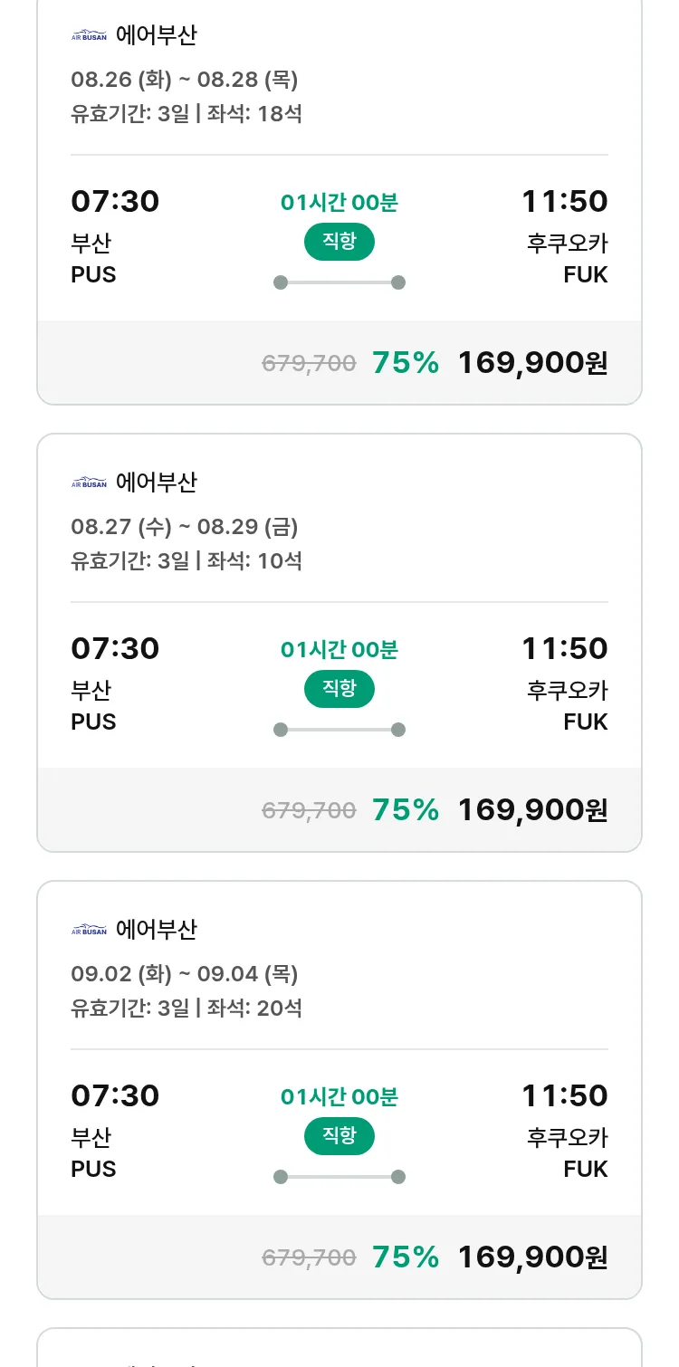 (8월 19일(화)) 땡처리 특가 항공권