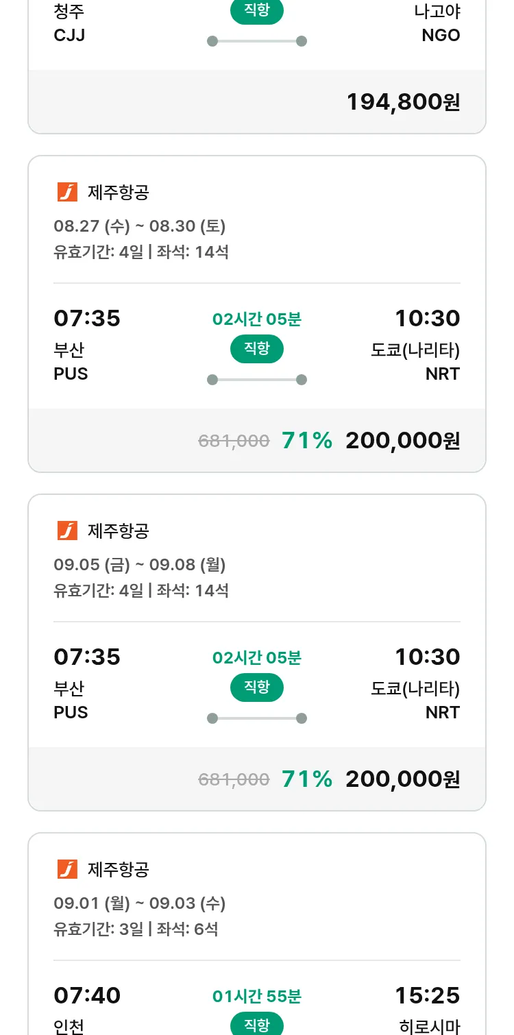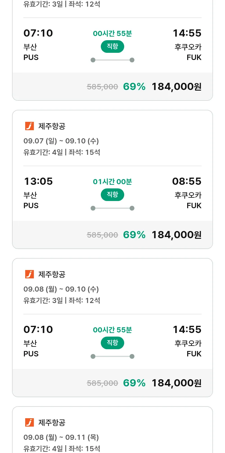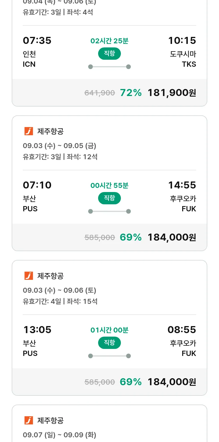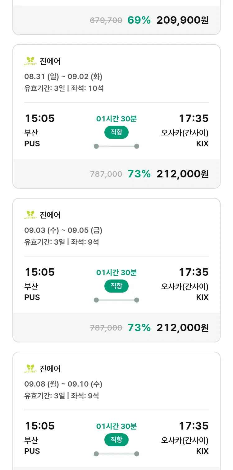 (8월 21일(목)) 땡처리 특가 항공권